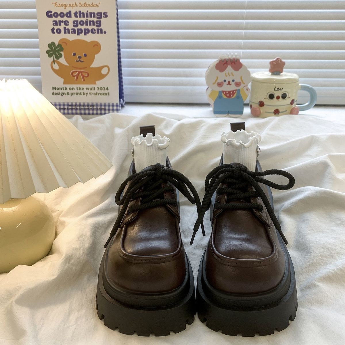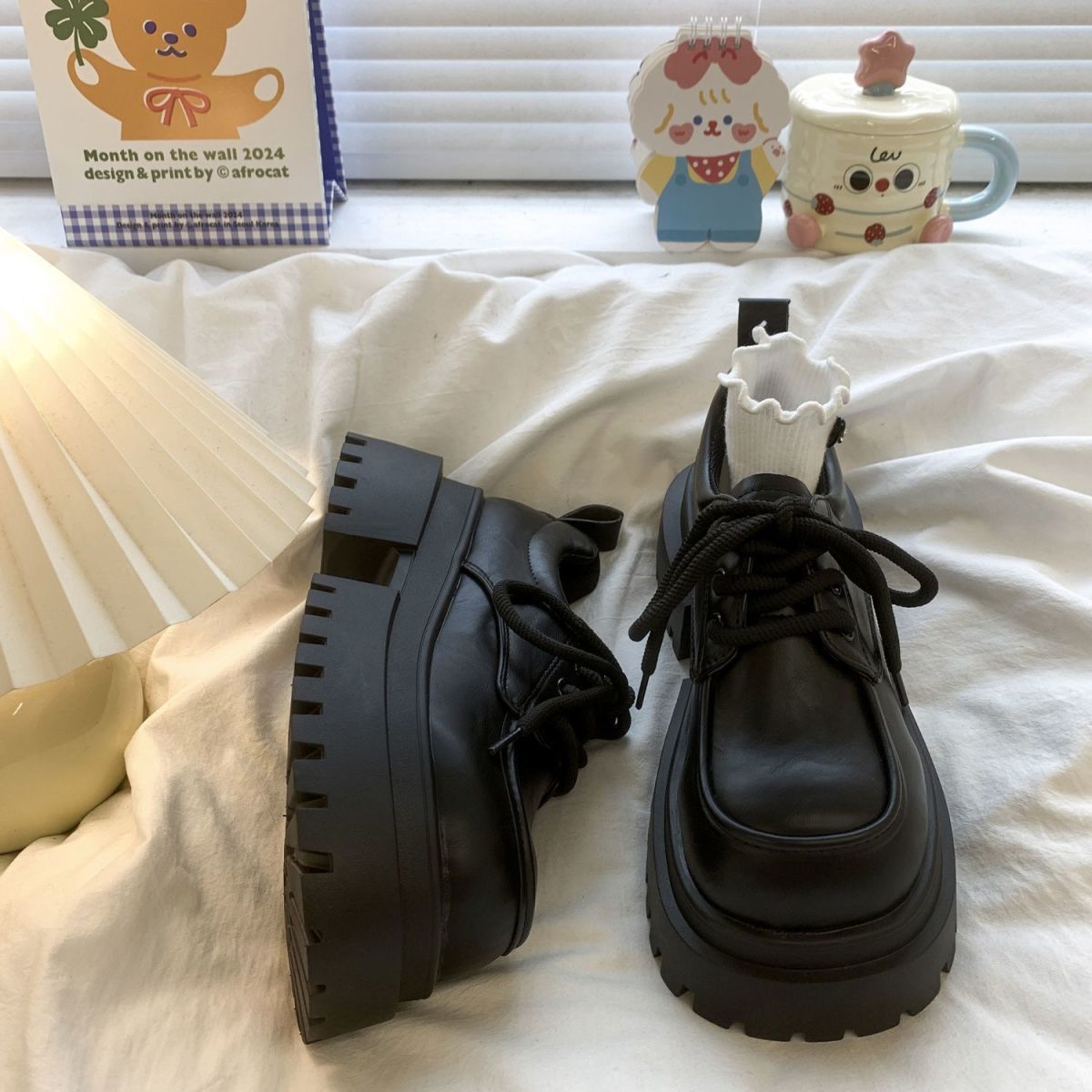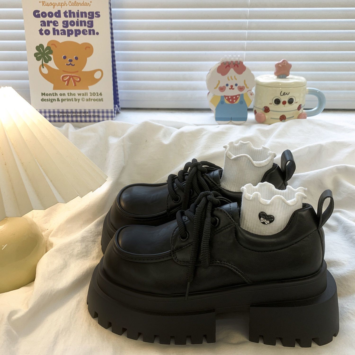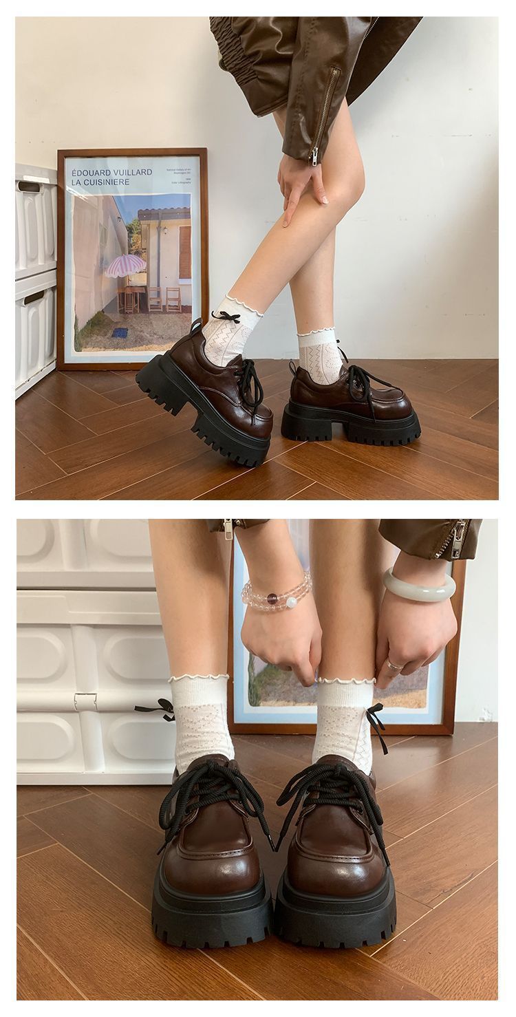 Женская толстая подошва увеличена, обувь Lefu 2024 новые осенние и зимние британские кожаные туфли женские черные туфли Mary Jen