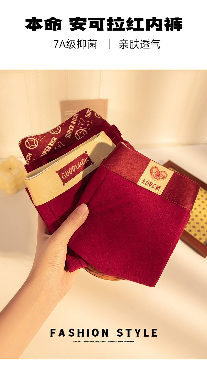 Год рождения красный мужской жаккардовый хлопок трусики сетка антибактериальные и дышащие удобные подростковые трусики