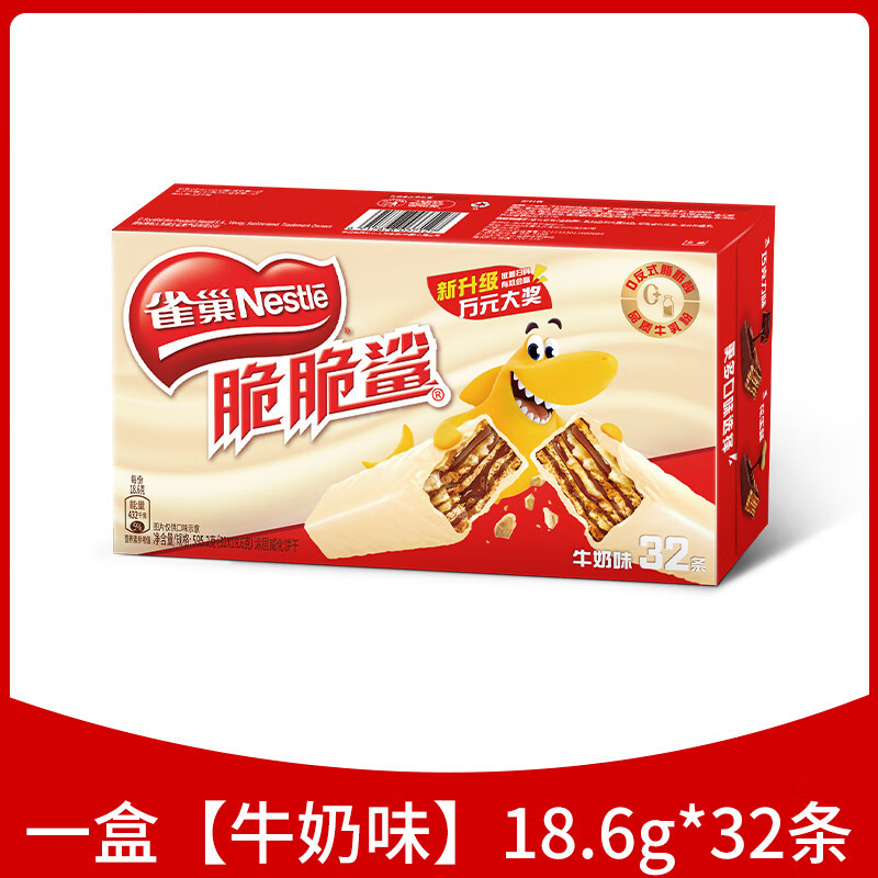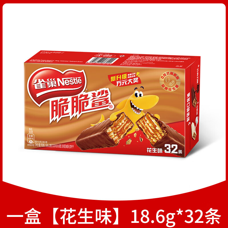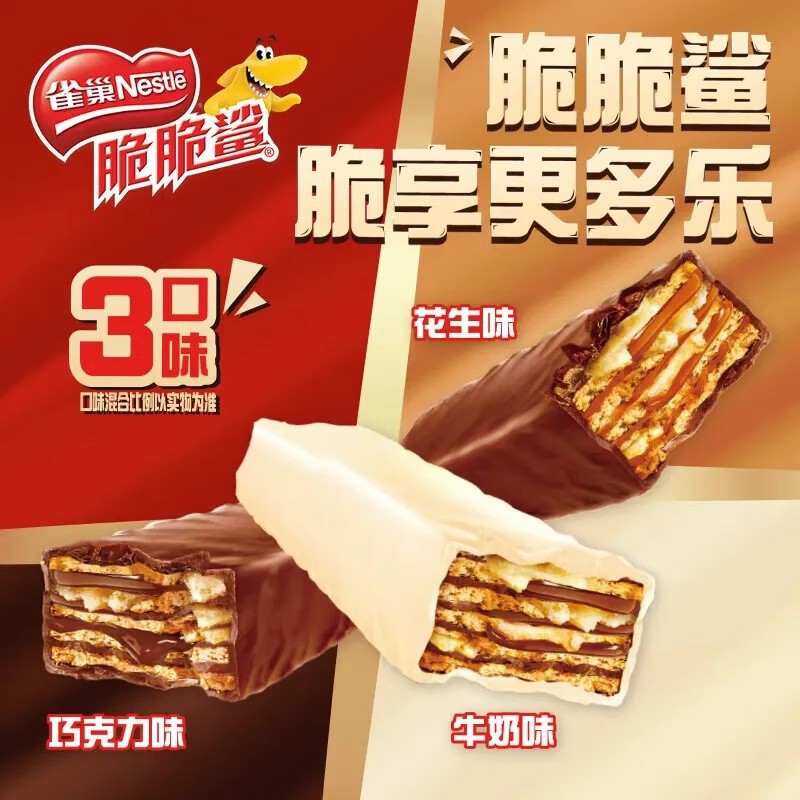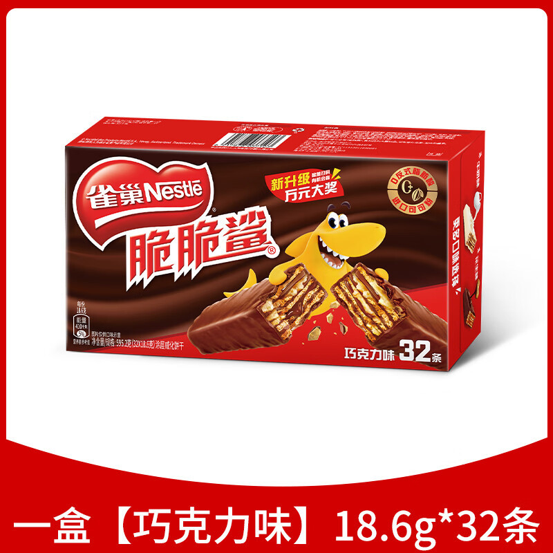 Вафельные бисквиты Nestlé Crispy Shark с шоколадом, 32 штуки, закуски для утоления голода, повседневная еда, ассорти вкусов.