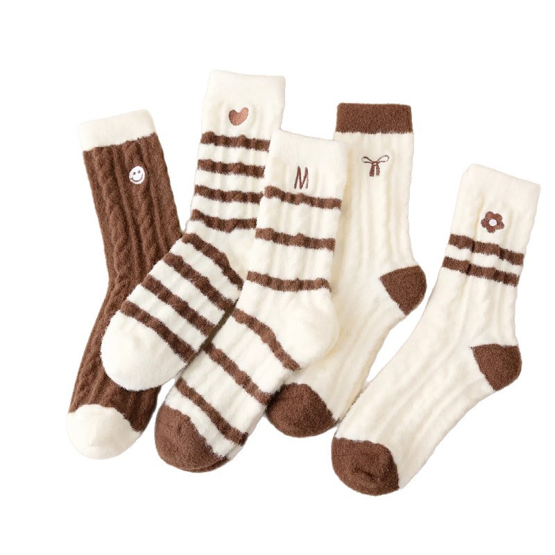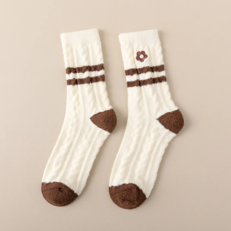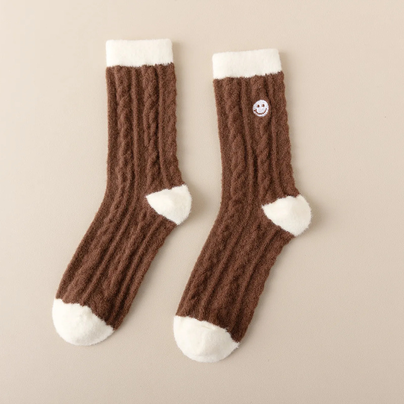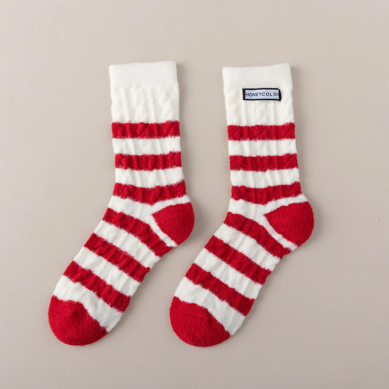 Красные новогодние носки женские осенние и зимние имитационные австралийские бархатные толстые теплые средние носки плюс бархат