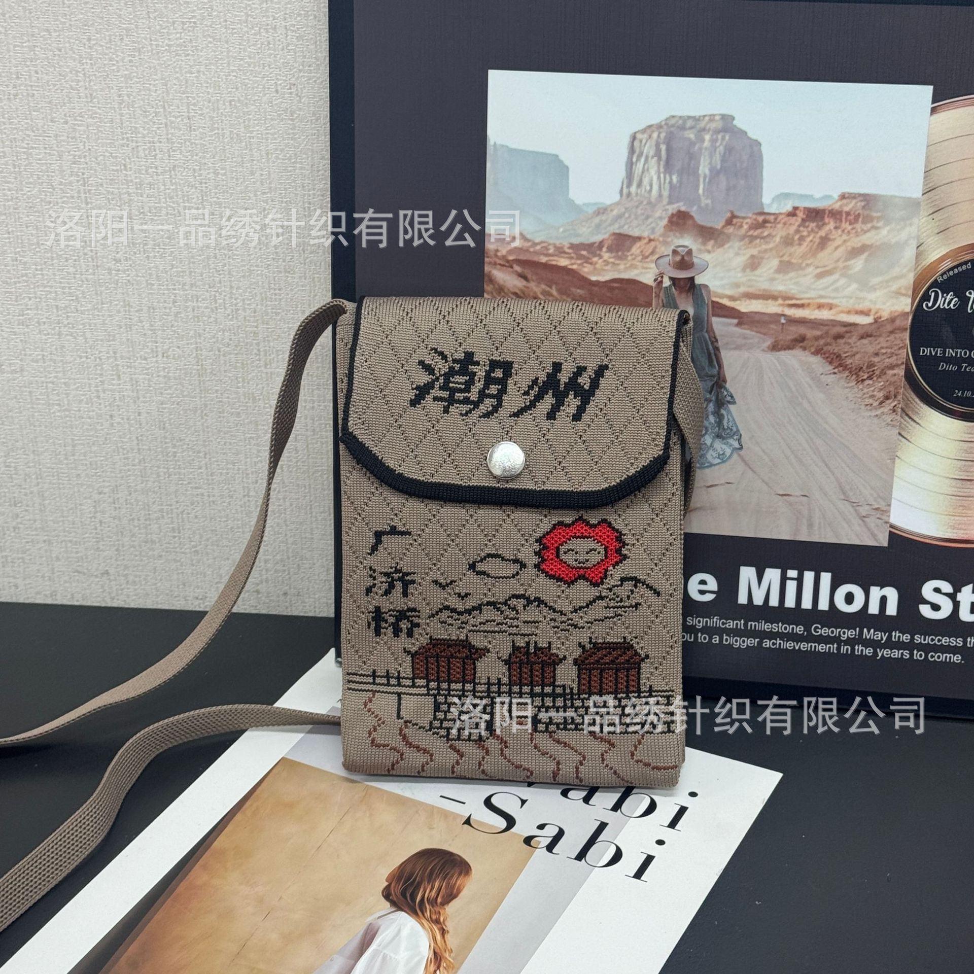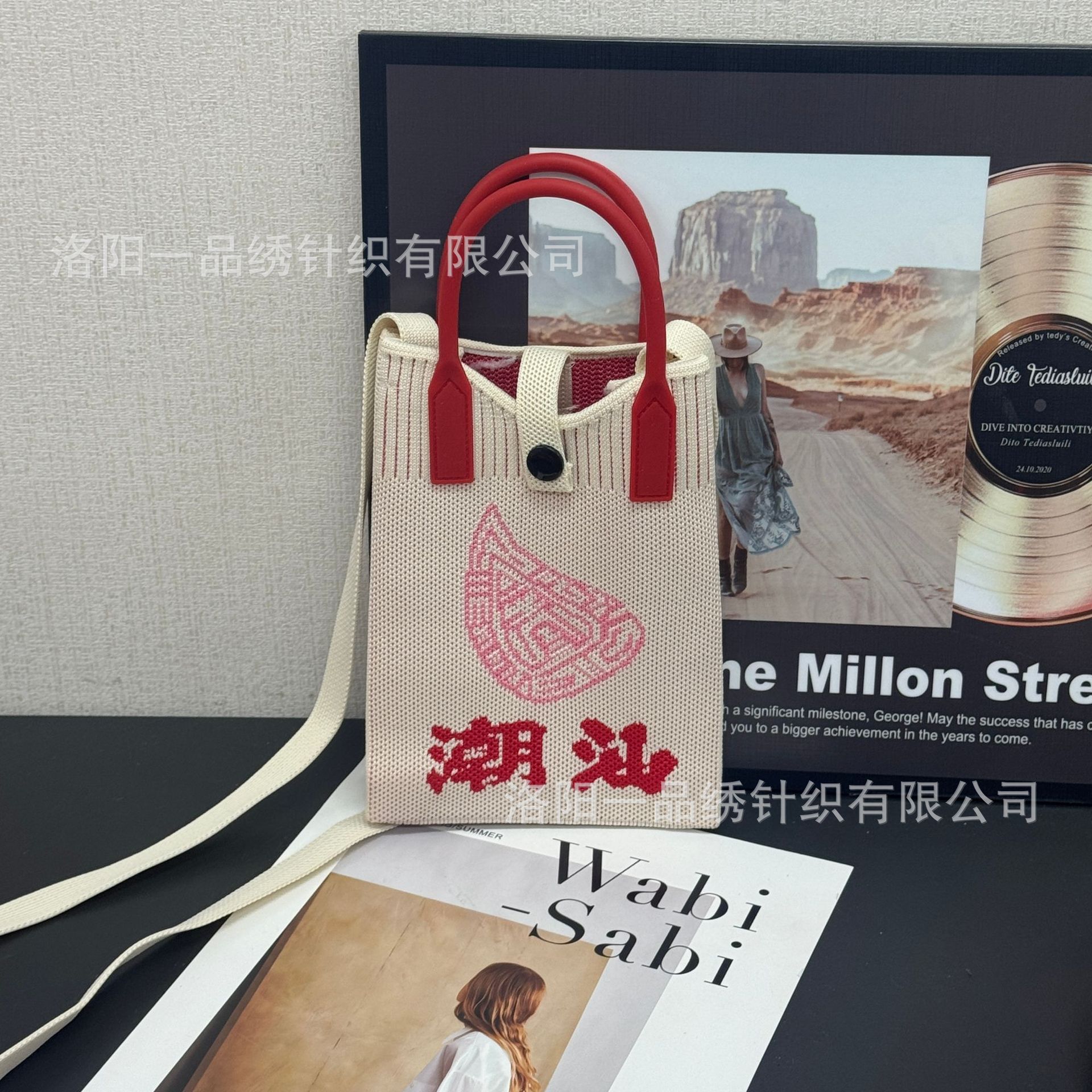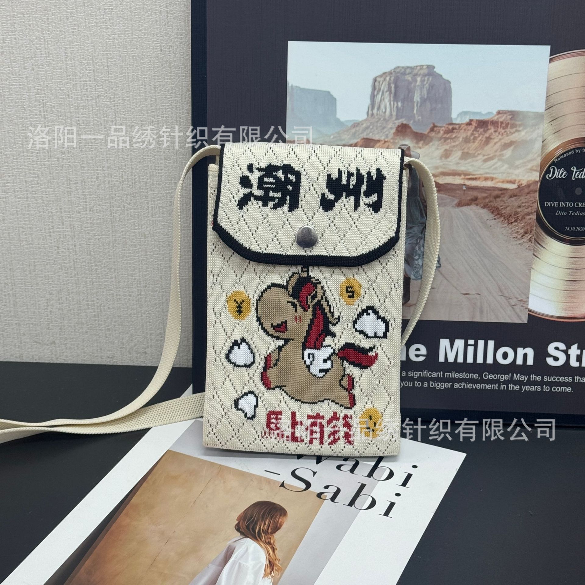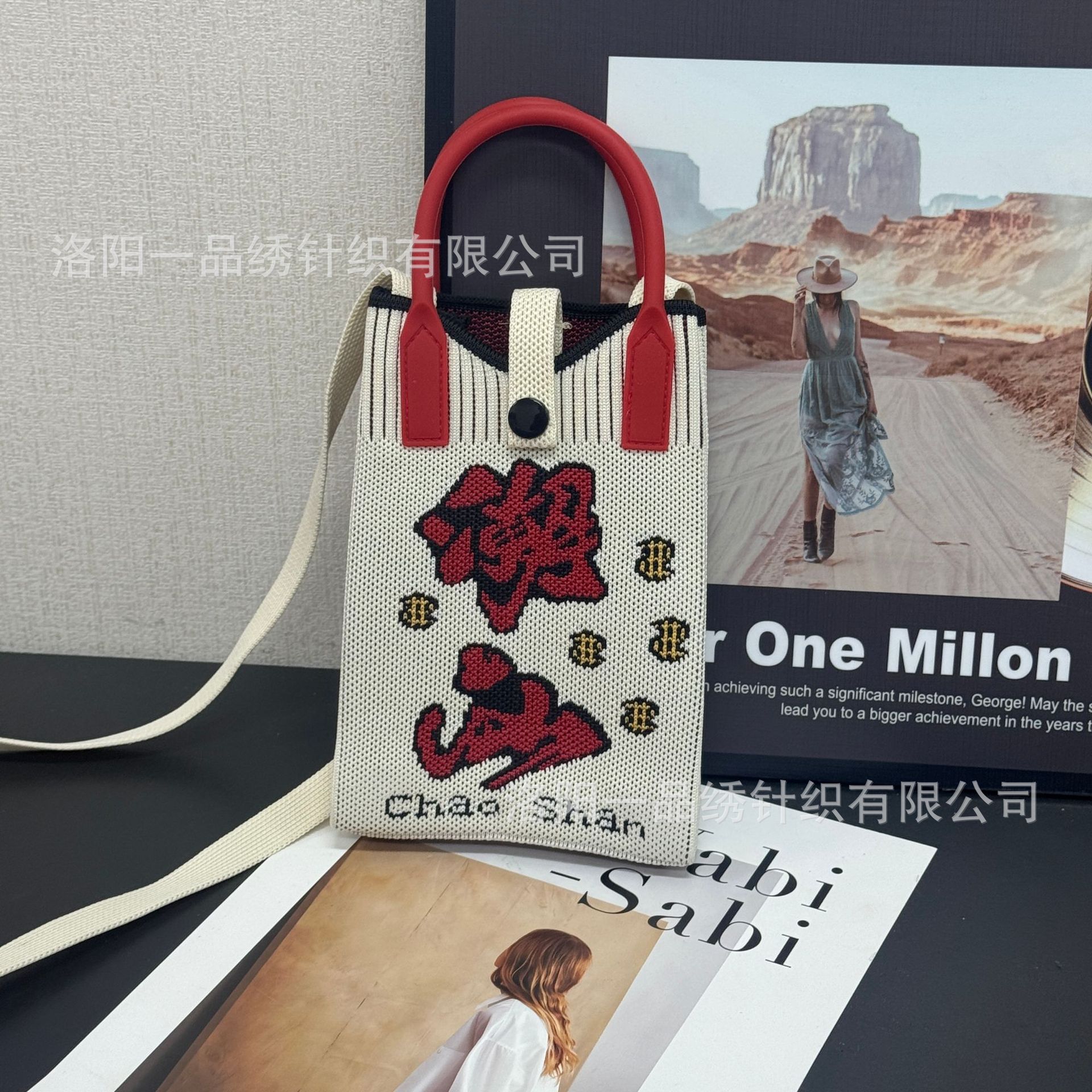 2025 китайский стиль трикотажный мобильный телефон сумка удачи благословение сумка модная индивидуальность дикий премиум-класса сумка через плечо