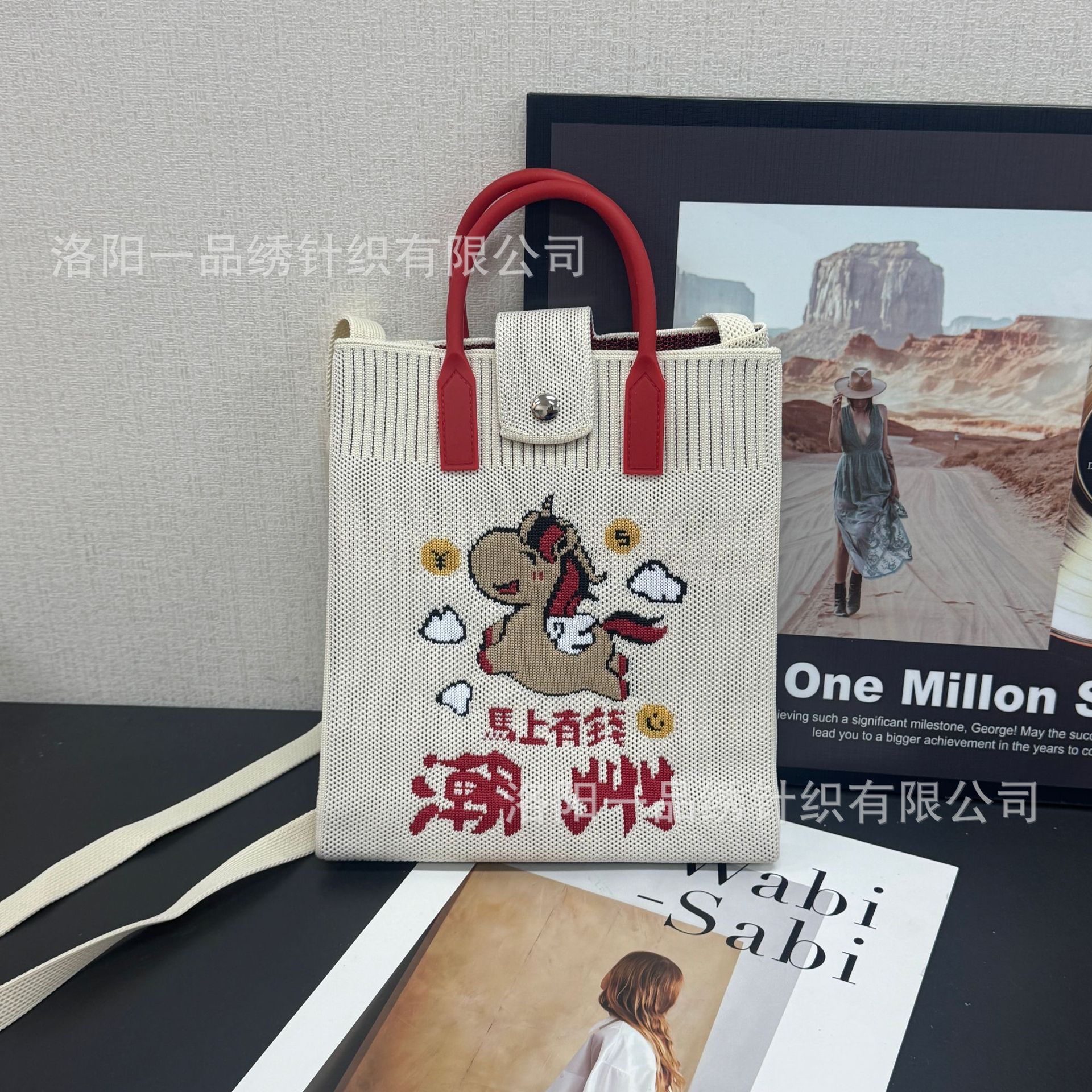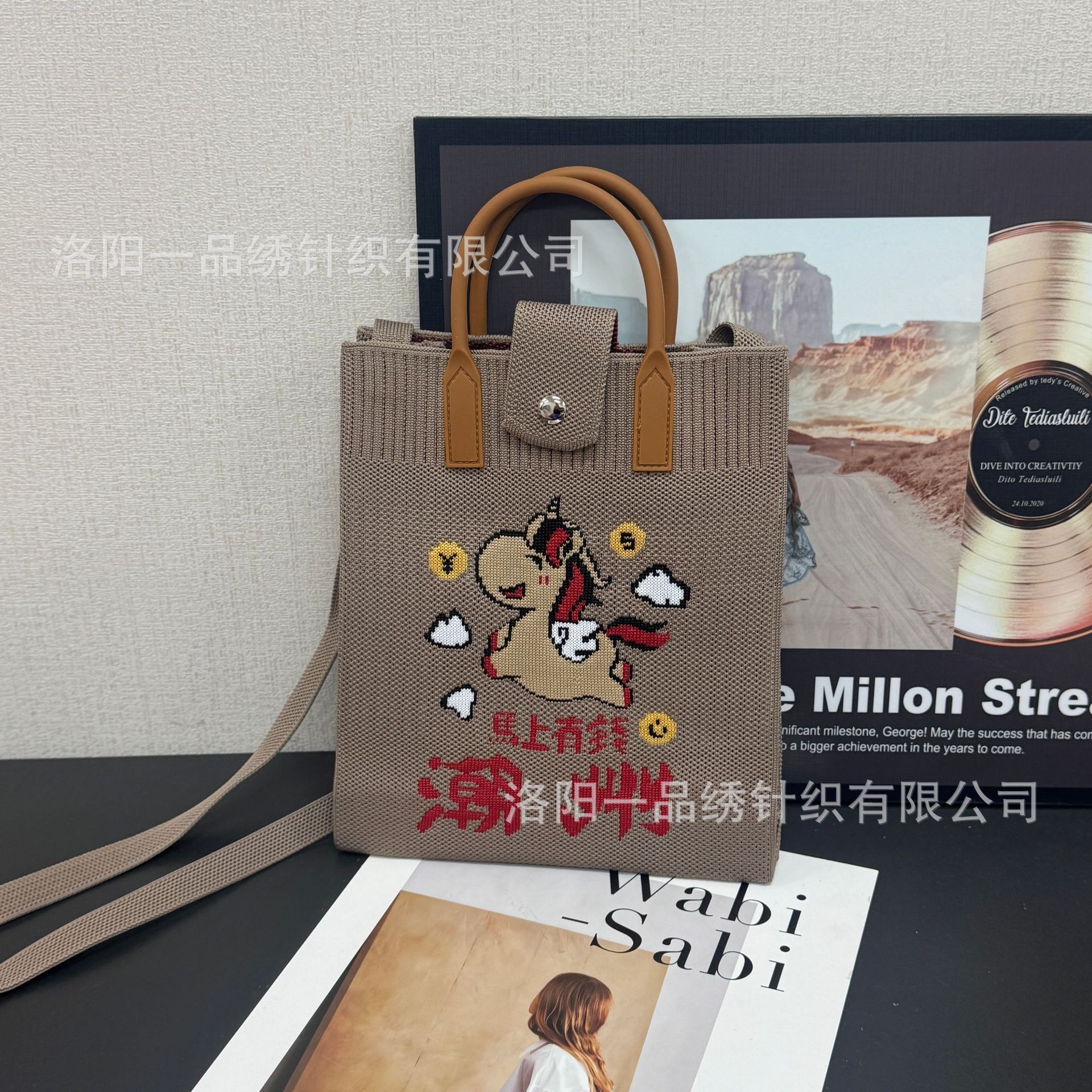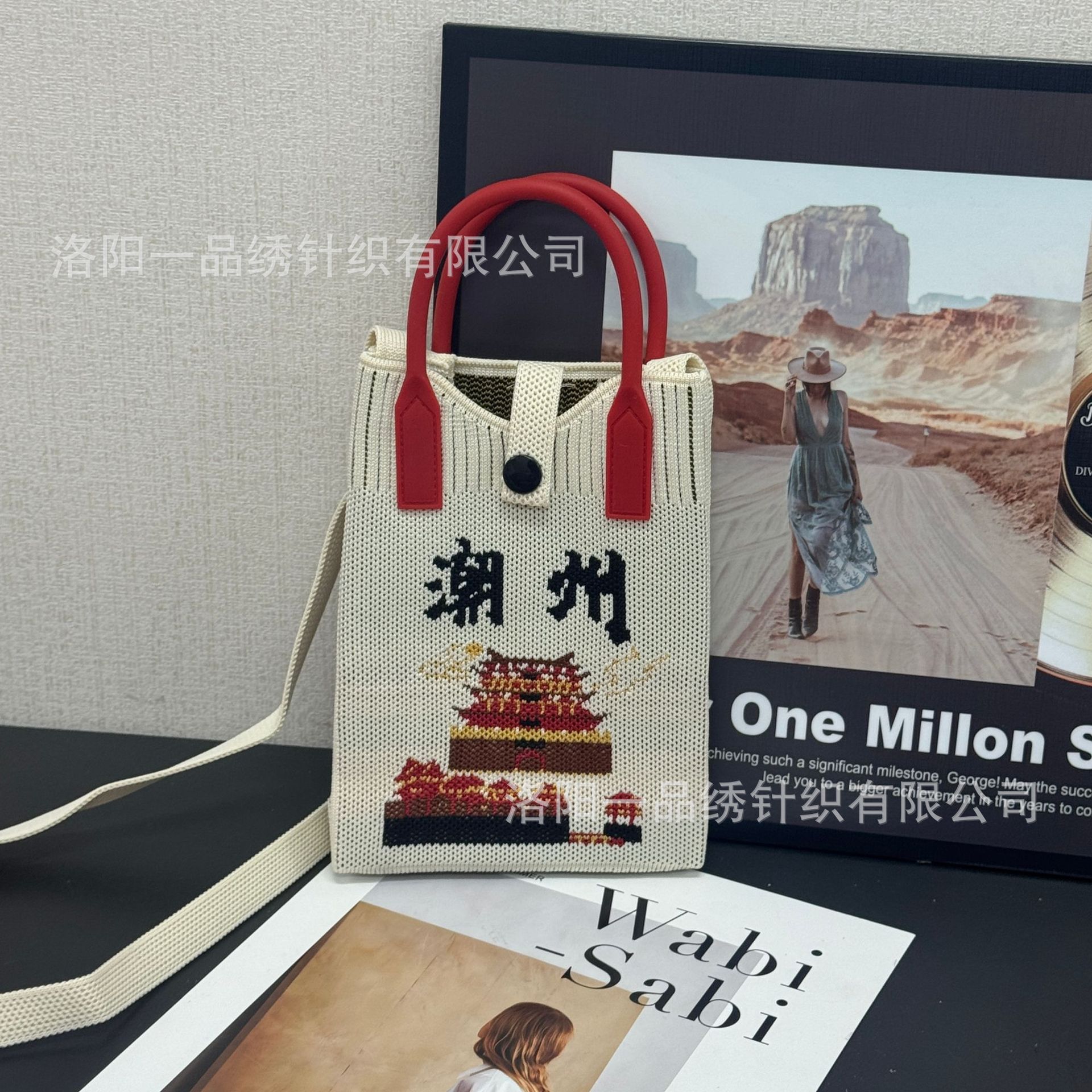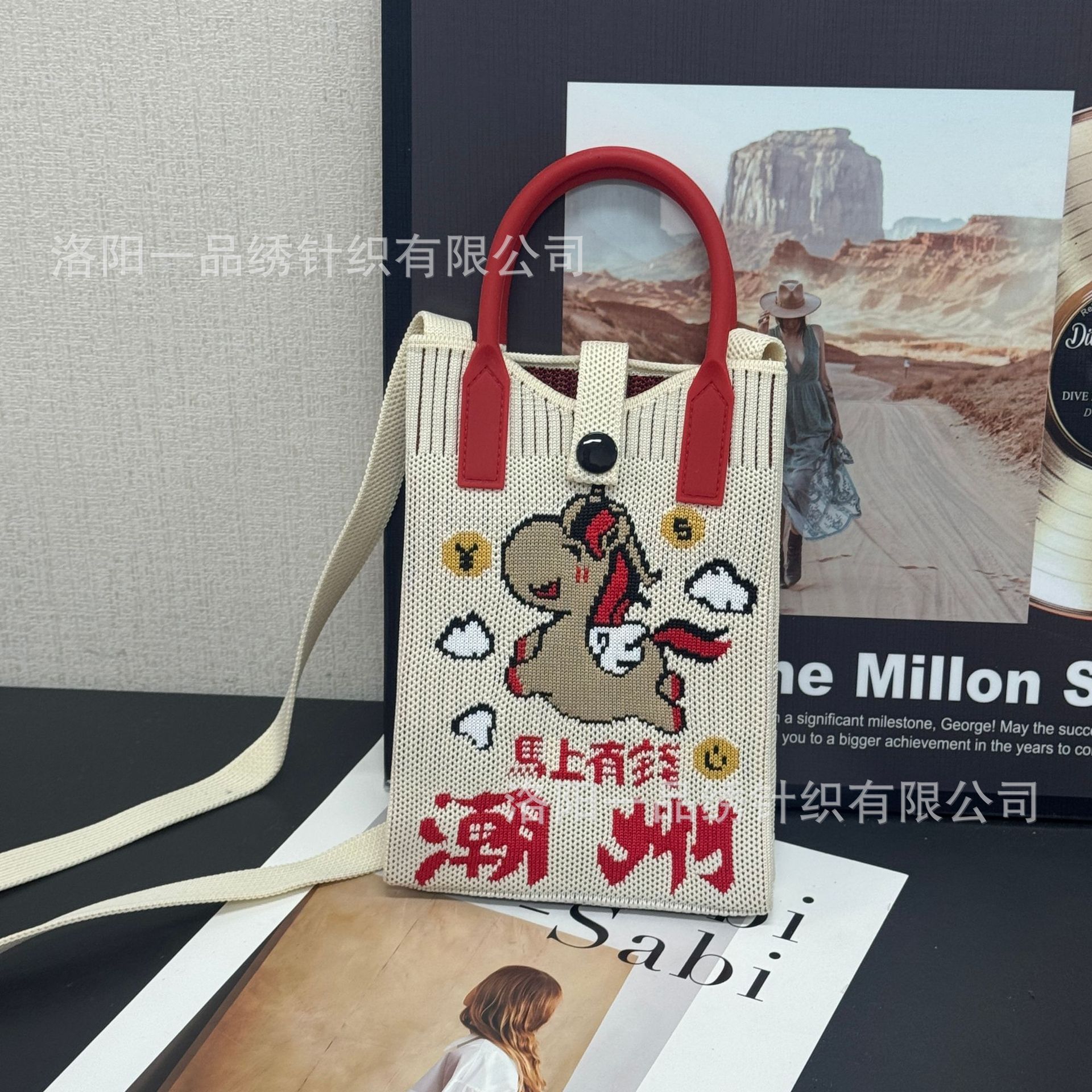2025 китайский стиль трикотажный мобильный телефон сумка удачи благословение сумка модная индивидуальность дикий премиум-класса сумка через плечо