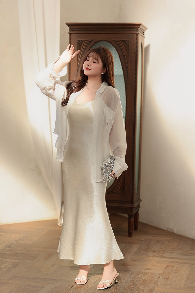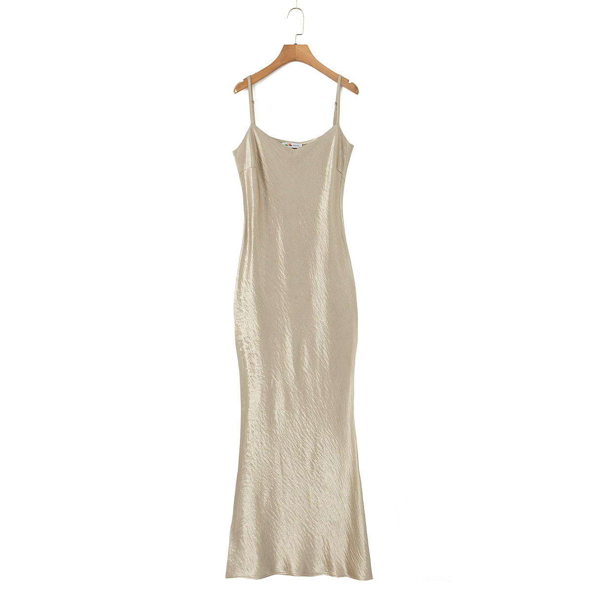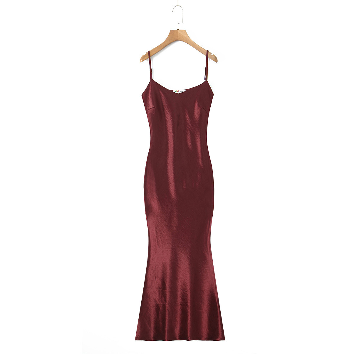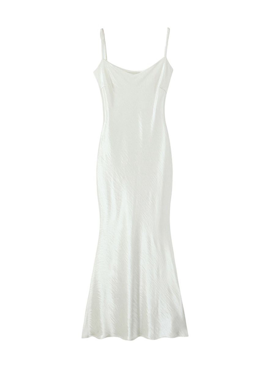 Жемчужная атласная ацетатная текстура V-образный воротник юбка с рыбьим хвостом