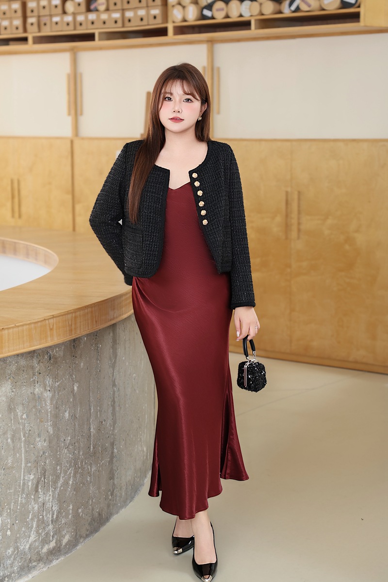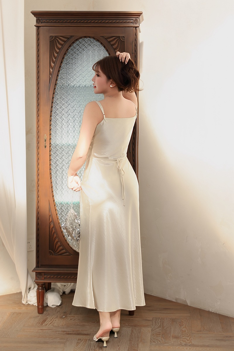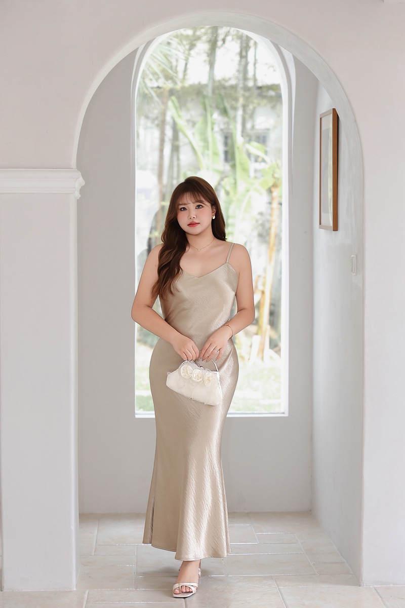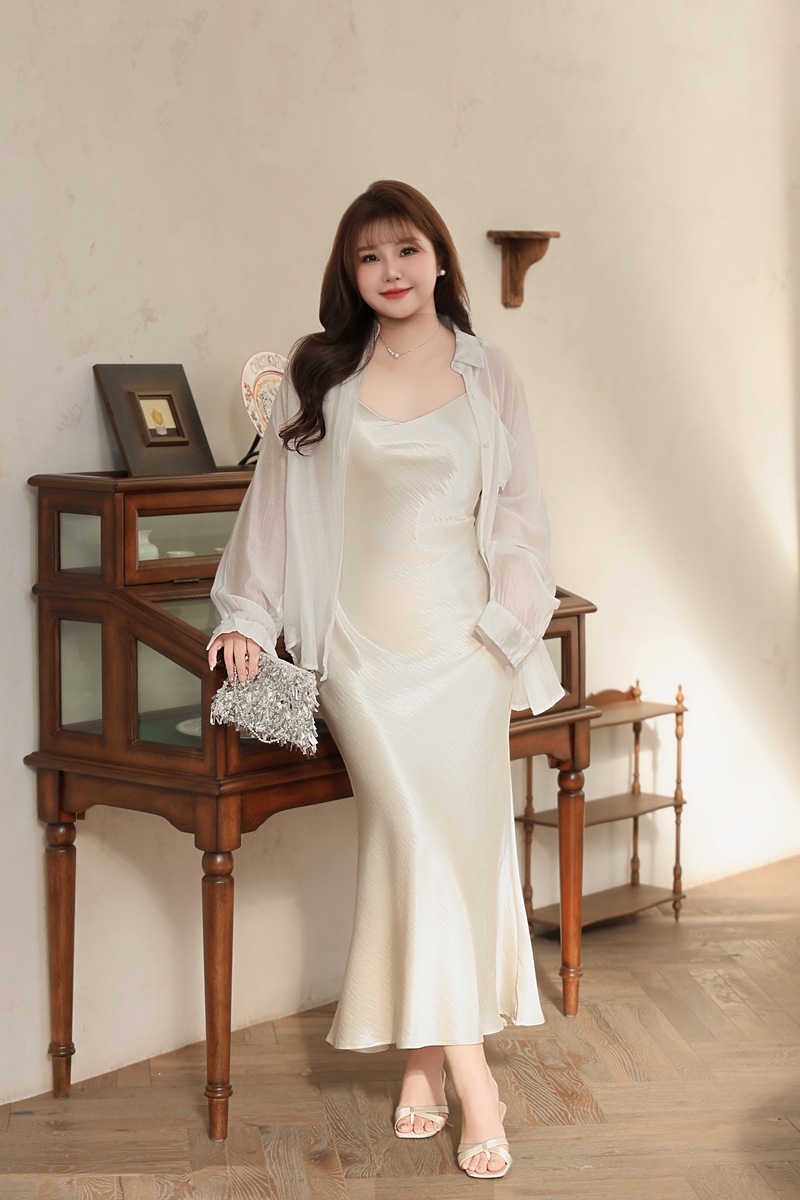Жемчужная атласная ацетатная текстура V-образный воротник юбка с рыбьим хвостом