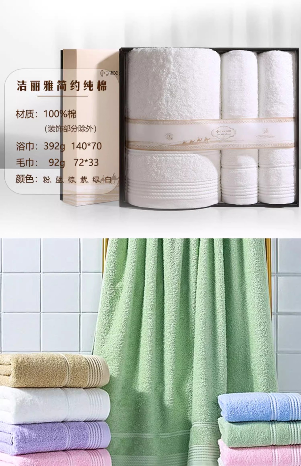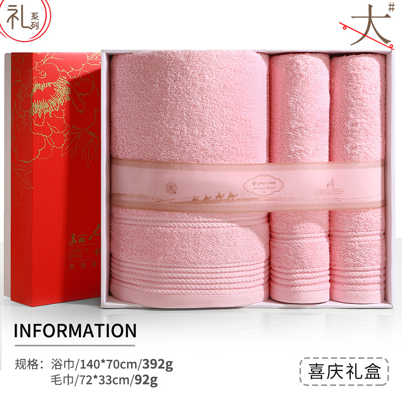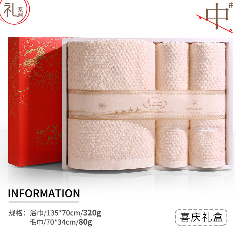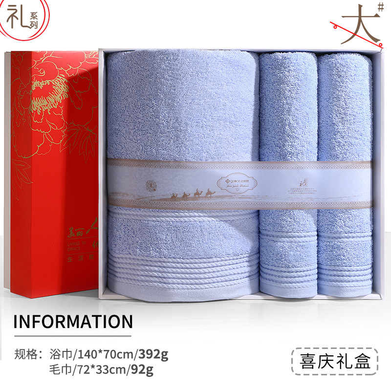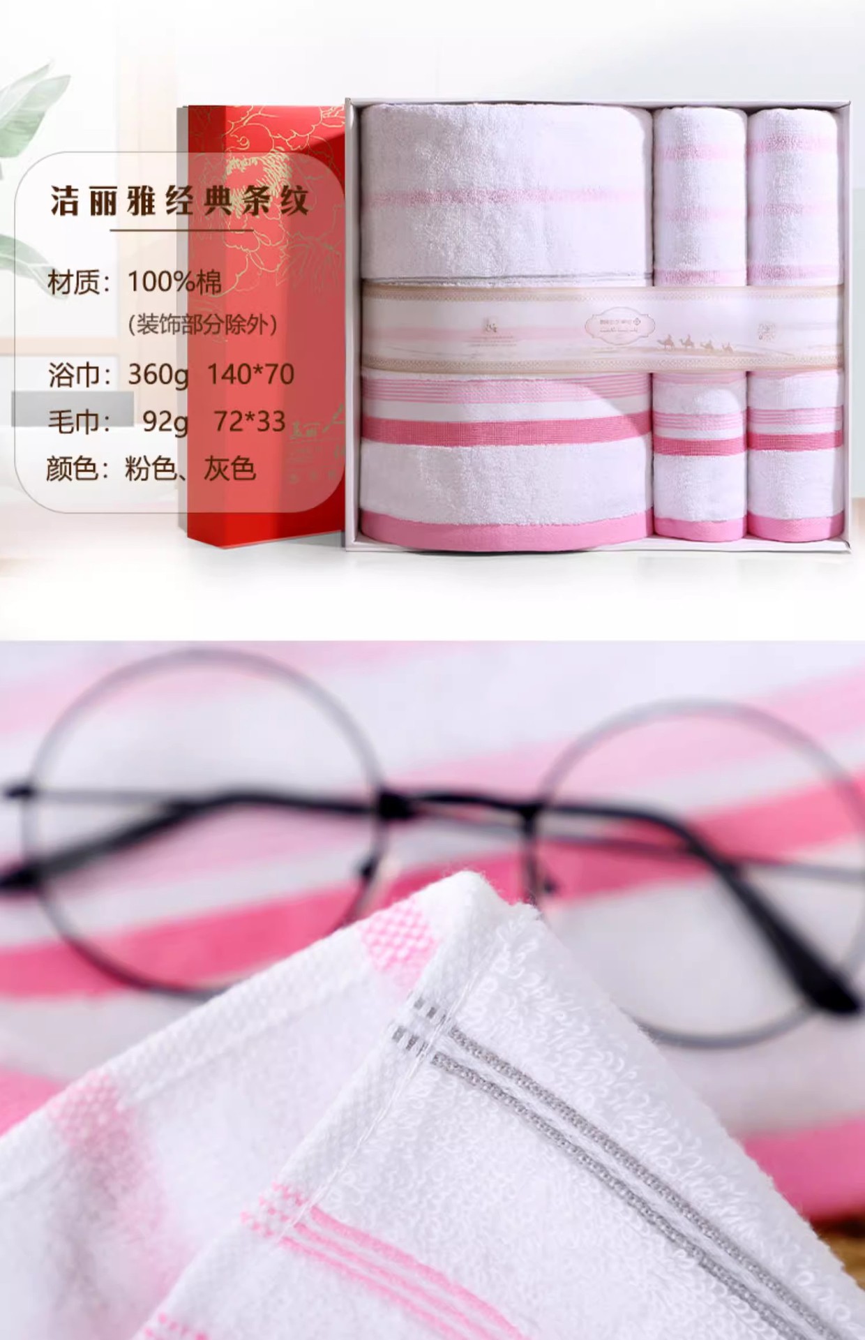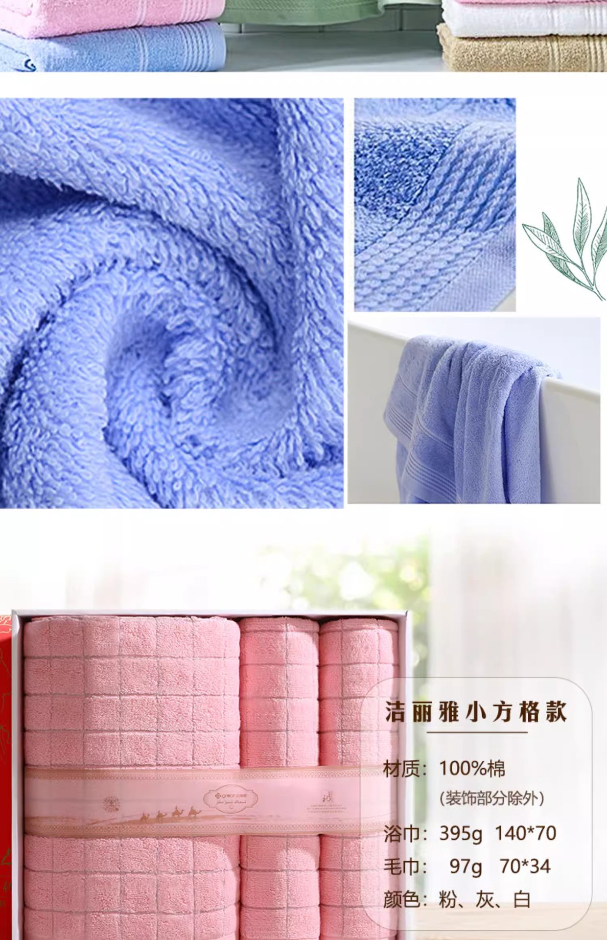 洁丽雅大号加厚洗脸巾 纯棉全棉吸水巾三件套装生日婚庆回伴手礼