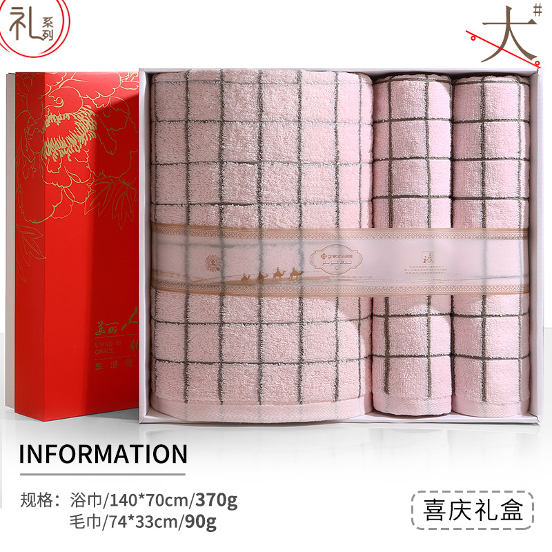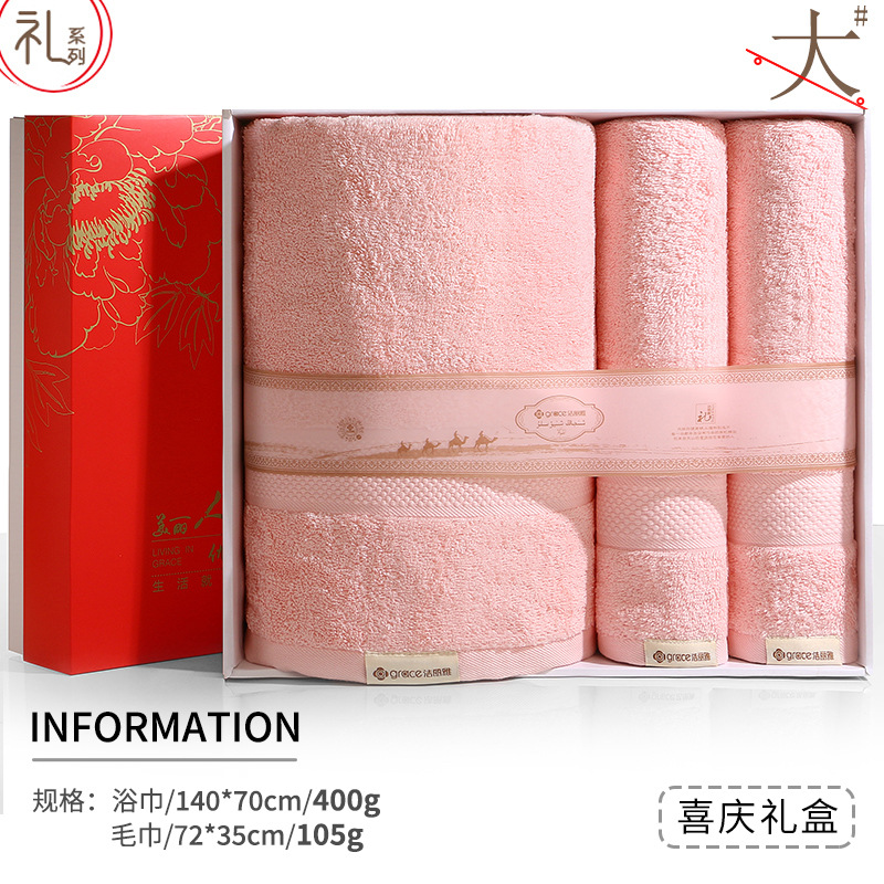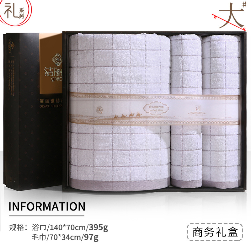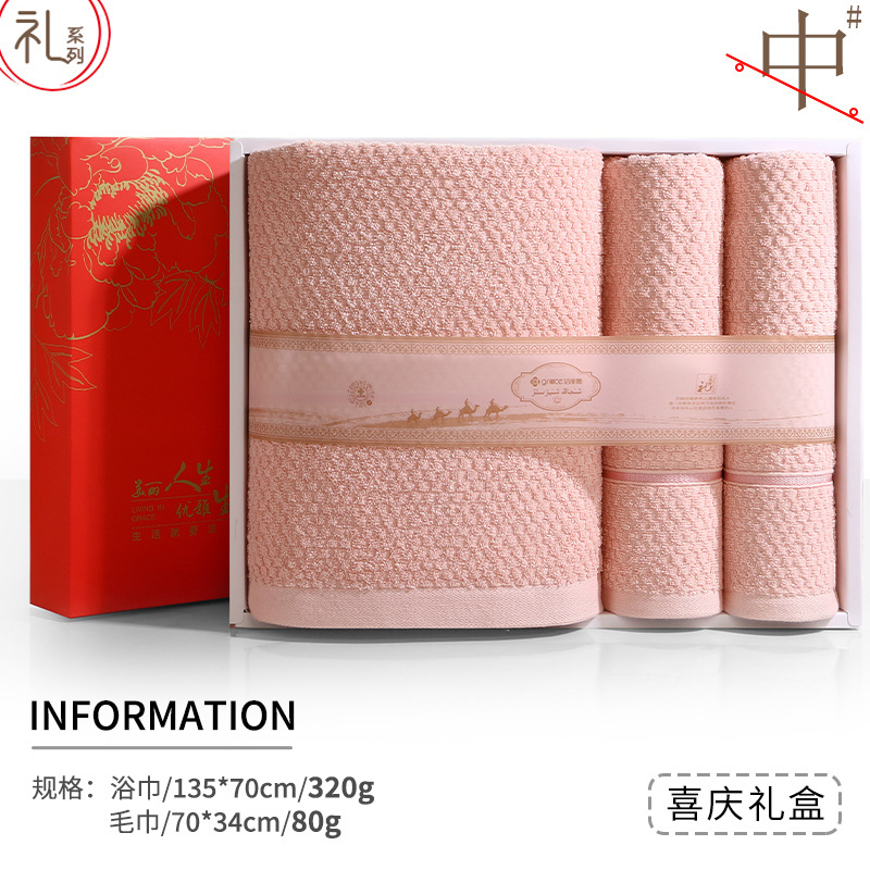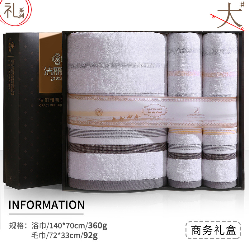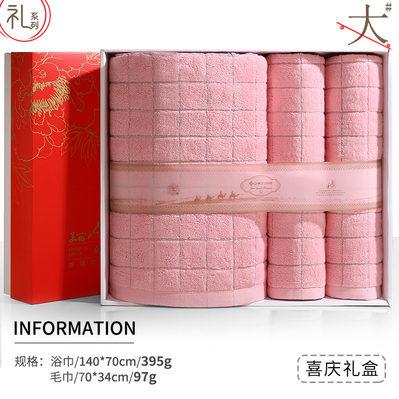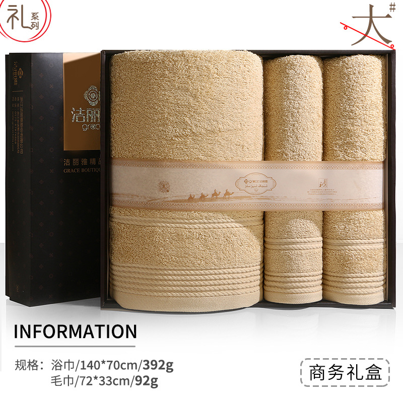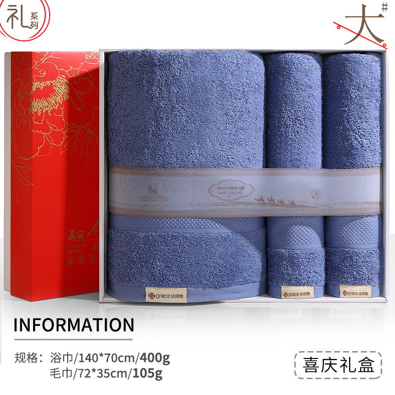 洁丽雅大号加厚洗脸巾 纯棉全棉吸水巾三件套装生日婚庆回伴手礼