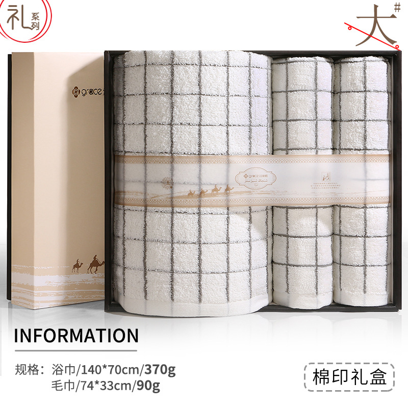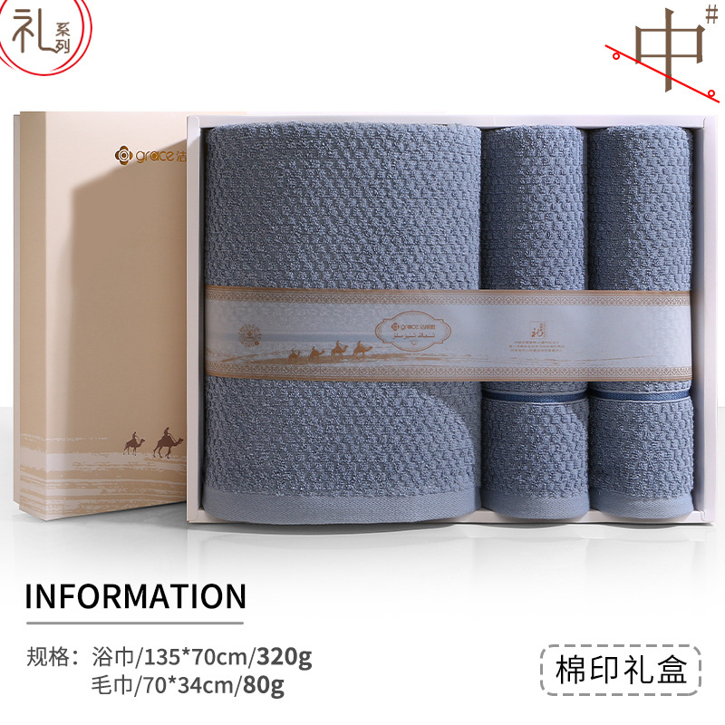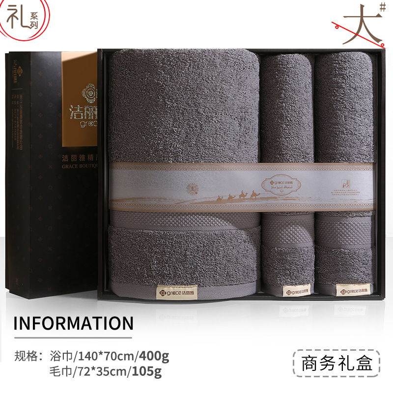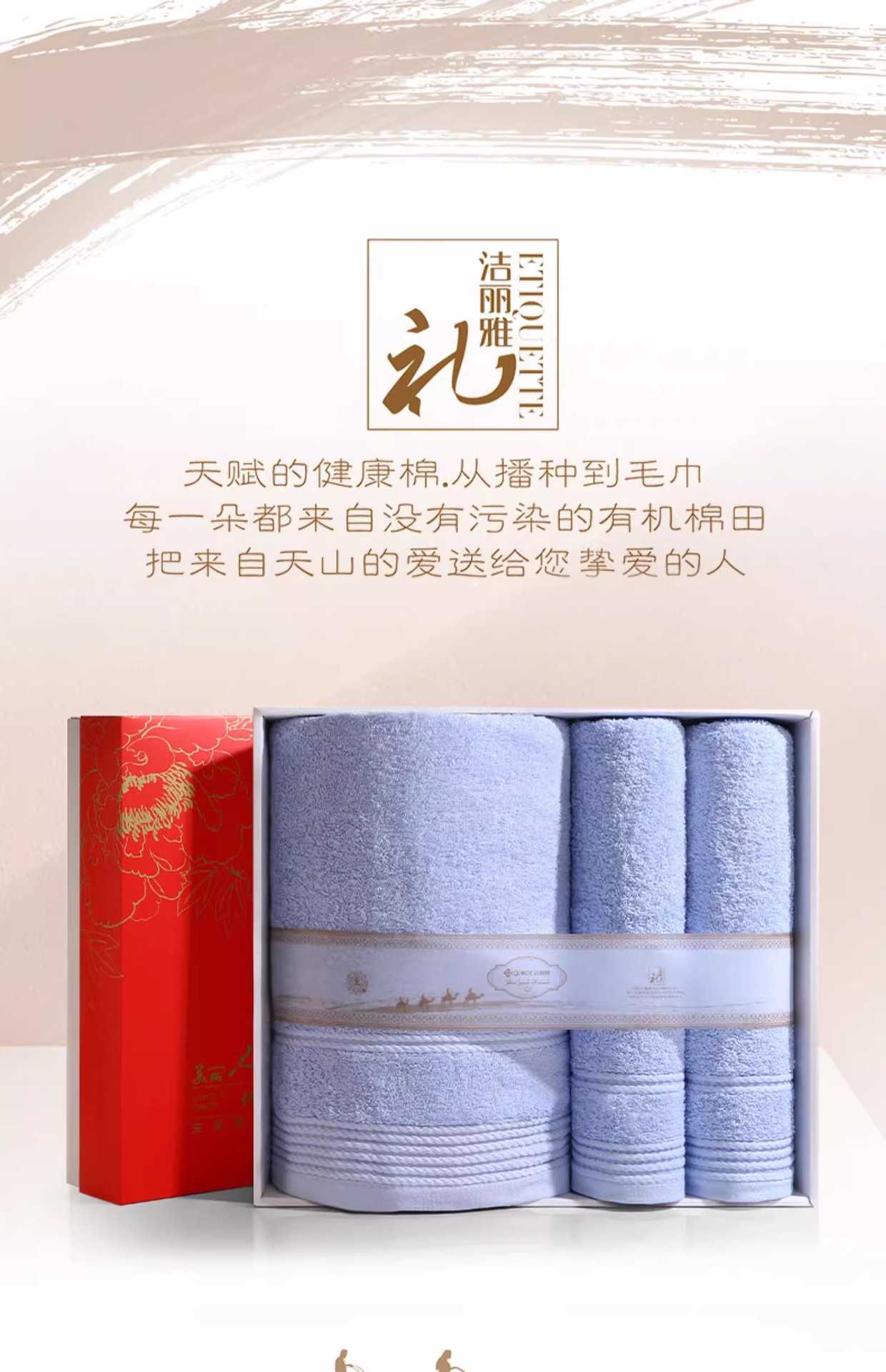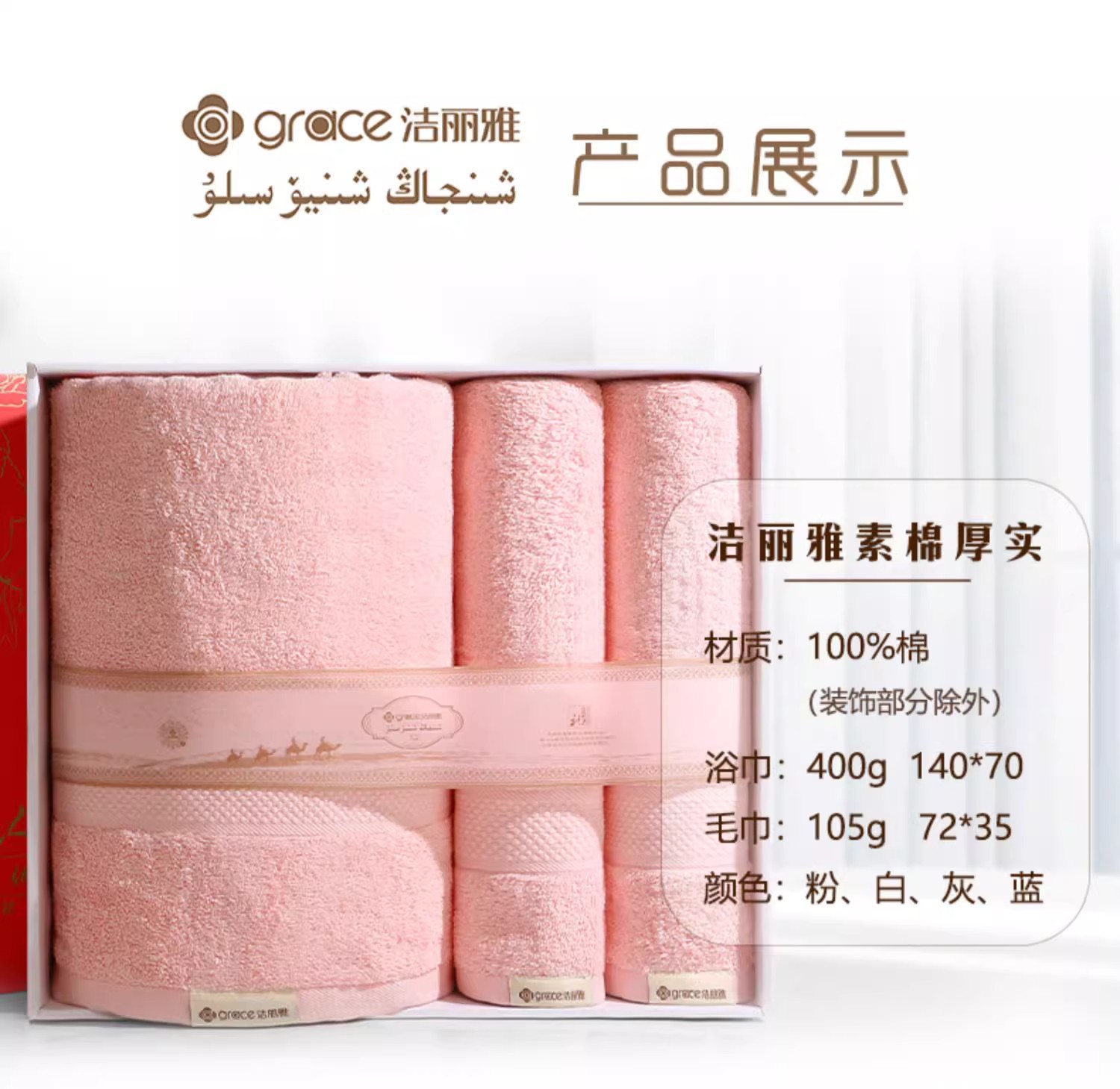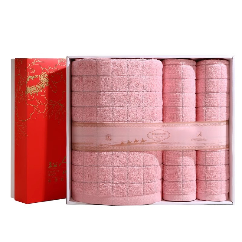 洁丽雅大号加厚洗脸巾 纯棉全棉吸水巾三件套装生日婚庆回伴手礼