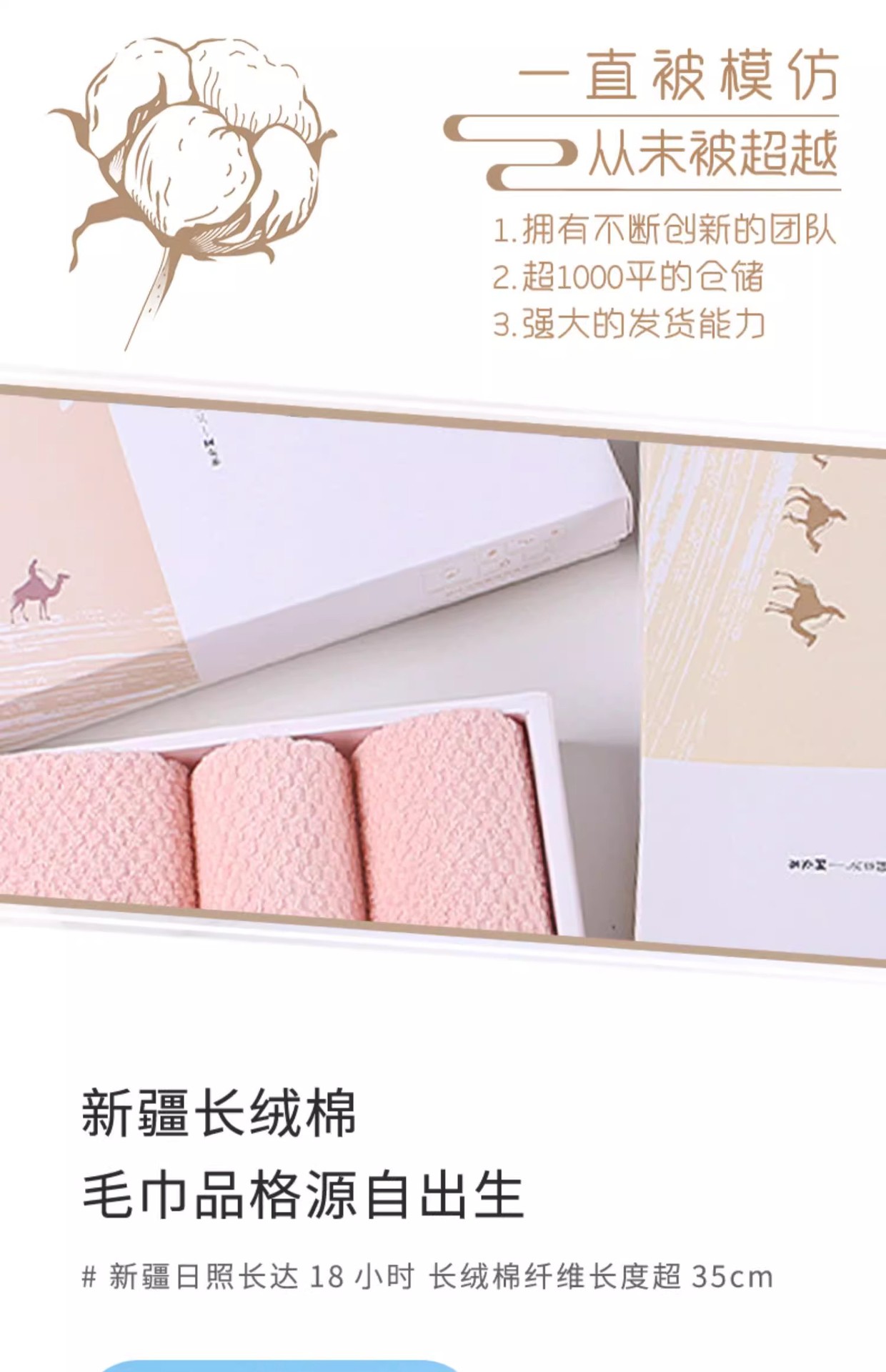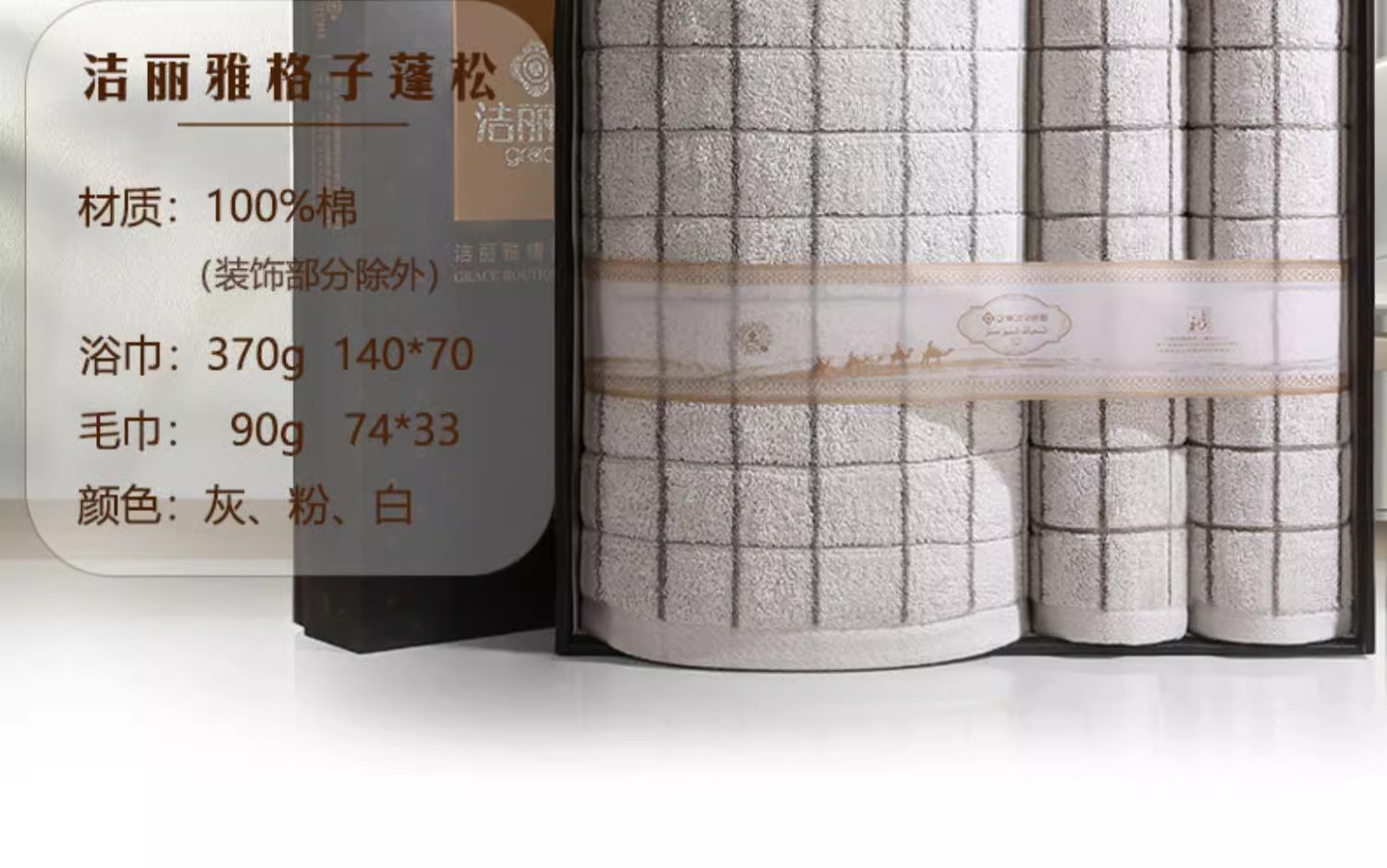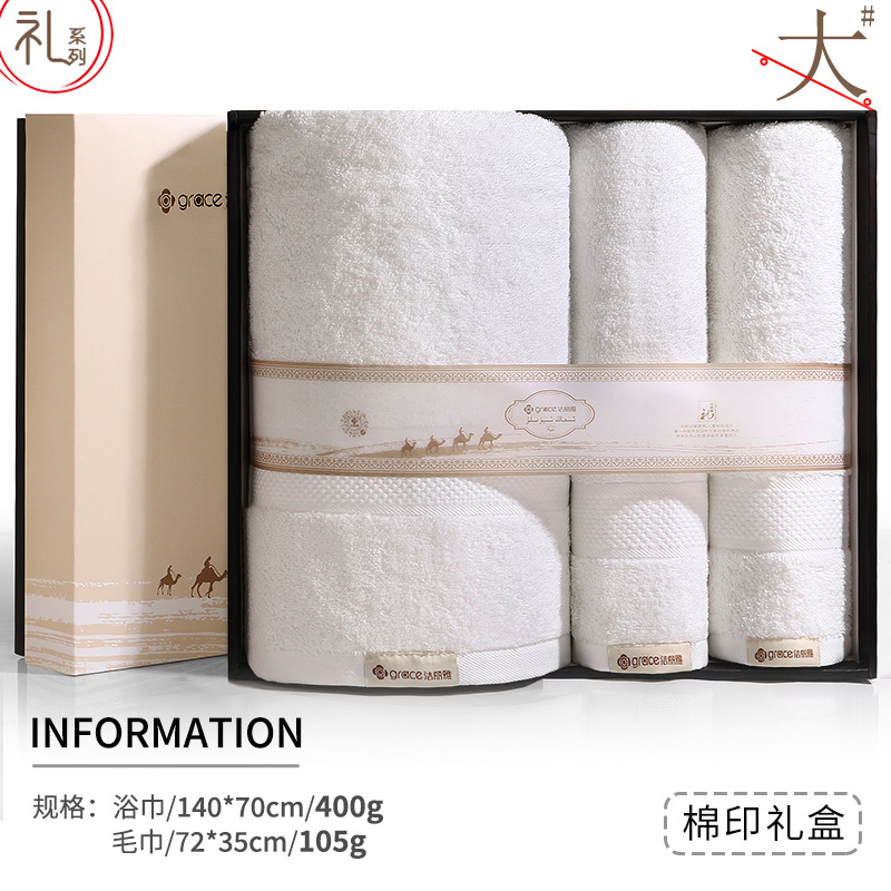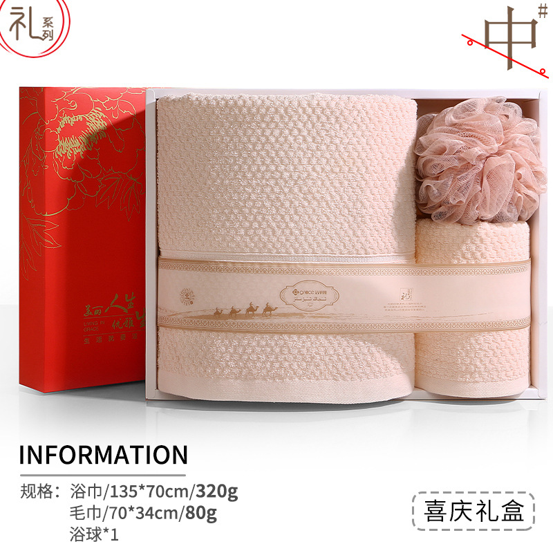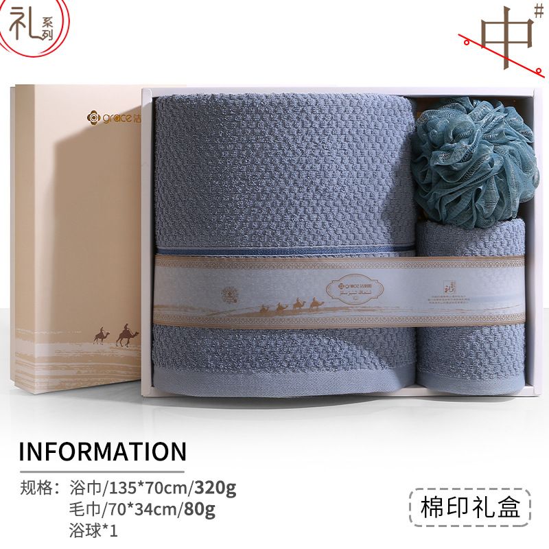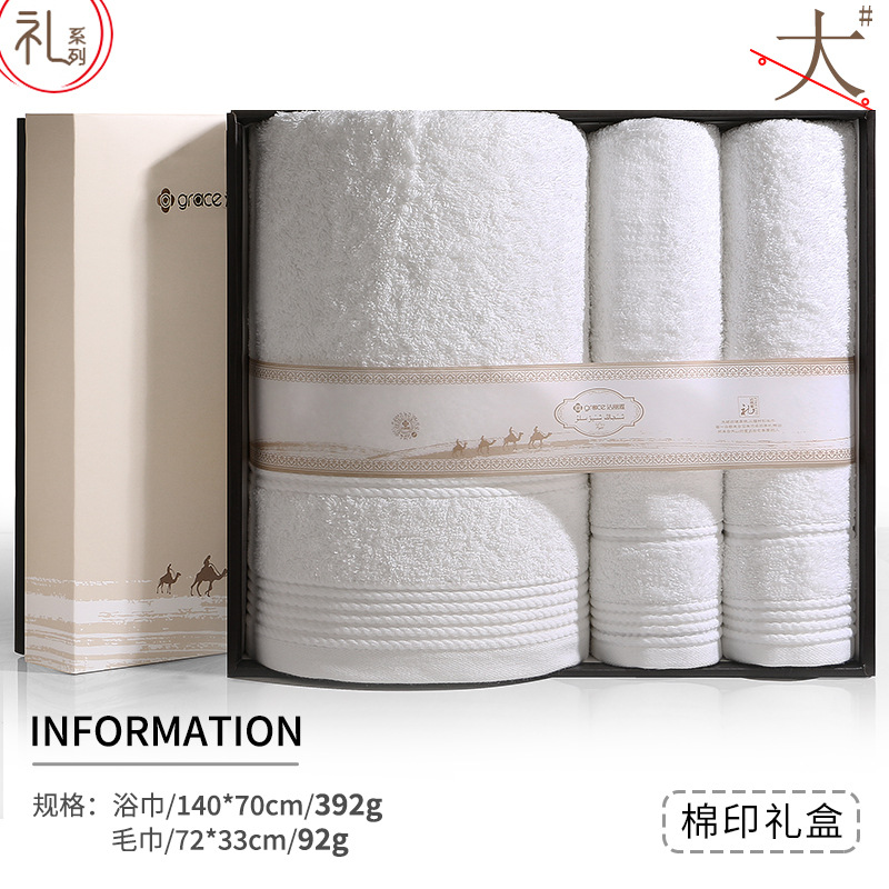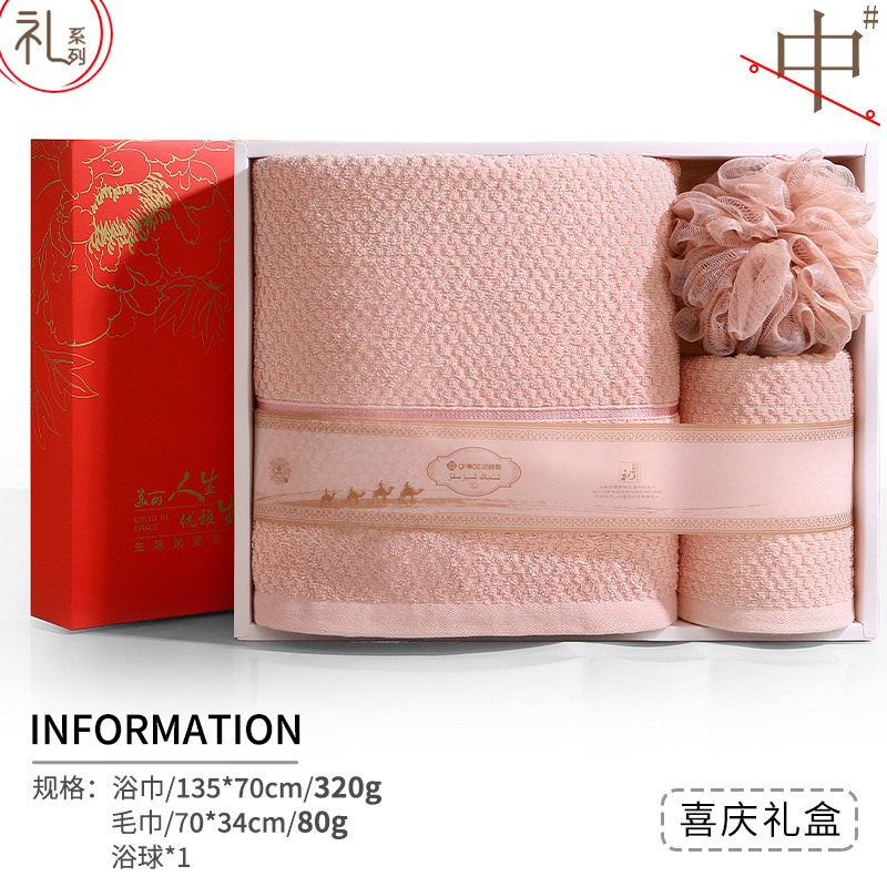 洁丽雅大号加厚洗脸巾 纯棉全棉吸水巾三件套装生日婚庆回伴手礼