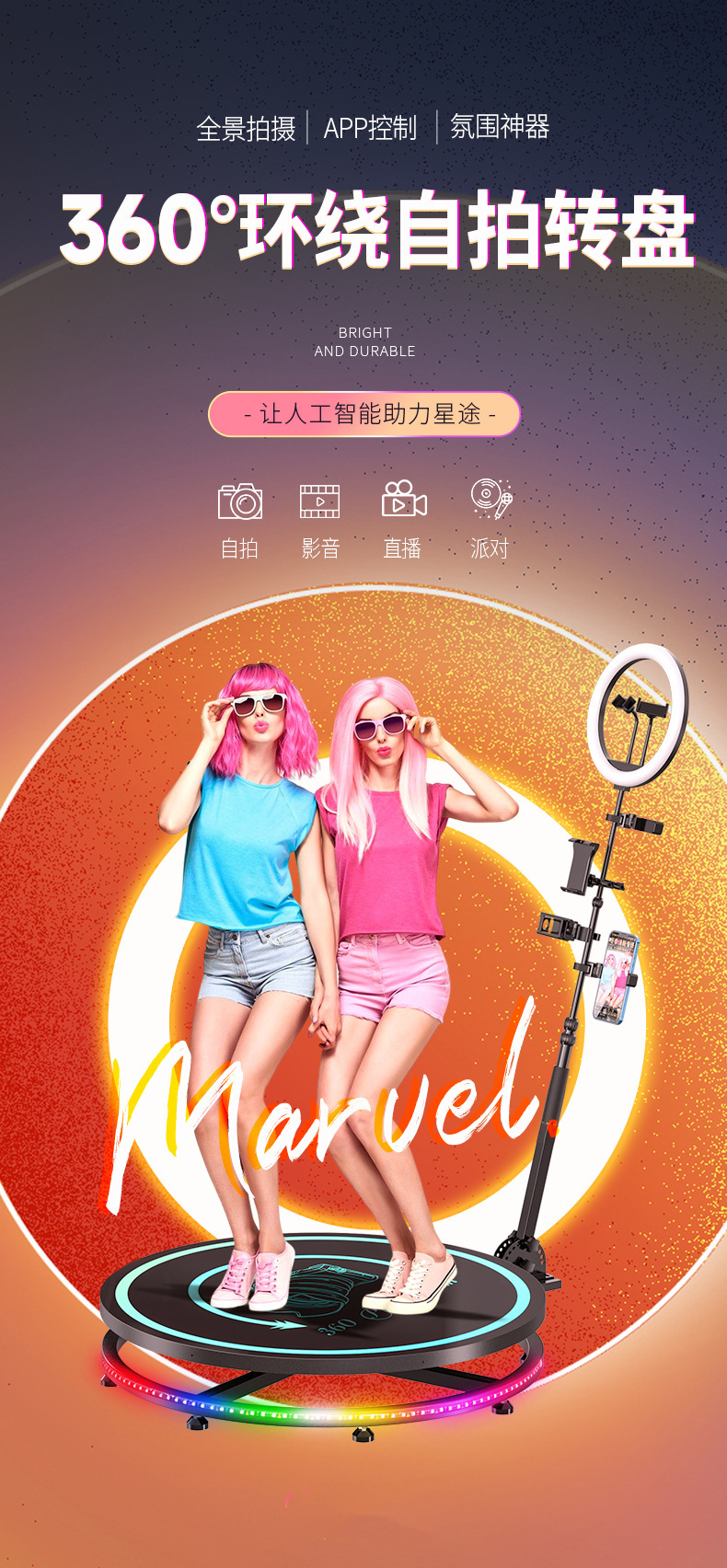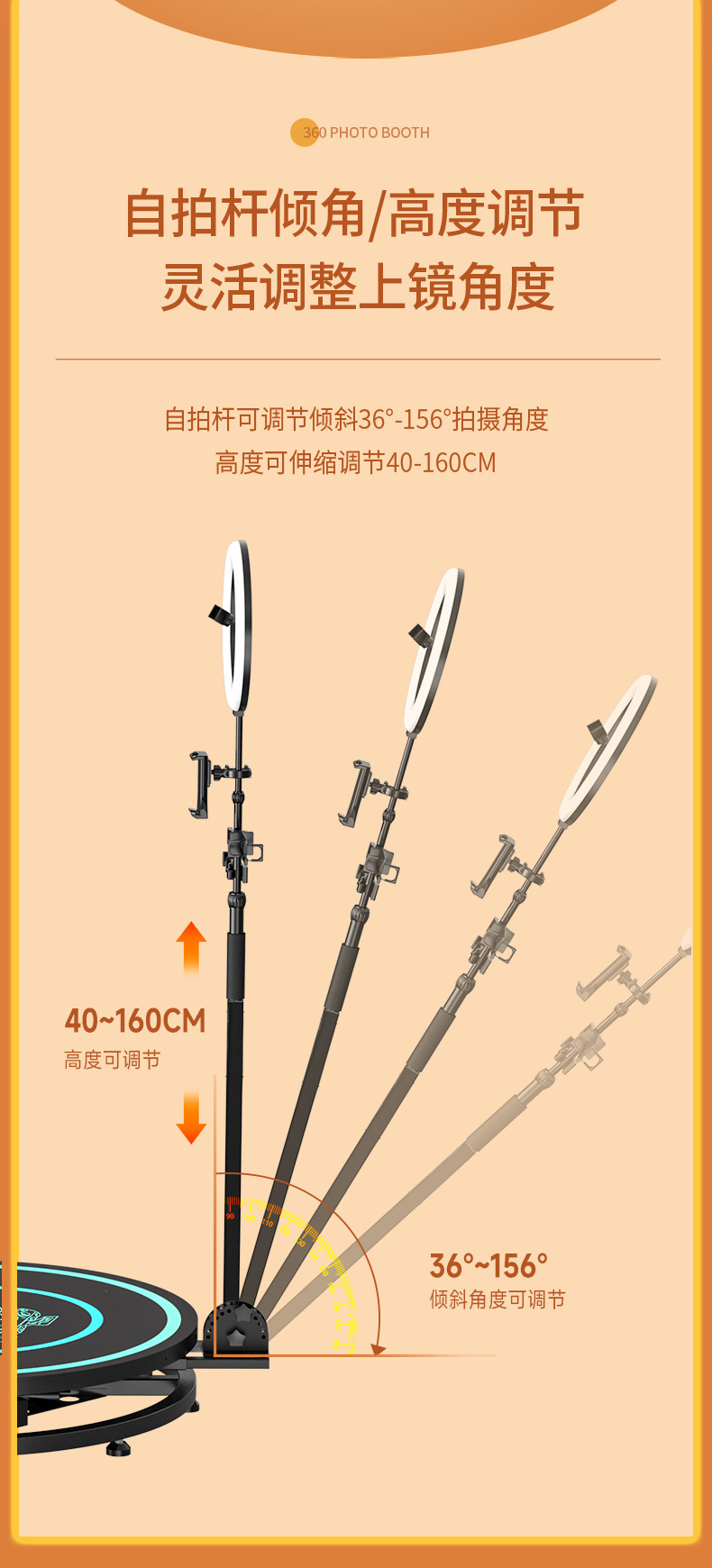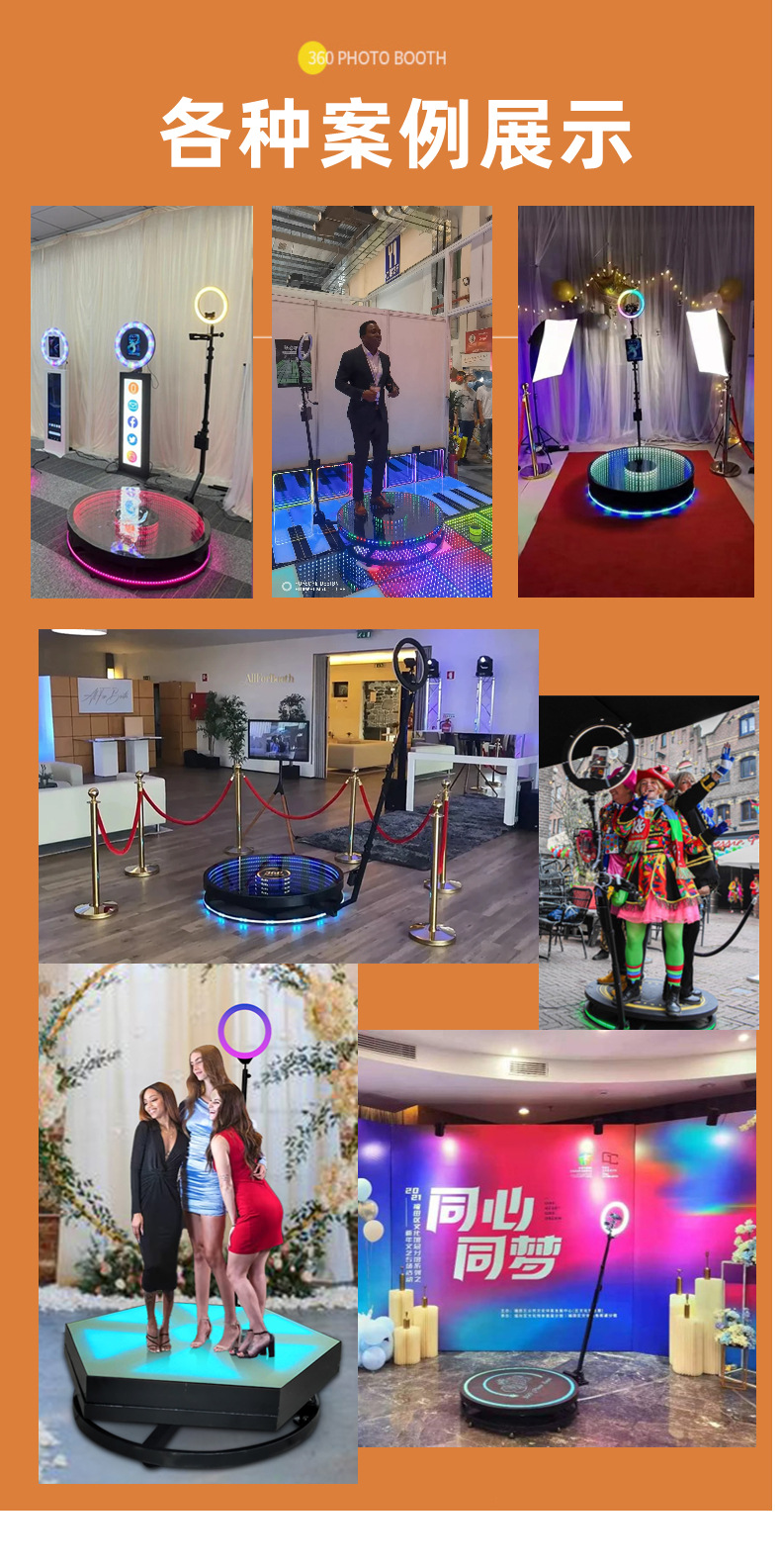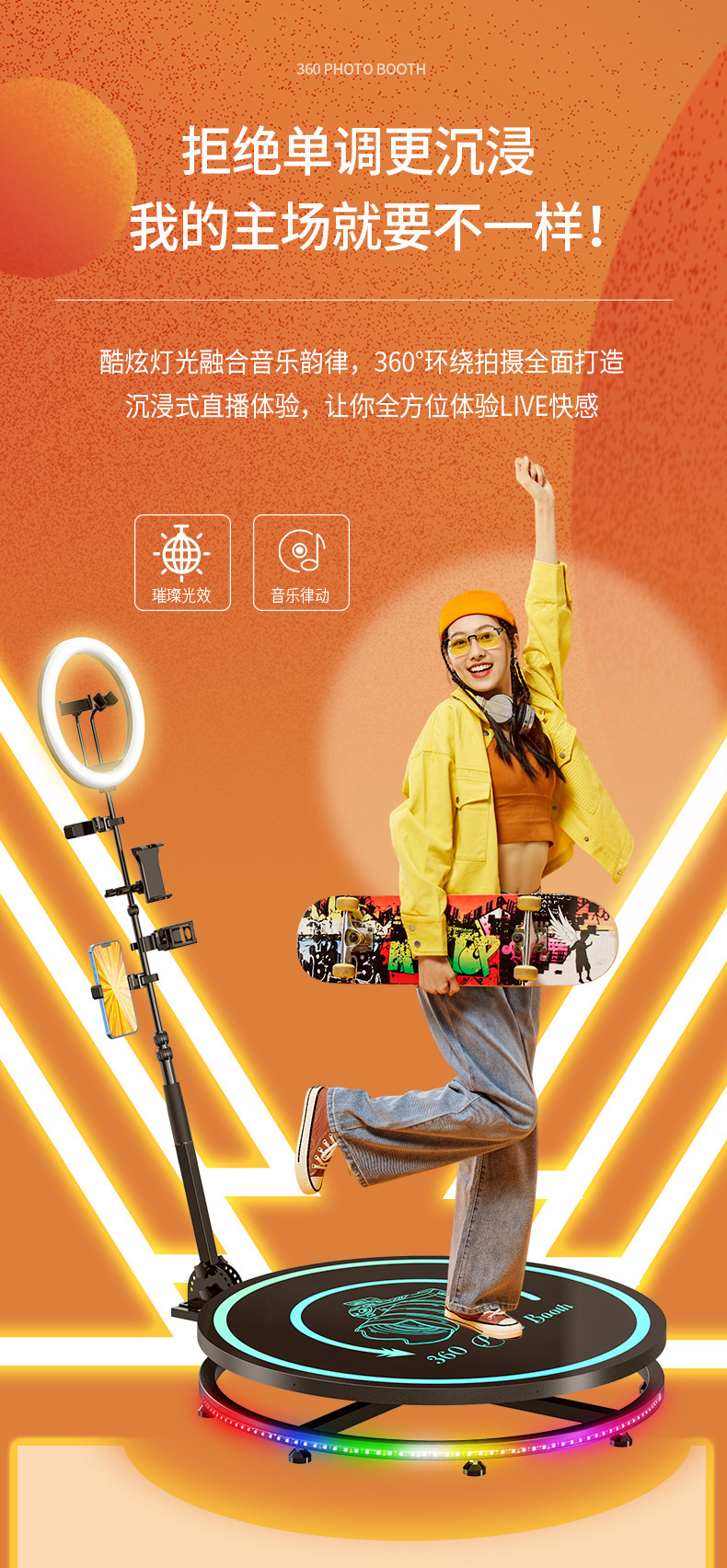 360Photobooth360 Кольцевая съемка Вращающееся светящееся сценическое стекло стиль сцены Автоматическая вращающаяся панорамная съемка
