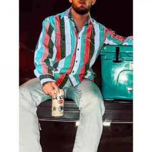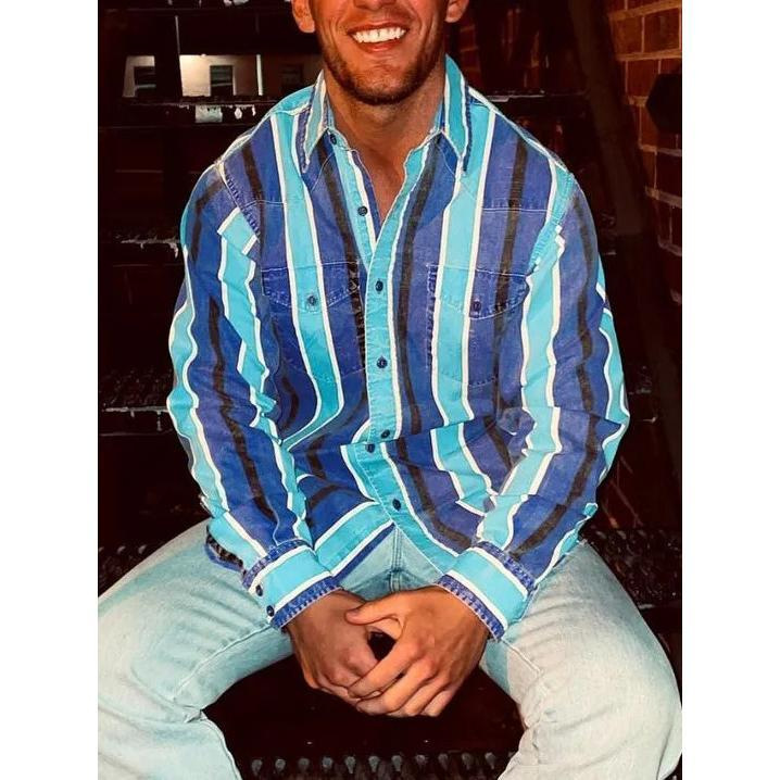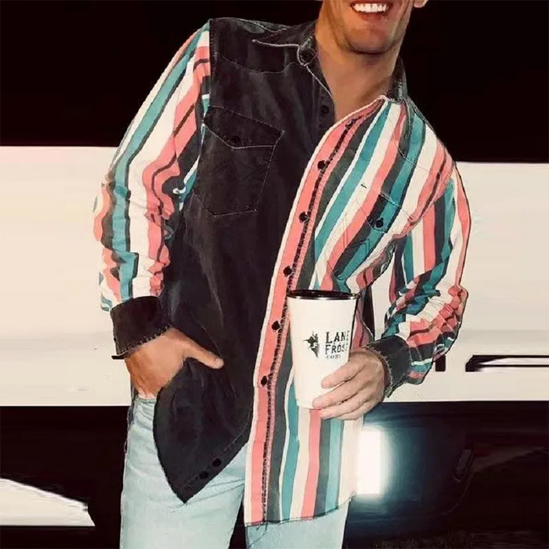 Трансграничный западный джинсовый тренд ретро молодой мужской панк цифровой принт двойной сумка мужская рубашка