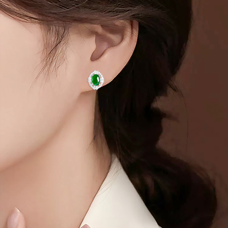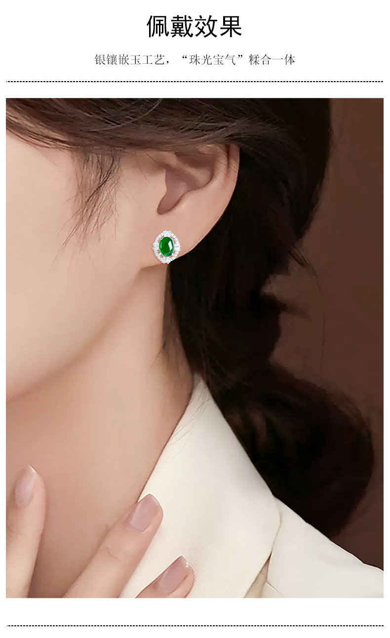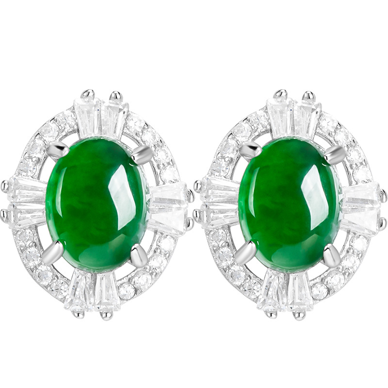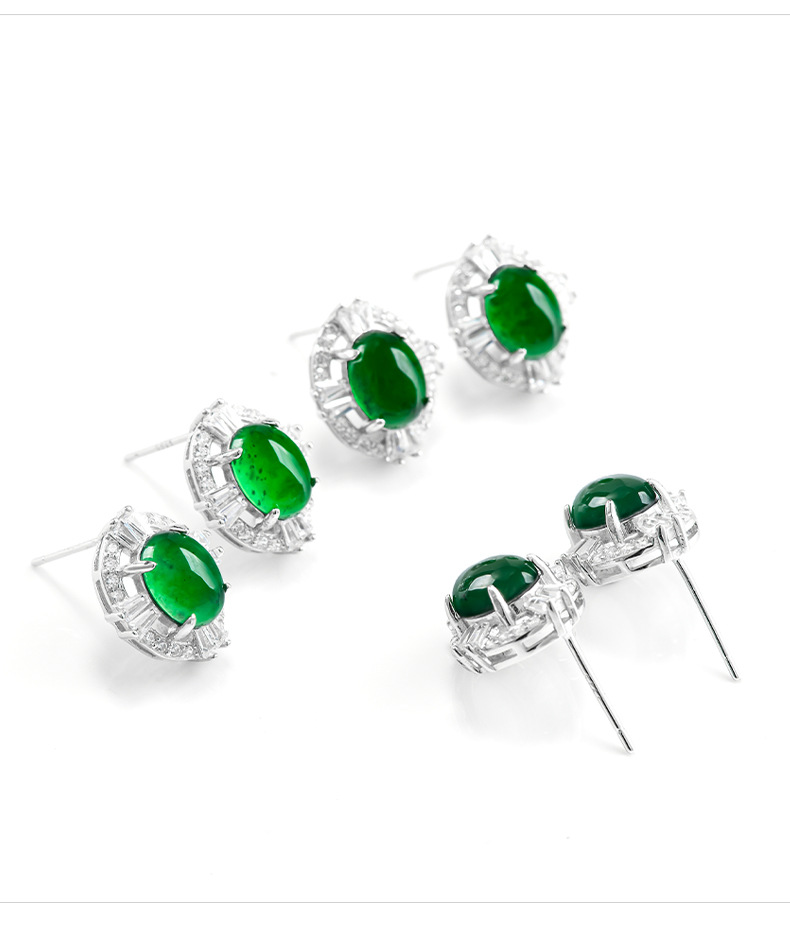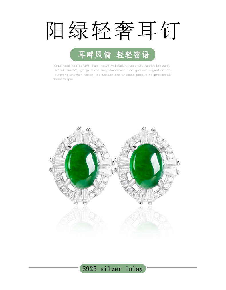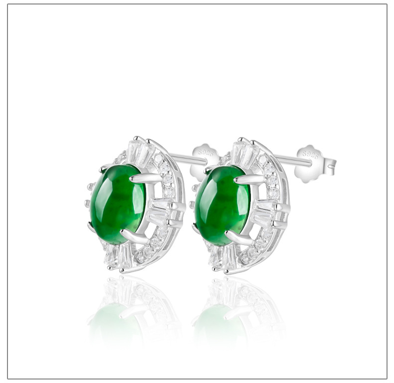 Натуральный товар Изумрудный овальный яичный лапша, зеленый ушной гвоздь, лед, нефритовый камень мода S925 Серебряная инкрустация женские серьги