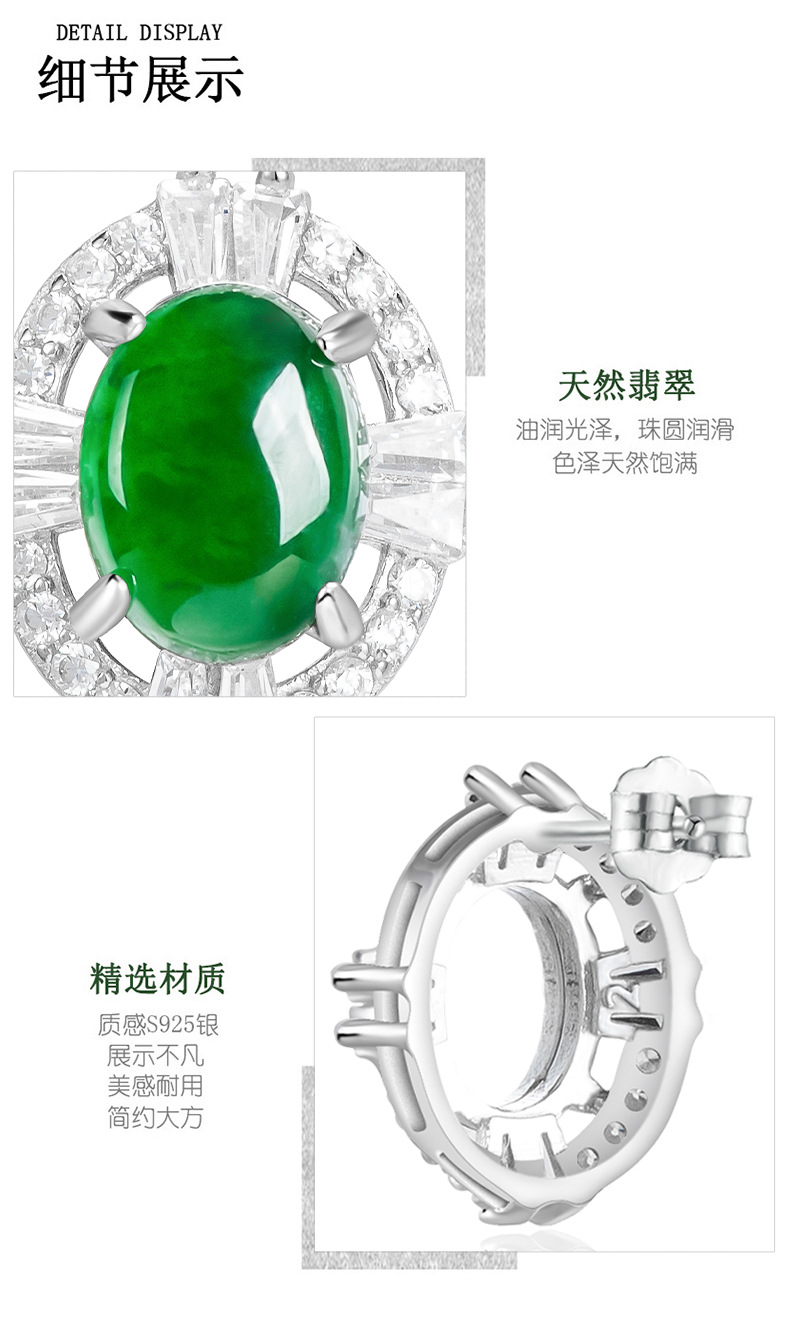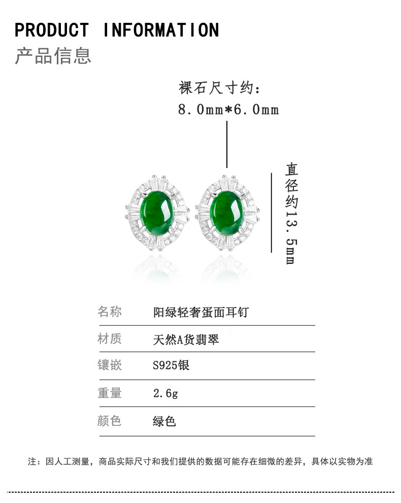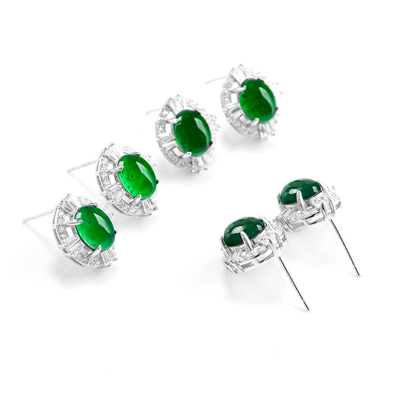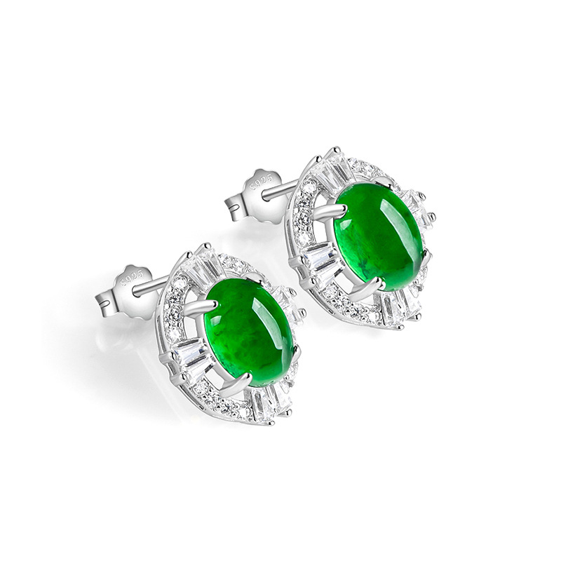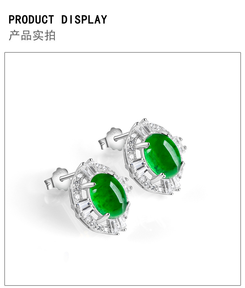 Натуральный товар Изумрудный овальный яичный лапша, зеленый ушной гвоздь, лед, нефритовый камень мода S925 Серебряная инкрустация женские серьги