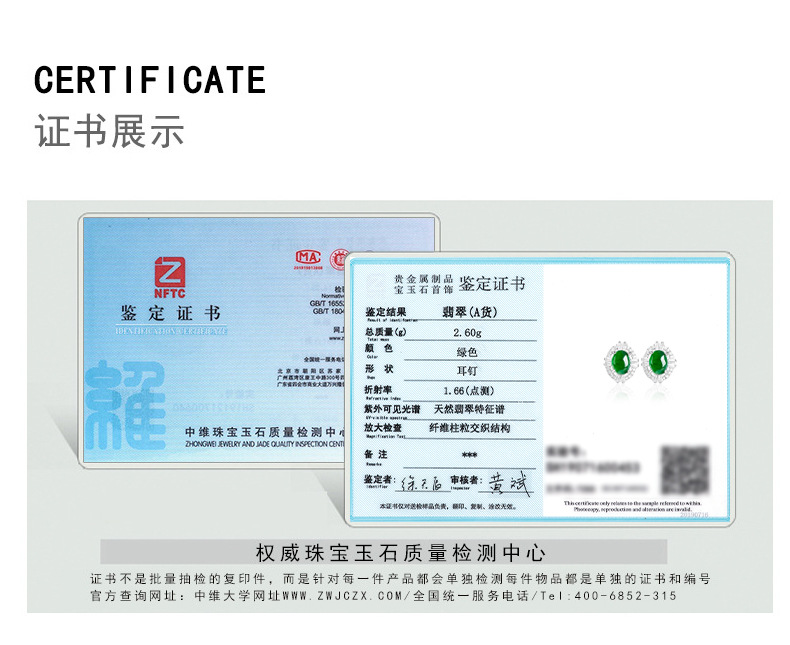 Серьги-гвоздики овальной формы Yang Green (с сертификатом) D424