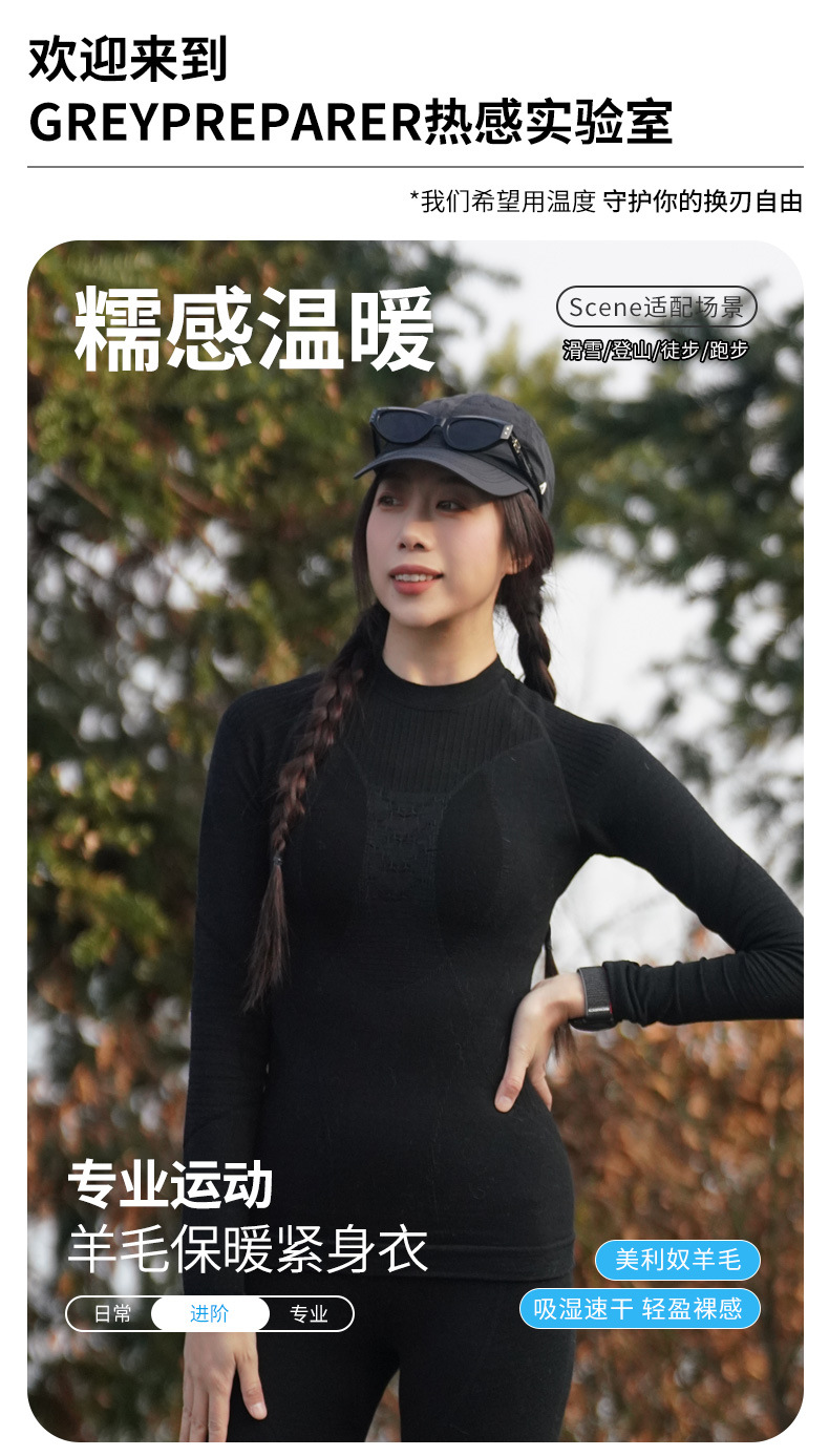 Серая раковина на открытом воздухе меринос женский спортивный теплый корпус быстрорежилая одежда красивый лыжный антибактериальный компрессионный набор