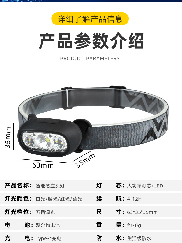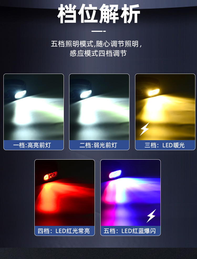 Трансграничные горячие продажи мини-индукционные фары новые портативные зарядные полевые кемпинг езда фары