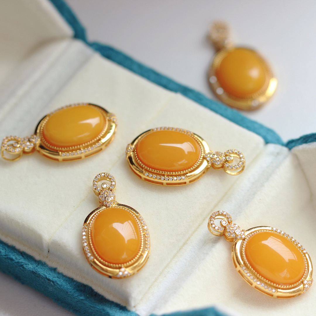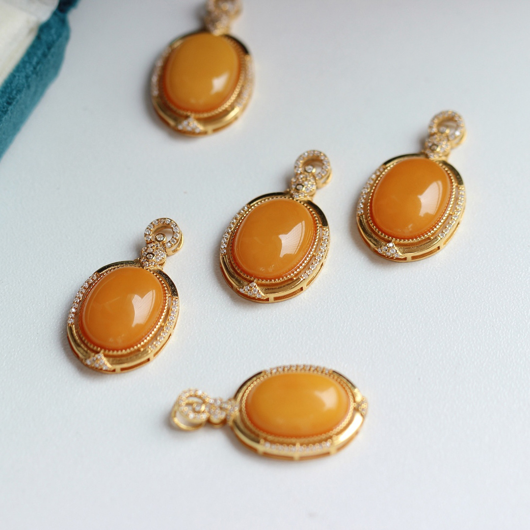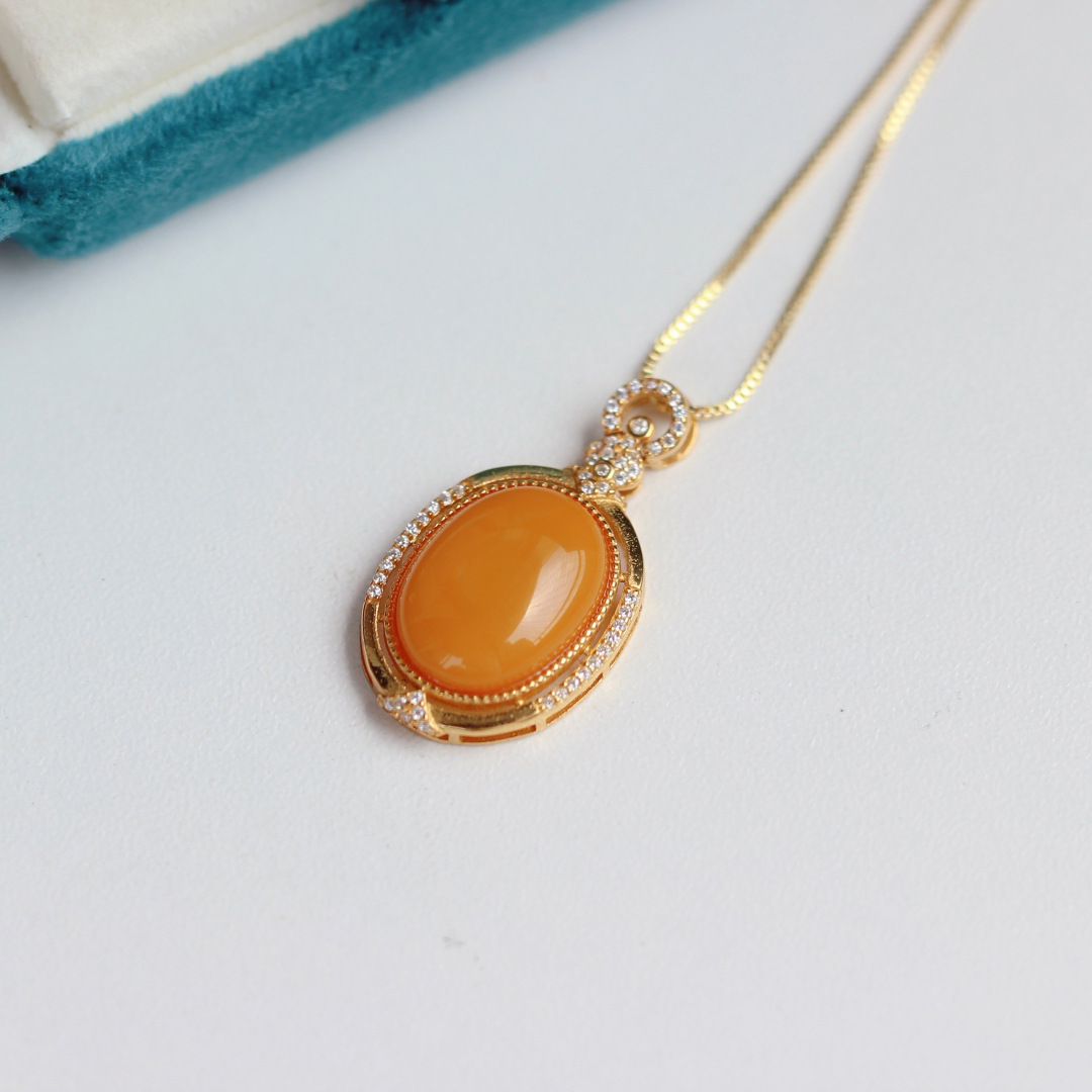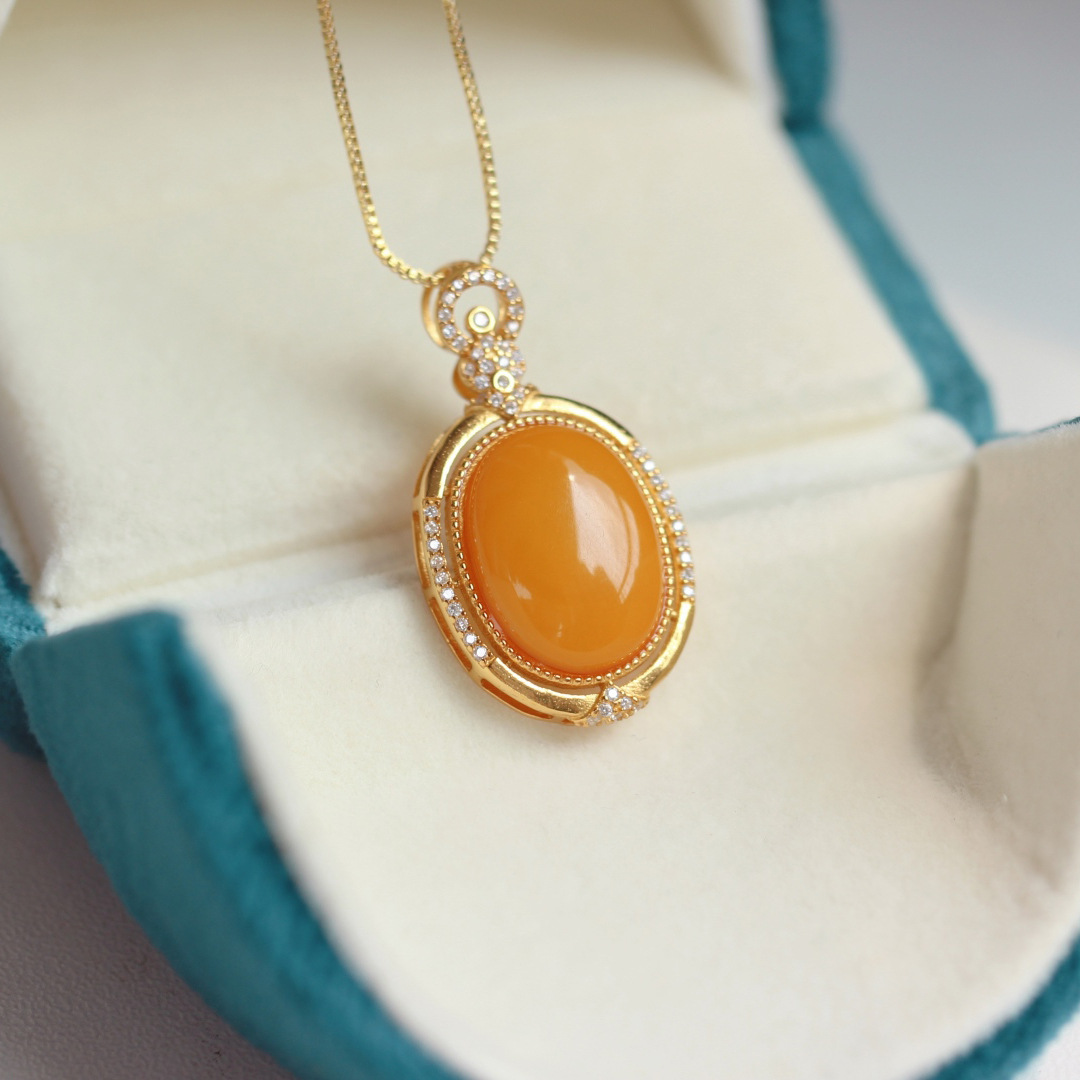 Натуральный старый медовый воск подвеска высокий груз яйцо в форме подвески подлинный сертификат S925 стерлингового серебра для женских одиночных игр ретро высокого уровня