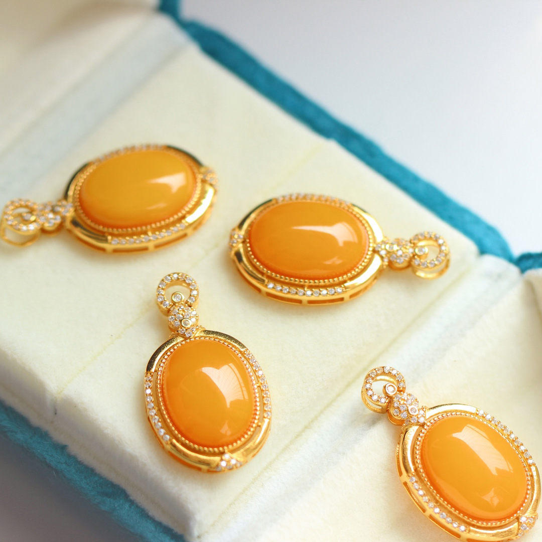 Подвеска из натурального старого пчелиного воска, серебро 925 пробы - около 18*22 мм.; [Подвеска из серебра S925] Яйцевидная подвеска из янтаря — около 12*16 мм; [Серебряный набор S925] Серебряная цепочка S925 + подвеска в виде янтарного яйца, размером примерно 12*16 мм