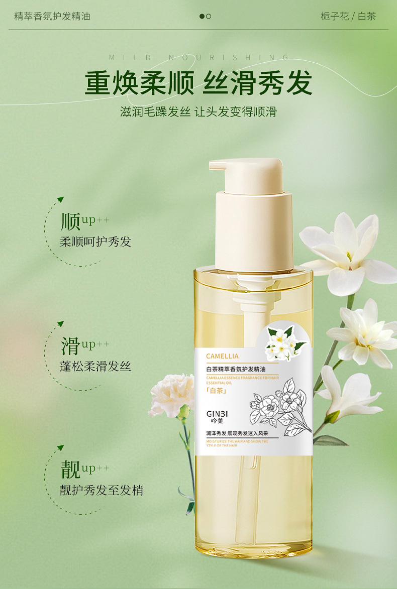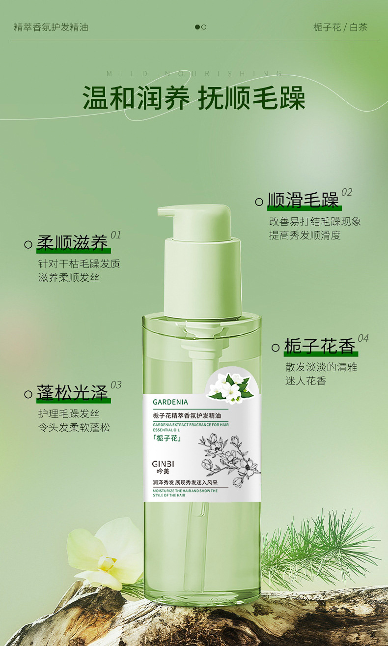 Масло для ухода за волосами с ароматом белого чая Yinmei; Масло для ухода за волосами с ароматом Yinmei Gardenia Essence