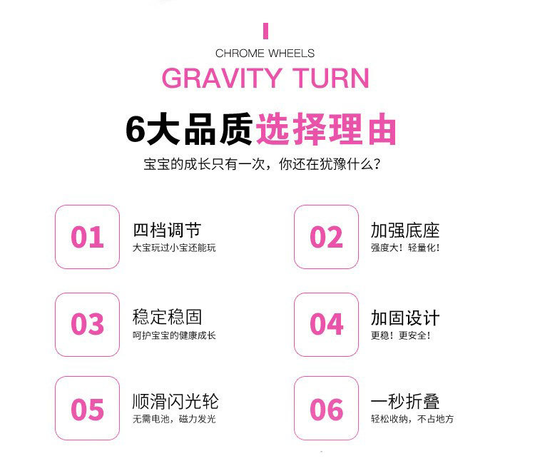 支持一件代发,大包装的一箱是12个的,有3款 一款带闪光的轮子 一款不能闪光的水果轮子 一款闪光带印花的。可以4挡调节高低的哦, 量大从优 可定制贴画 商标 , 注意:独立包装加3元 需要请联系客服 本店所有产品20天内可以退换 运费客户自理 配件免费补发,大包装一件12个 箱子尺寸:74.27.53 重量17公斤 独立包装一箱1个 箱子尺寸:26.15.57 重量1.8公斤