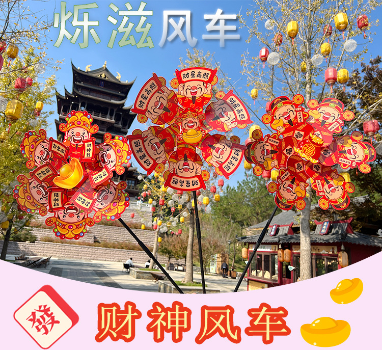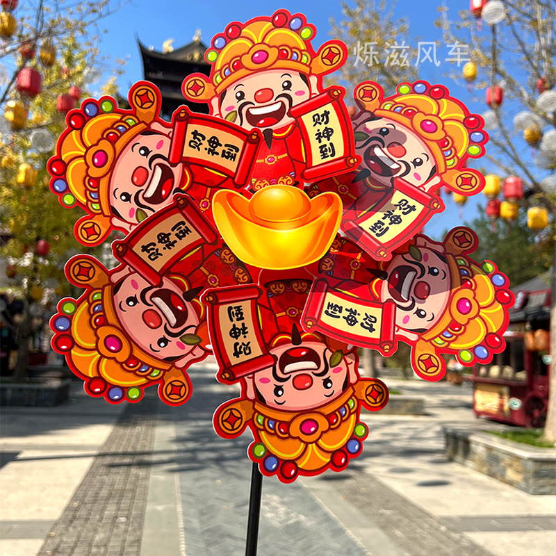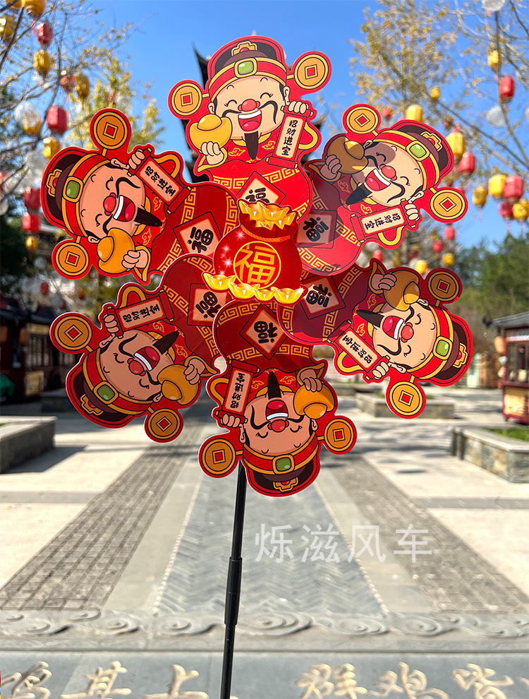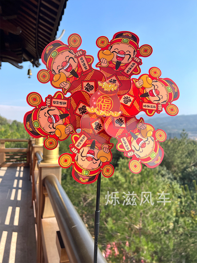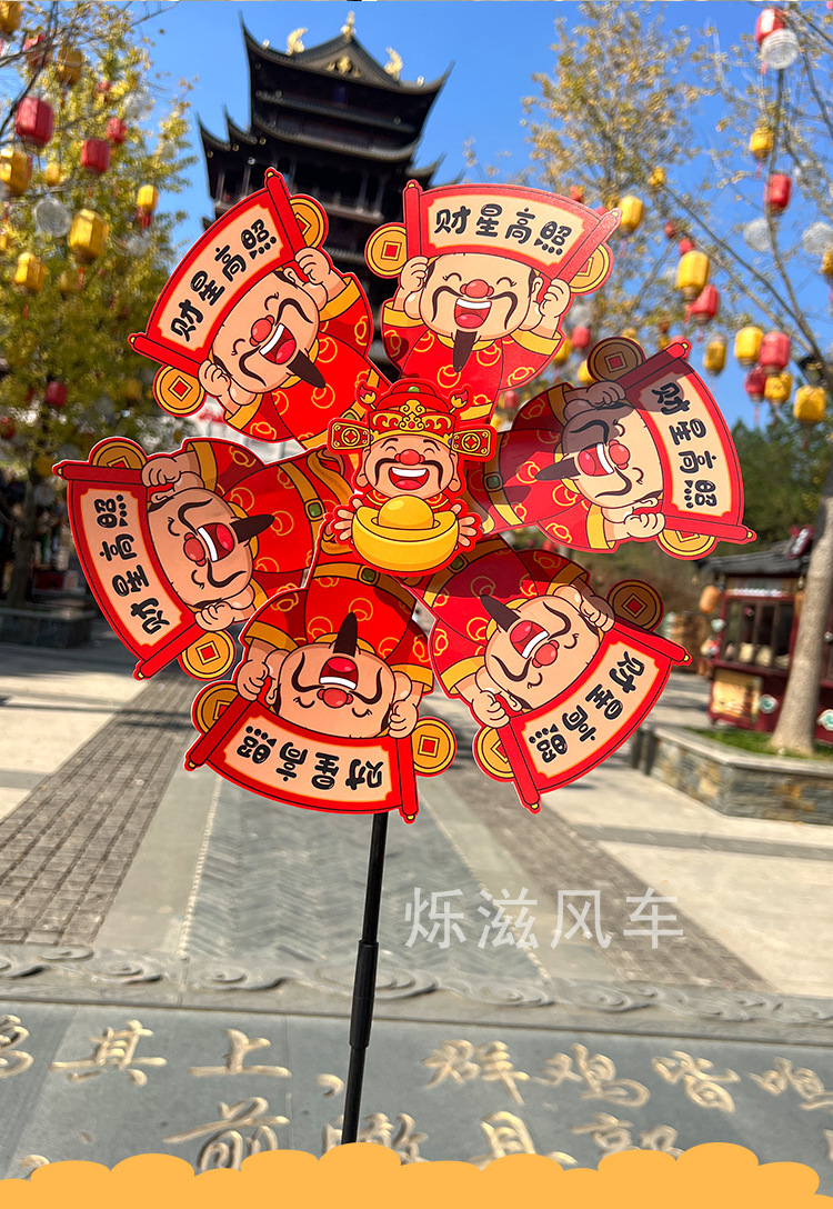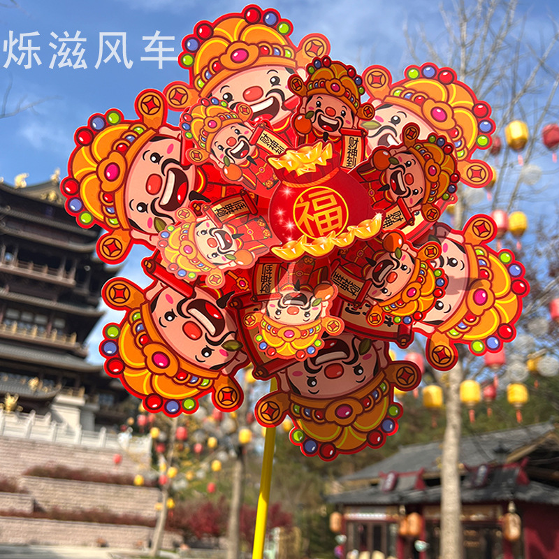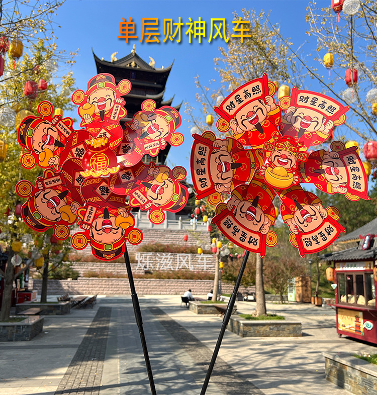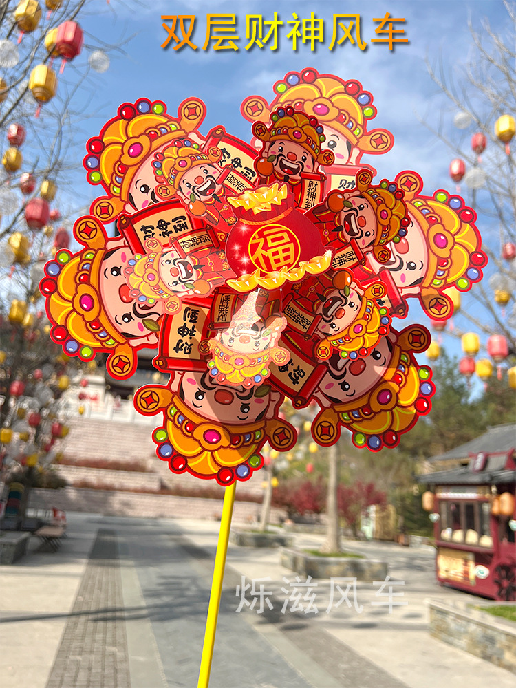 Новогодняя двухслойная ветряная мельница «Бог богатства», декор для уличных ярмарок и храмов, традиционная детская ручная ветряная мельница для привлечения удачи, символ года Лошади