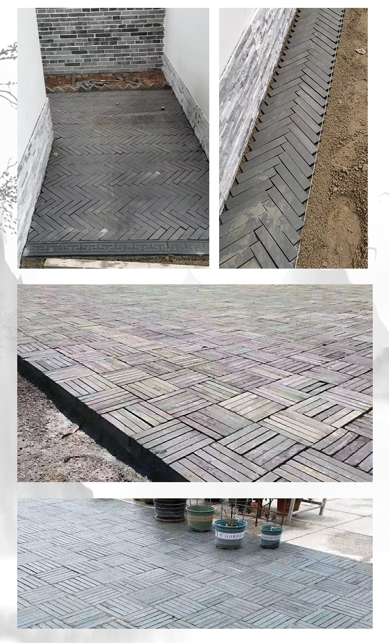 Древняя зеленая кирпичная елочка, вымощенная маленьким зеленым кирпичом, внутренний двор, древняя глиняная культурная плитка, внутренний двор, наружная напольная плитка