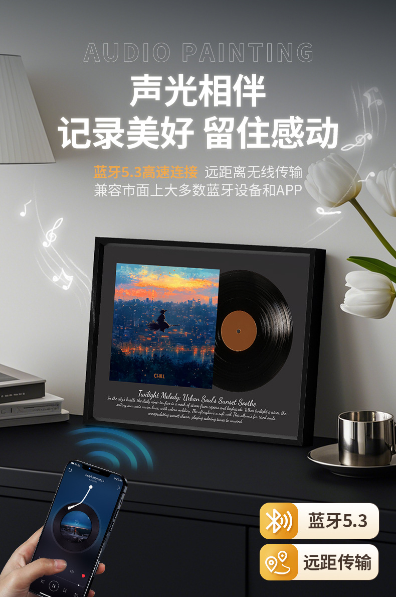 Виниловая пластинка в рамке из алюминиевого сплава класса люкс, музыкальная фоторамка, настенная картина для гостиной, столовой, элитной спальни, декоративная картина для интерьера.