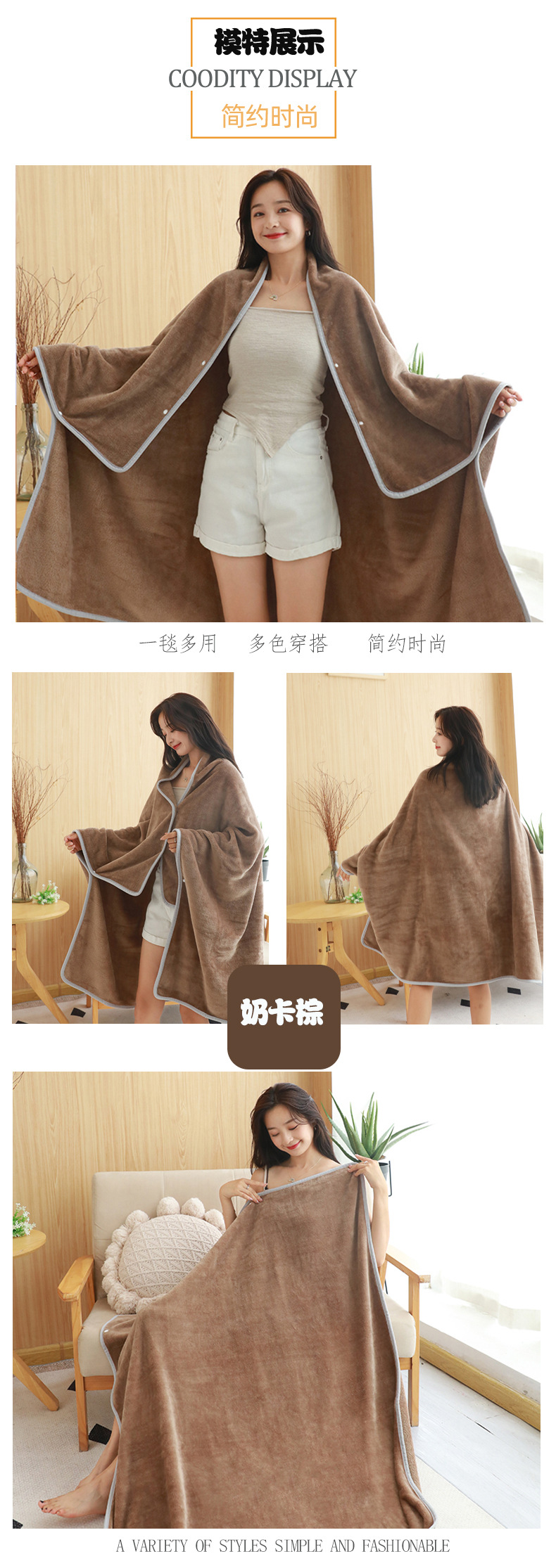 面料采用290至300平方克法兰绒,模特身高162厘米披的是160*100披风的效果,产品支持定制logo,具体细节要求请向客服咨询,运费为参考价,报价不含税运,量大向客服提请议价