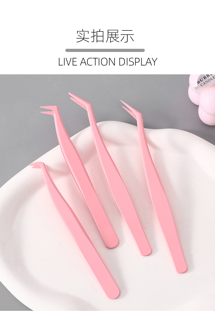 Пинцет для наращивания ресниц без клея, нержавеющая сталь, розовый, инструмент для наращивания накладных ресниц, золотой зажим для ресниц, оптом