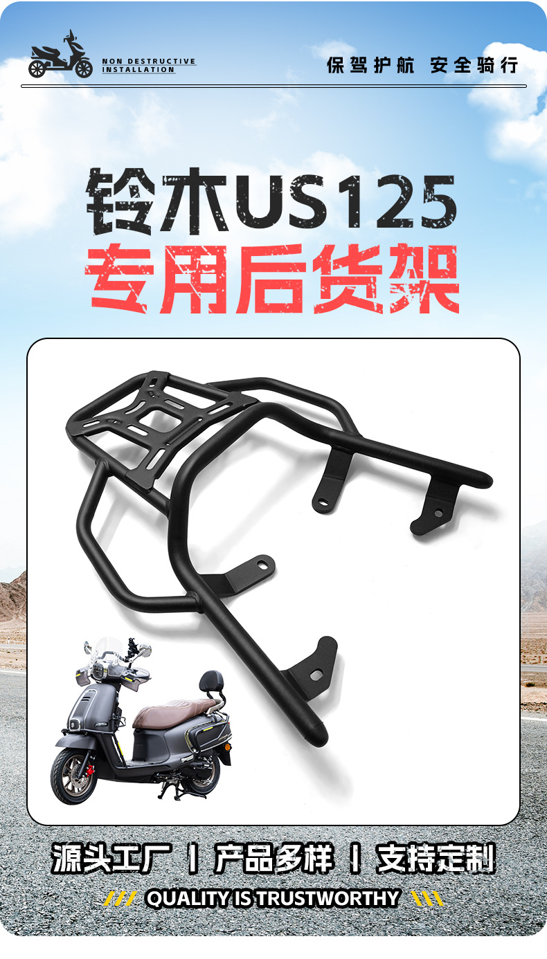 Подходит для Suzuki US125: задний багажник, кронштейн для заднего кофра, аксессуары для модификации.