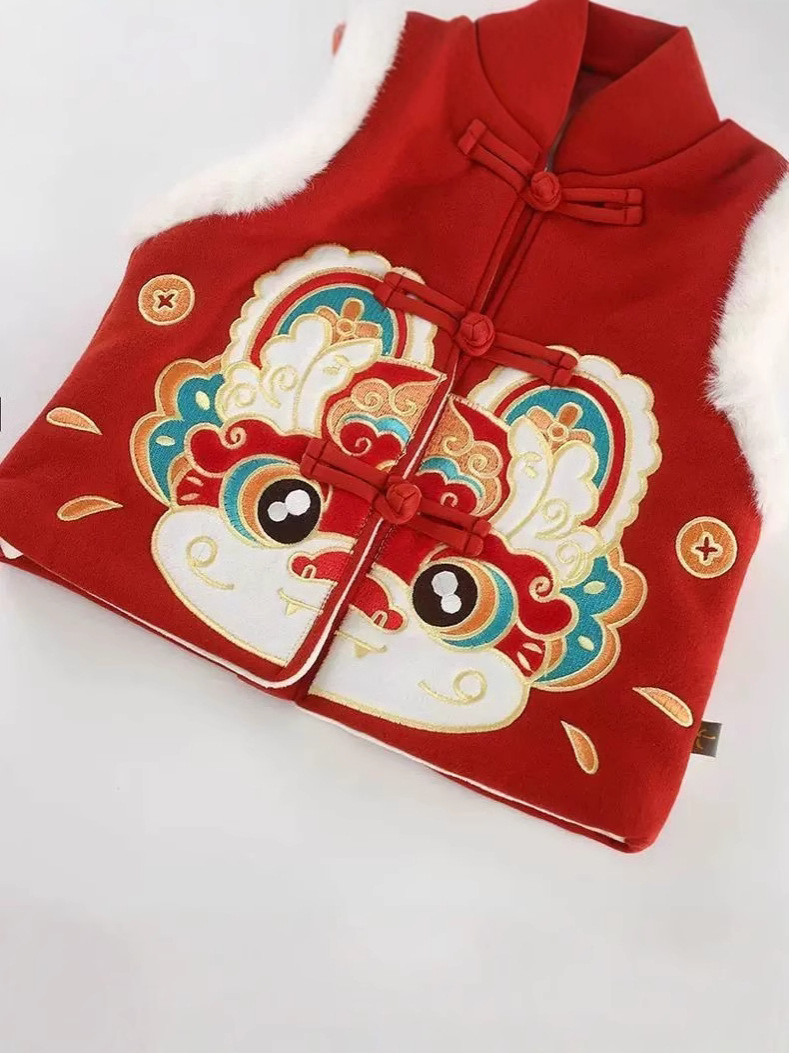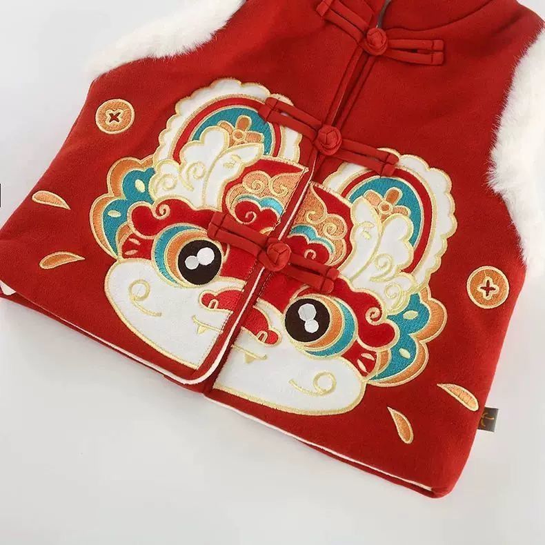 Детский жилет, зимний детский жилет на флисовой подкладке, жилет в китайском стиле с танцем льва для мальчиков и девочек, детская зимняя новогодняя одежда