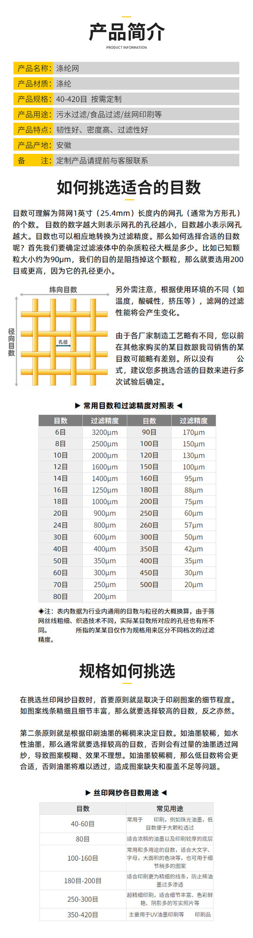 32T белый, 80 сеток, ширина 127; 39T белый, 100 сеток, ширина 127; 47T белый 120 сетка 127 ширина; 54T белый, 140 сетка, ширина 127; 61T белый, 150 сеток, ширина 127; 64T белый, 160 сеток, ширина 127; 72T белый, 180 сетка, ширина 127; 80T белый, 200 сеток, ширина 127; 80T желтый 200 сетка 127 ширина; 100T белый, 250 сеток, ширина 127; 100T желтый 250 сетка 127 ширина; 120T белый, 300 сеток, ширина 127; 120T желтый 300 сетка шириной 127; 140T белый, 350 сетка, ширина 127; 140T желтый, 350 сетка, ширина 127; 150T белый, 380 сетка, ширина 127; 150T желтый 380 сетка шириной 127; 165T белый, 420 сетка, ширина 127; 165T желтый, 420 сетка, ширина 127