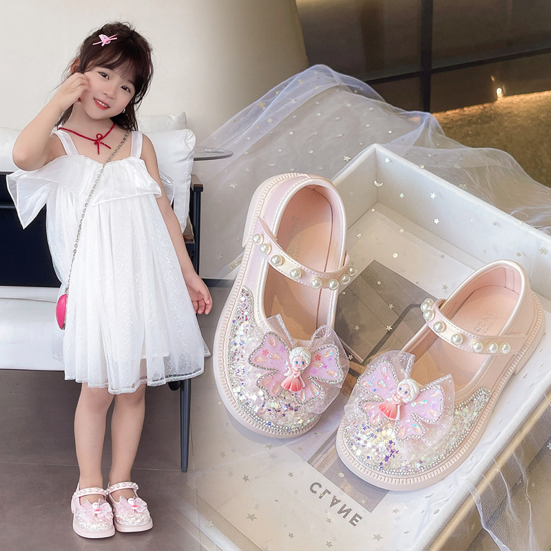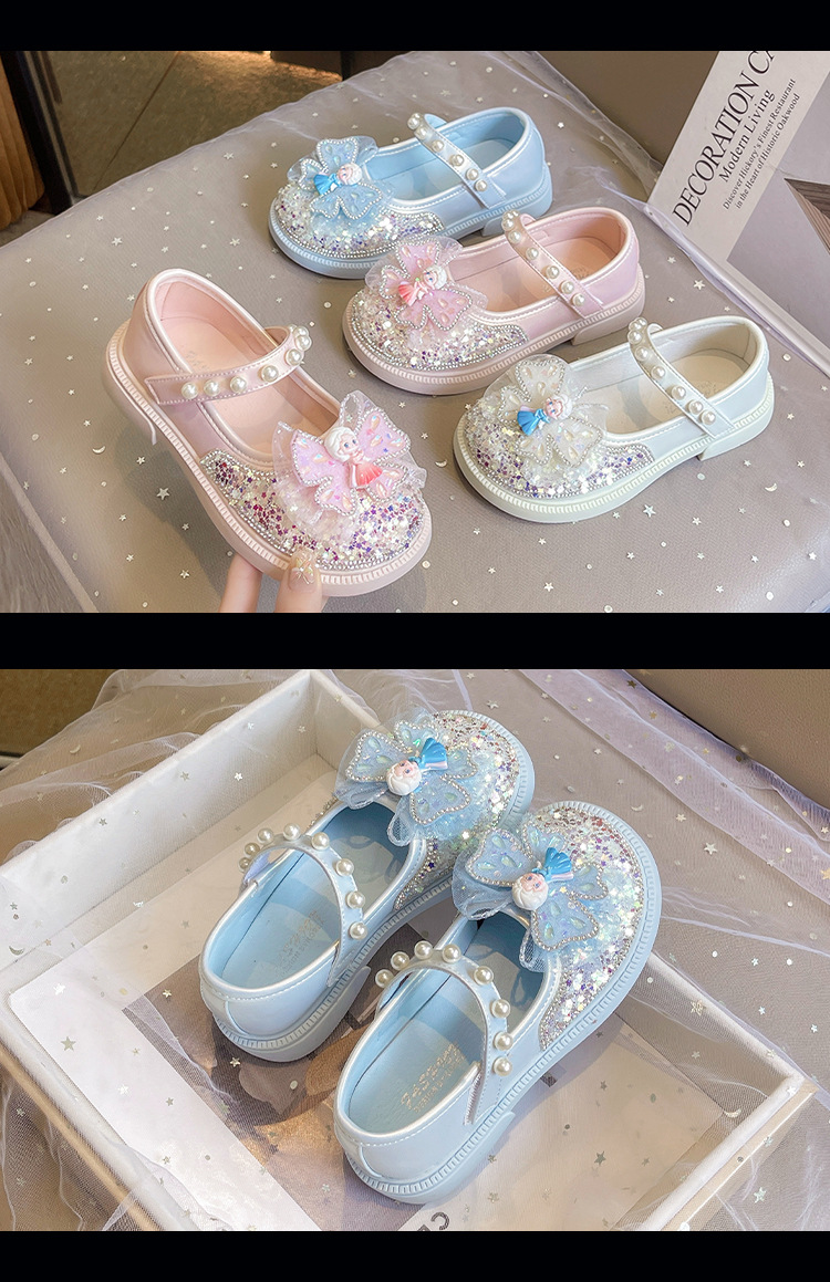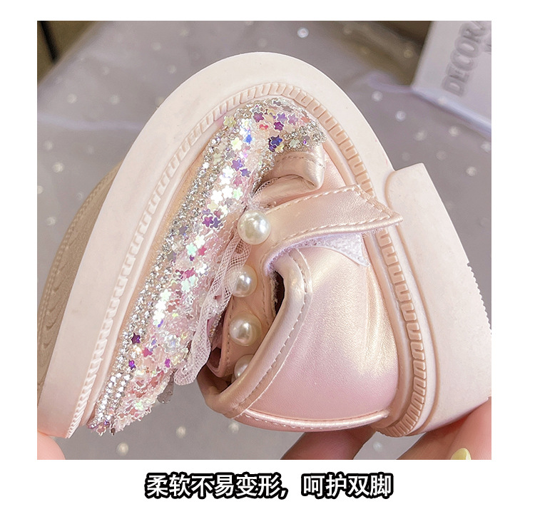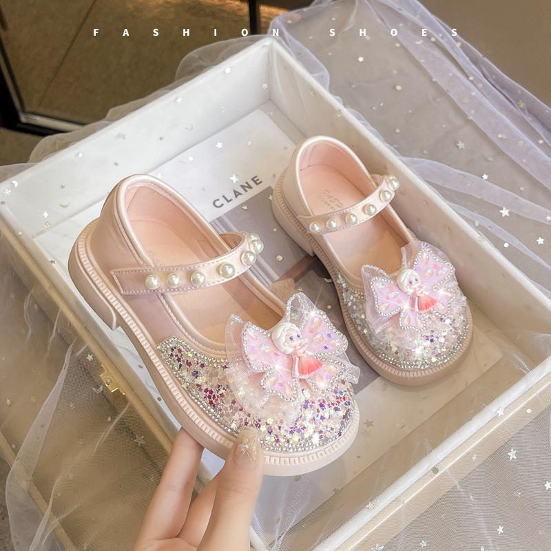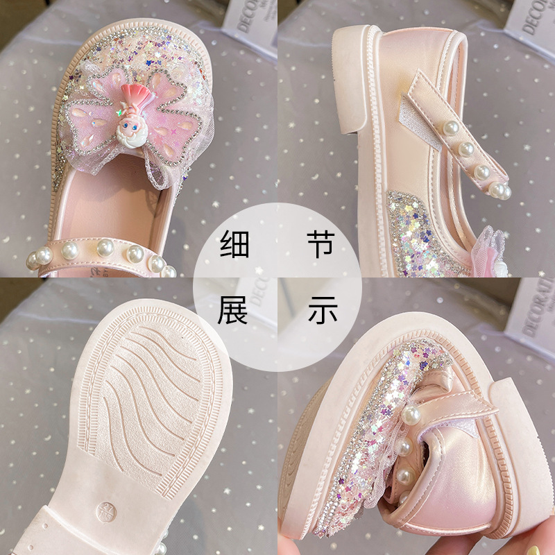 Хрустальные туфли для девочек Детские туфли с блестками Принцесса 2025 новые кожаные туфли для девочек