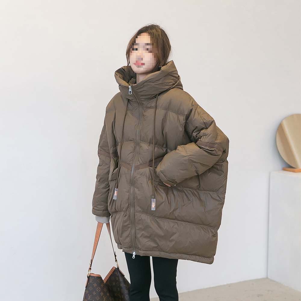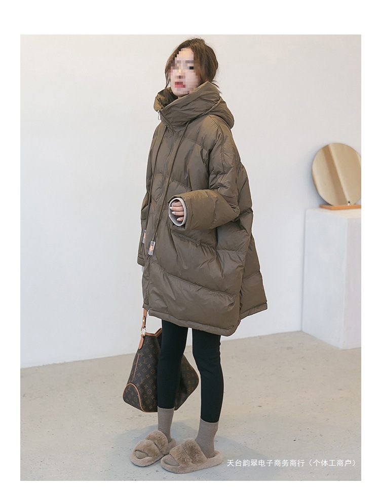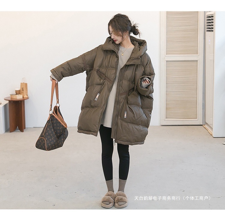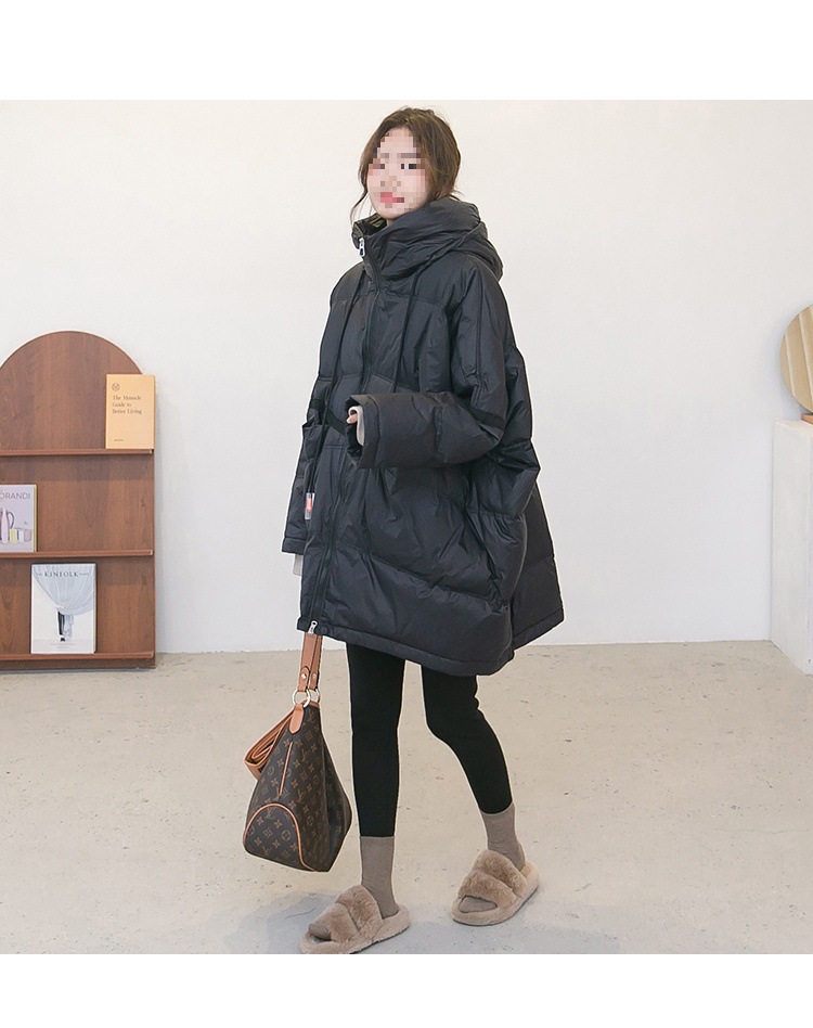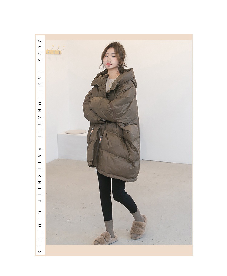 Высокопоставленная модная повседневная средняя длинная зимняя белая утка пуховая свободная беременная куртка с капюшоном Теплый пуховик большого размера