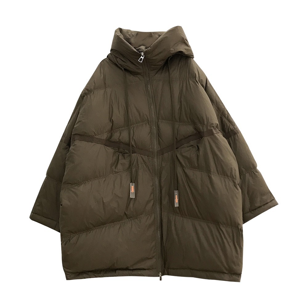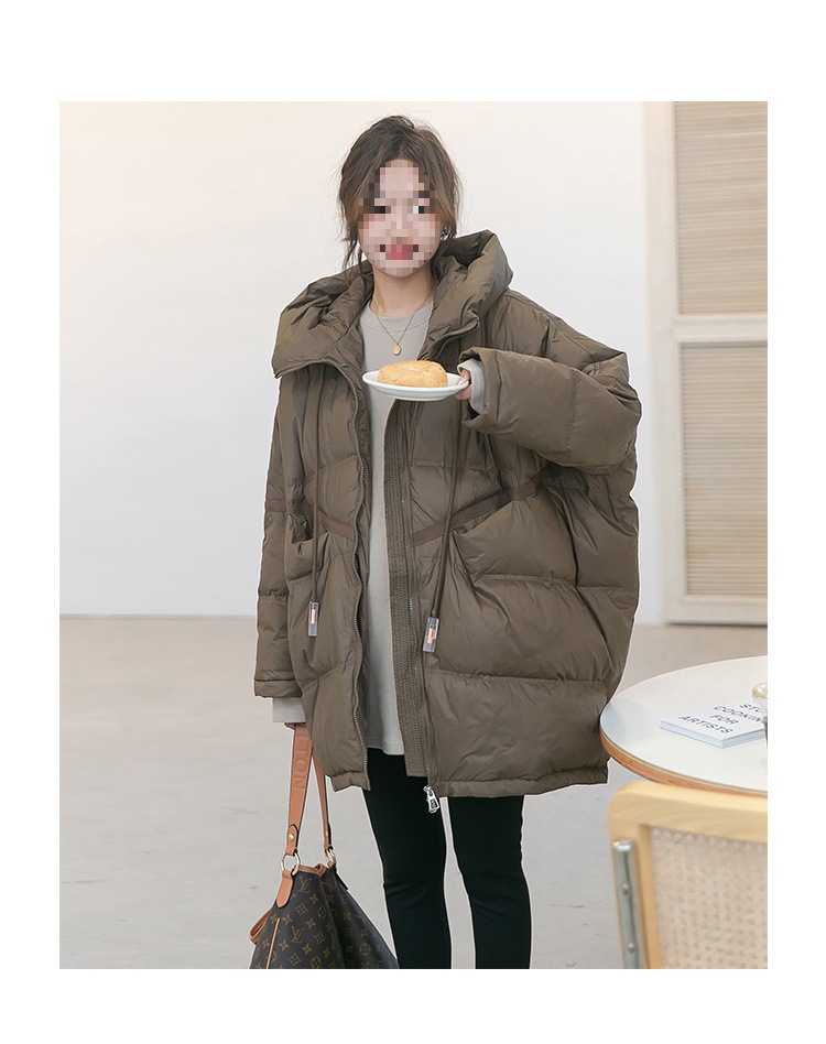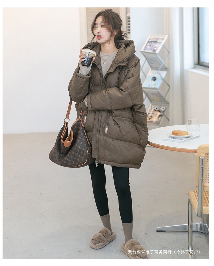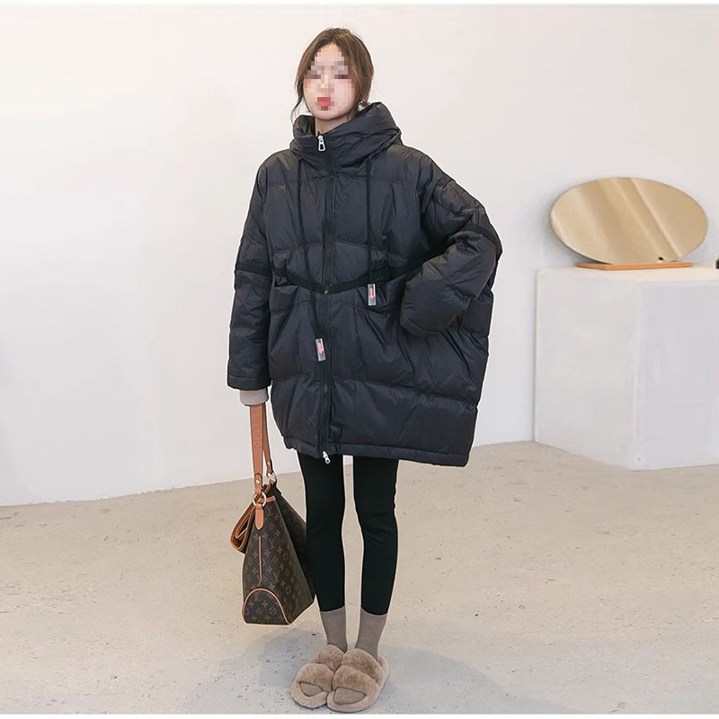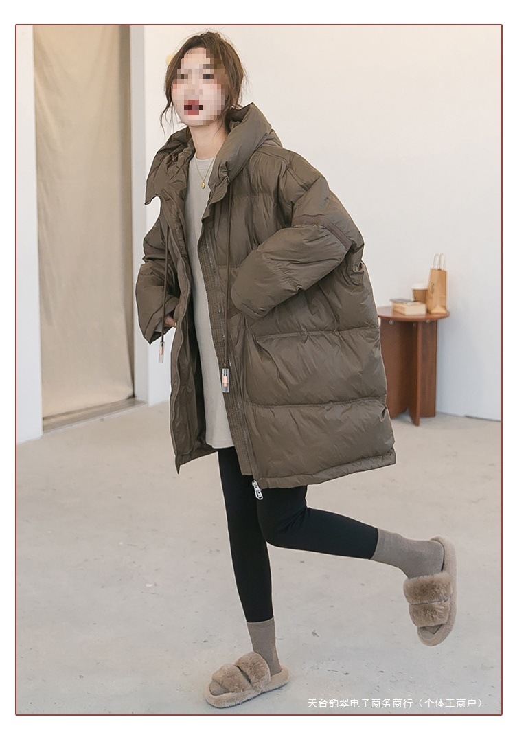 Высокопоставленная модная повседневная средняя длинная зимняя белая утка пуховая свободная беременная куртка с капюшоном Теплый пуховик большого размера
