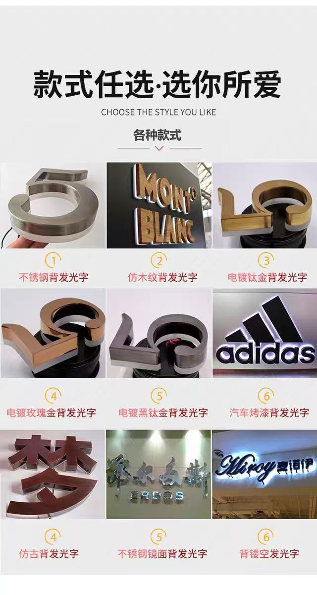 Плоские светящиеся символы; Алюминиевый край с символами без краев; буквы из смолы; металлические надписи; 3 символа D; Неоновый свет; Сферические слова; хрустальные символы; Индивидуальная консультация