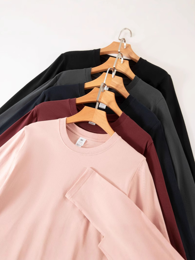 Мужская утепленная футболка с длинным рукавом из 100% хлопка, 230 г, однотонная, осенне-зимняя, в корейском стиле, для трансграничной торговли.
