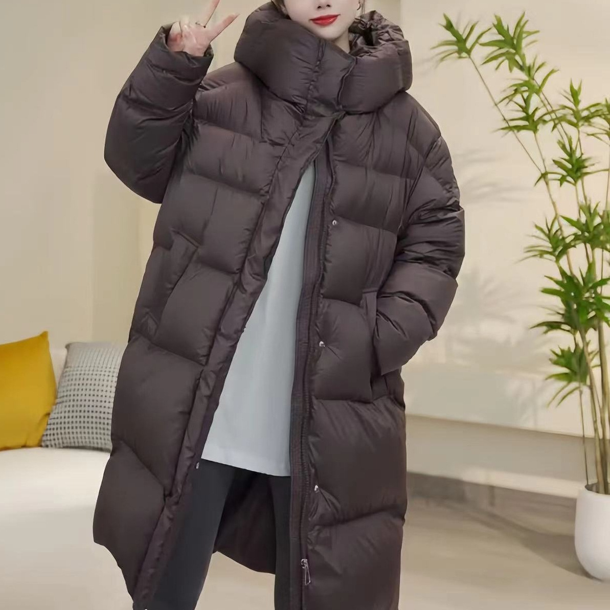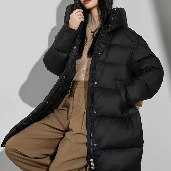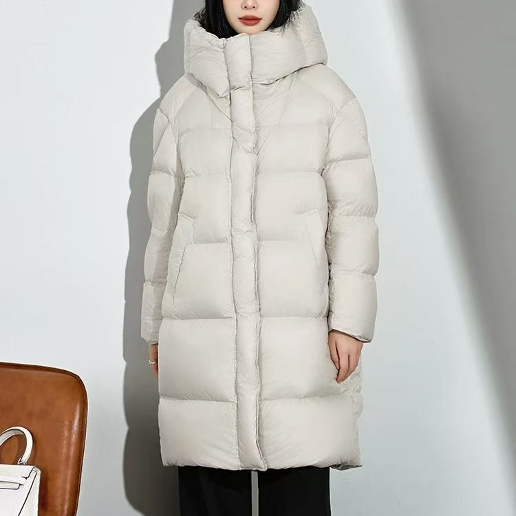 Теплый пуховик 90 белая утка пуховик темперамент средней и длинной свободной куртки-шапка также пуховая