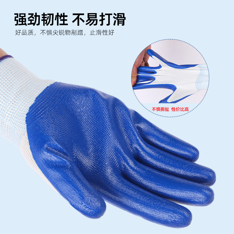 Нейлонитрил пропитанные перчатки маслостойкие висячие перчатки Dingqing прочные противоскользящие утолщенные воздухопроницаемые строительные рабочие перчатки