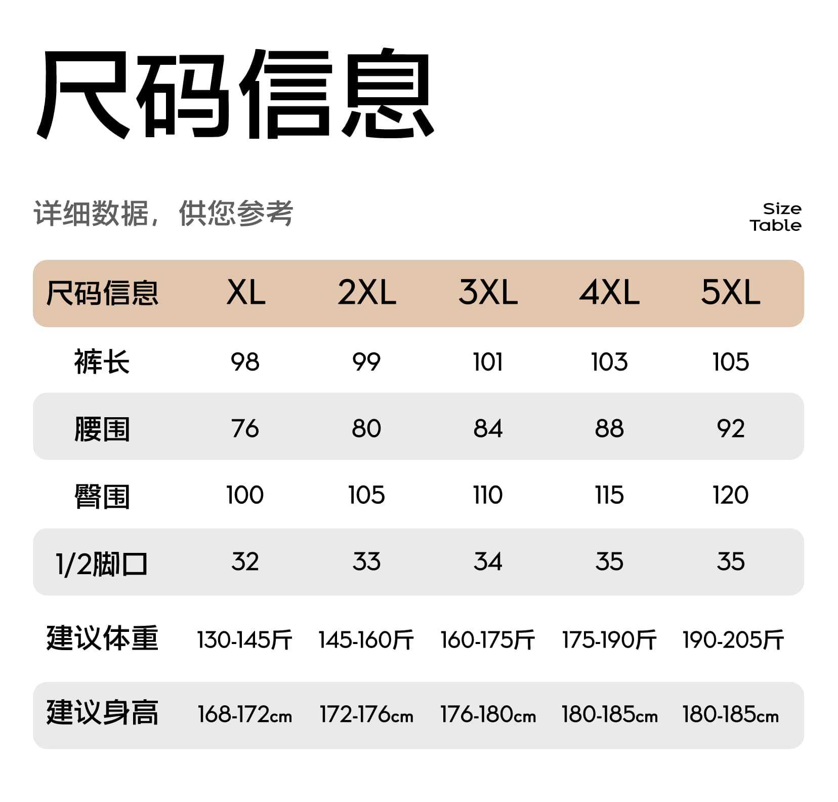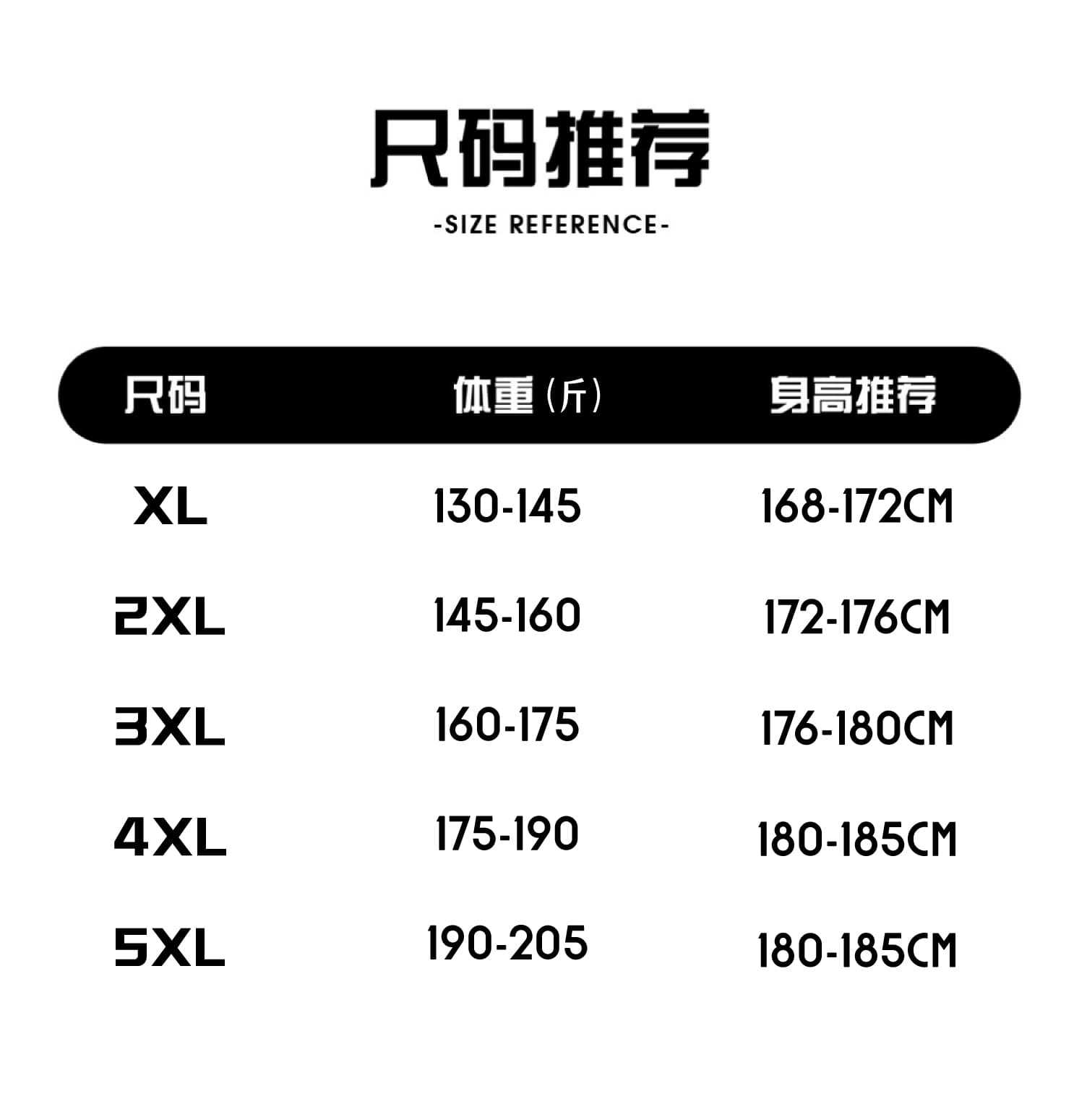 XL( 65-72.5kg ); 2XL( 72.5-80kg ); 3XL( 80-87.5kg ); 4XL( 87.5-95kg ); 5XL( 95-102.5kg )