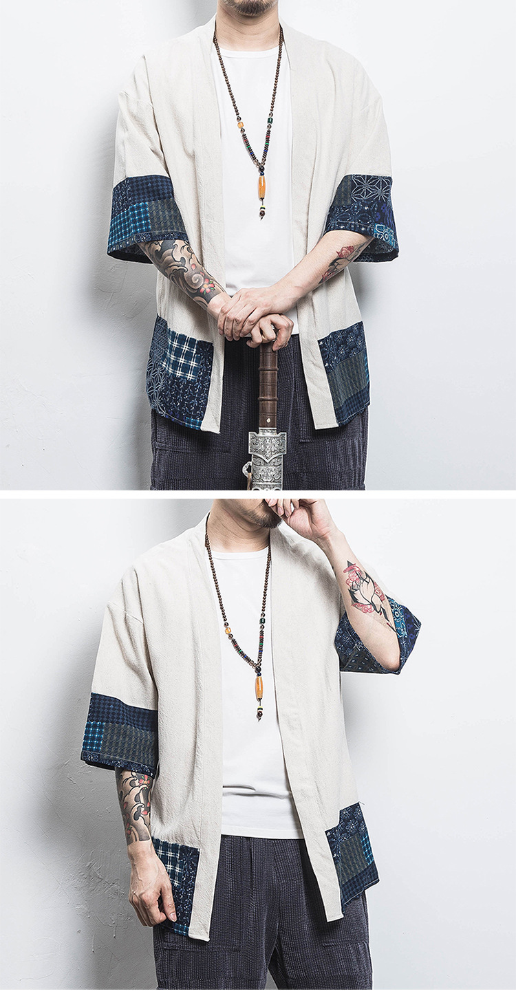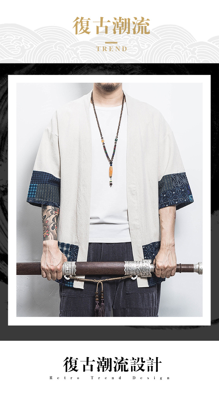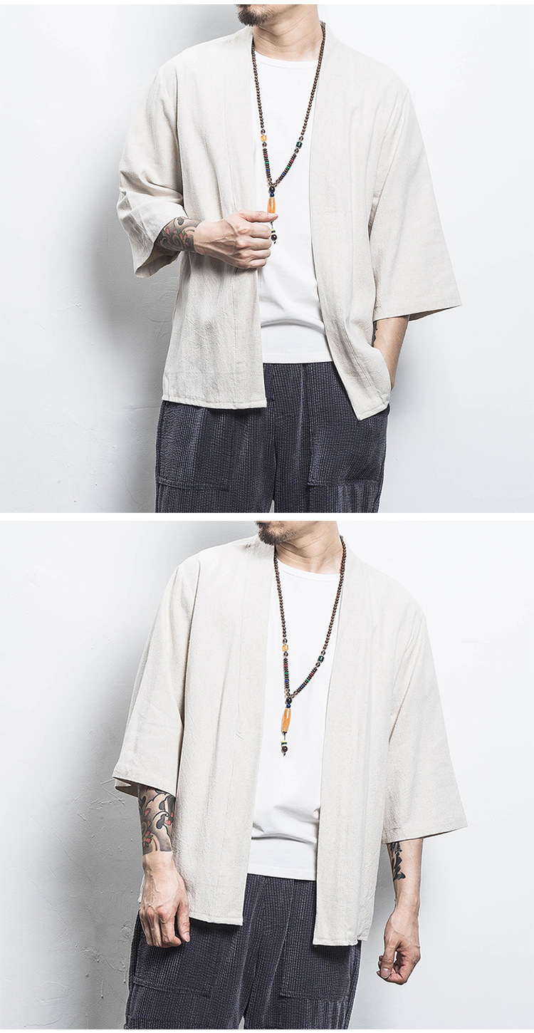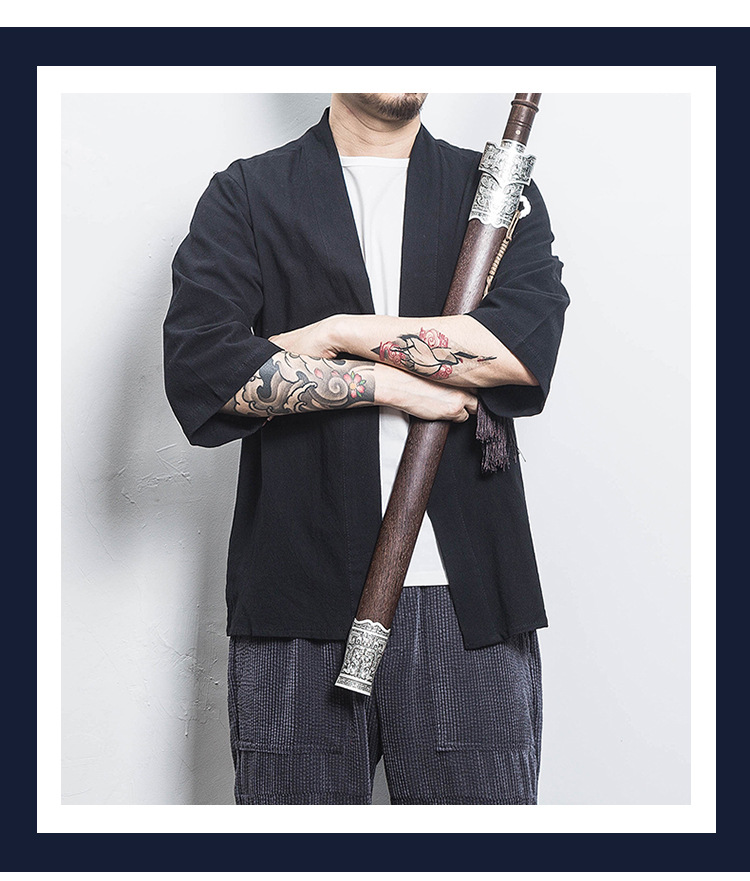 2025 Летний ретро этнический стиль улучшенный китайский костюм костюм Тан мужской свободный китайский хлопковый кардиган плащ
