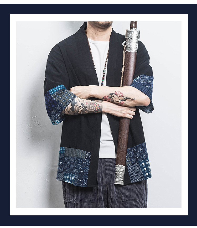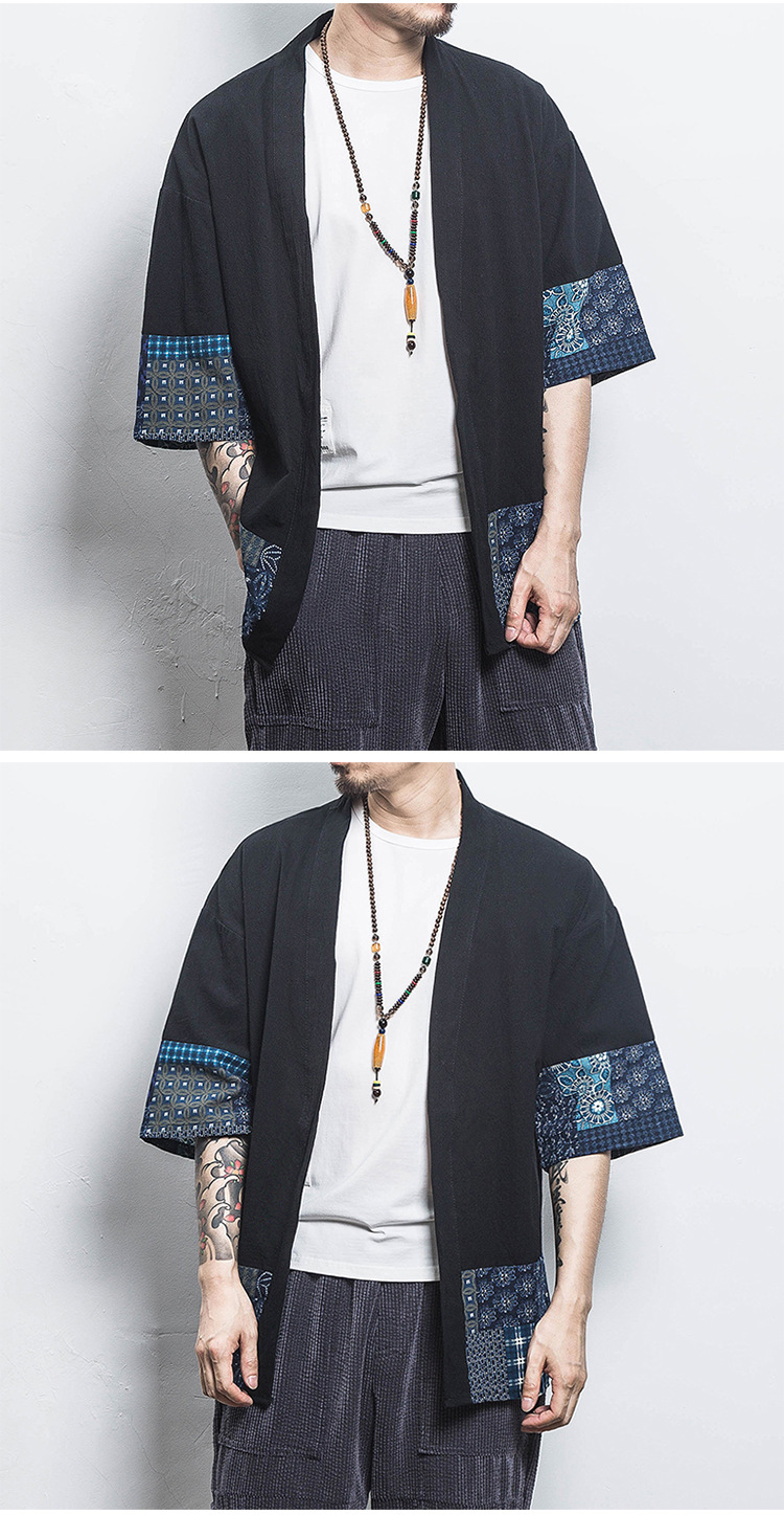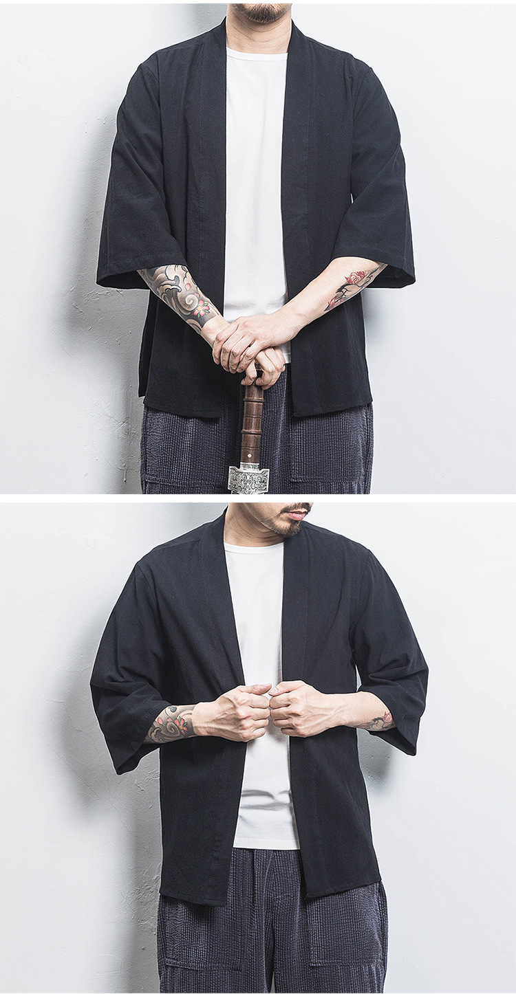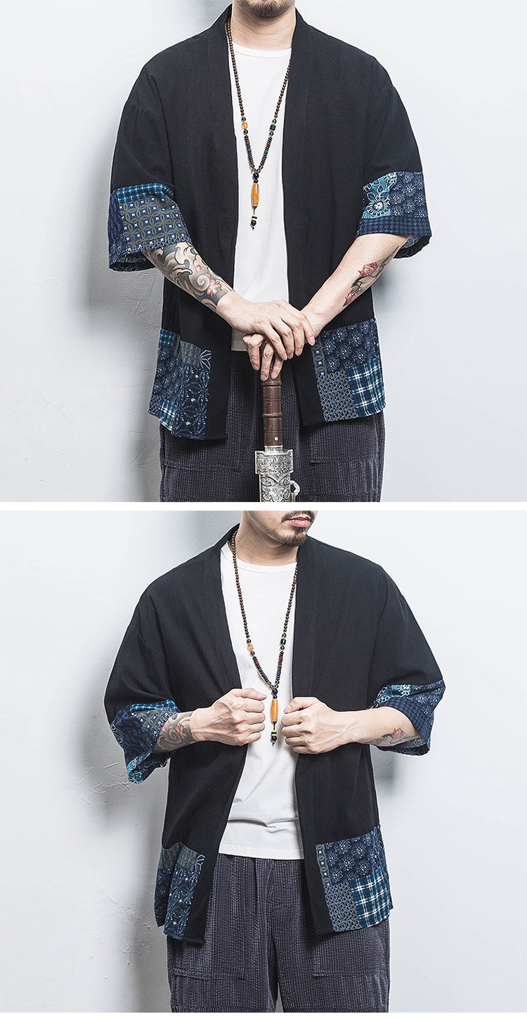 2025 Летний ретро этнический стиль улучшенный китайский костюм костюм Тан мужской свободный китайский хлопковый кардиган плащ