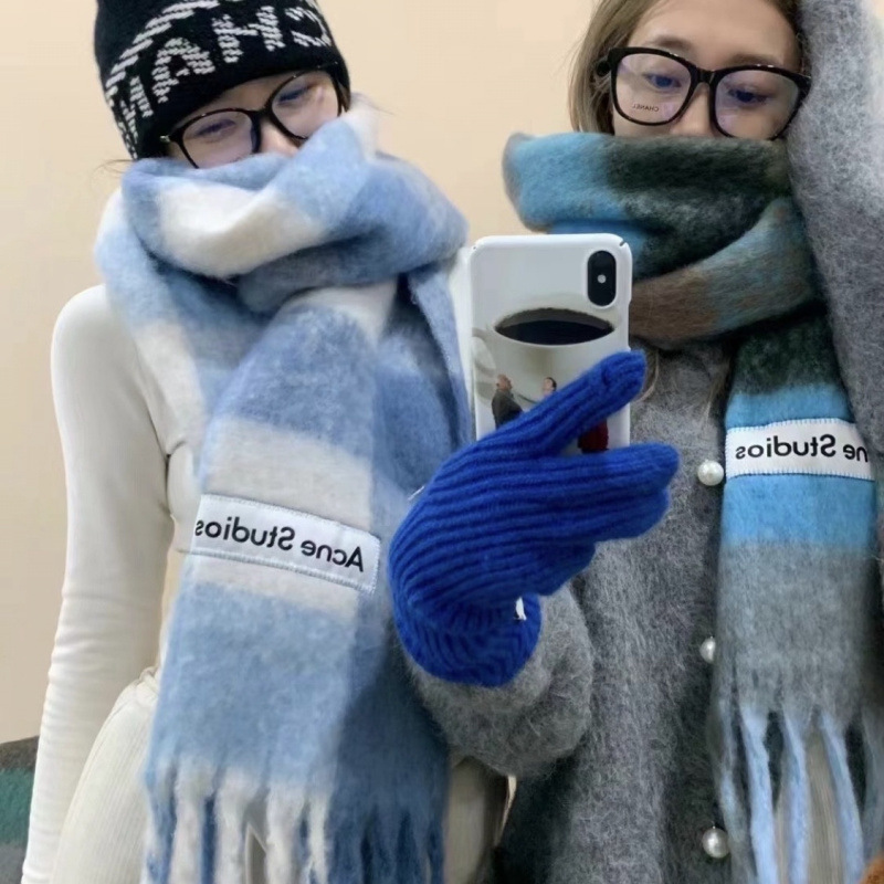 Осенний и зимний новый утолщенный цветный шарф в клетку цвета радуги
