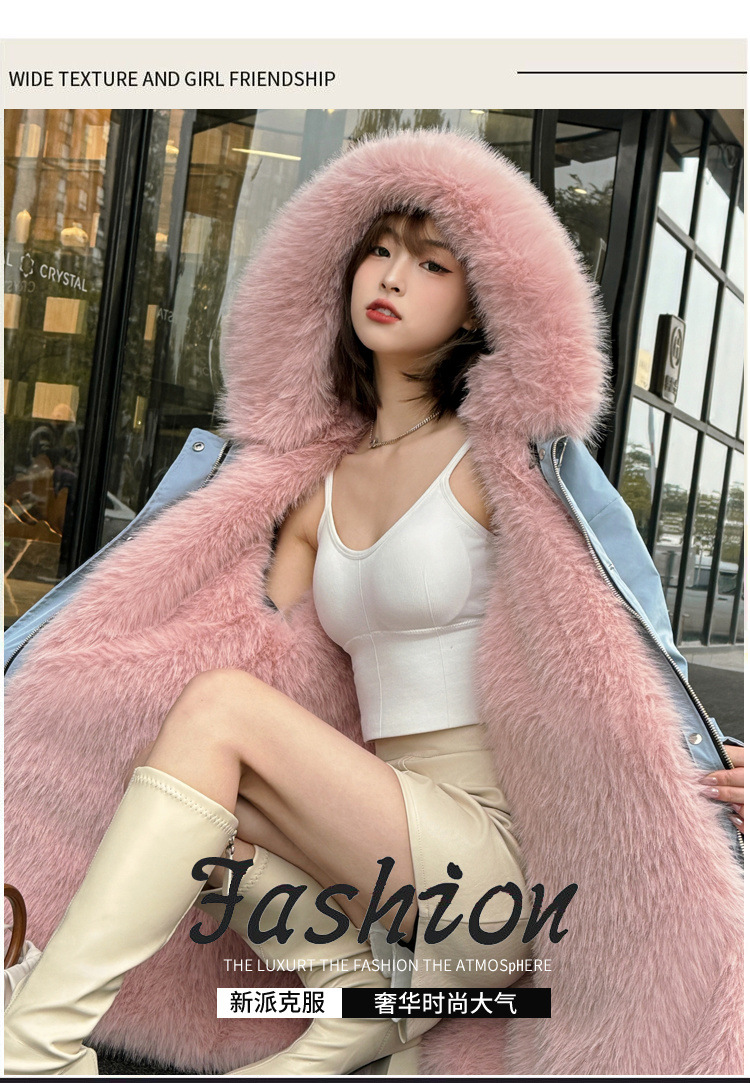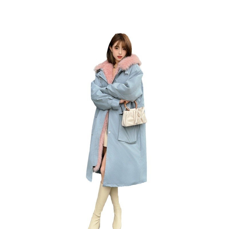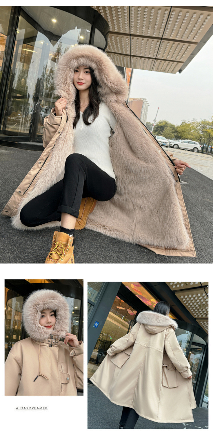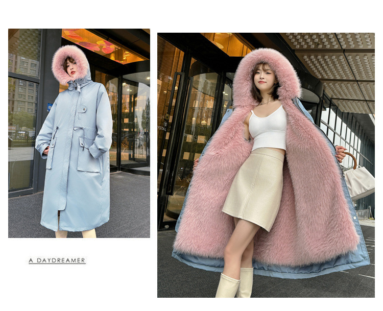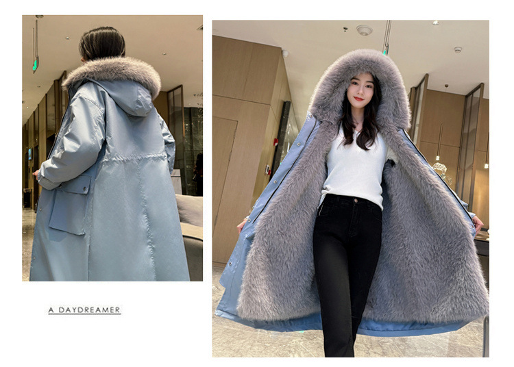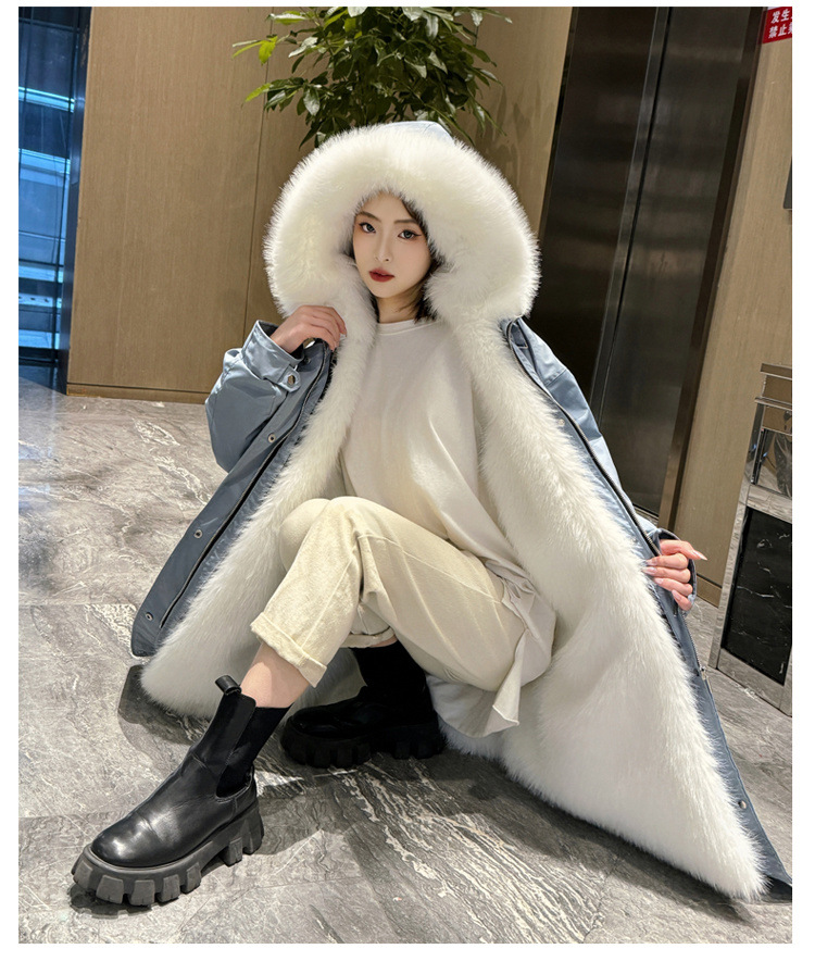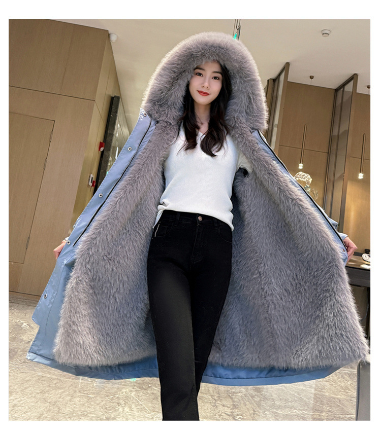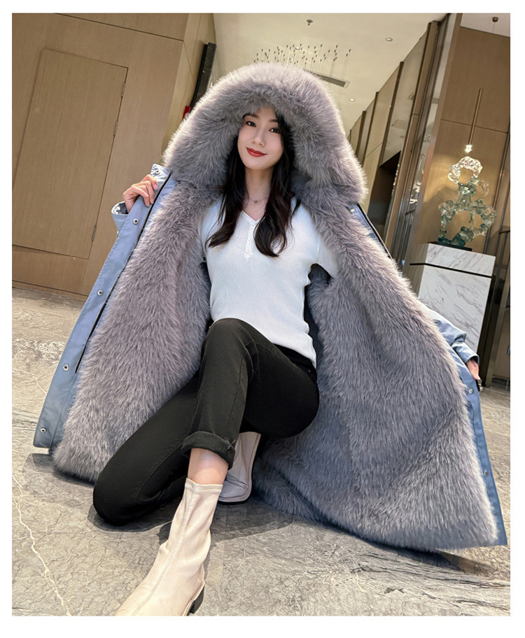 2023 зимний новый искусственной кожи для внутреннего вкладыша Съемная куртка свободная лиса утолщенный длинный пальто Parker костюм женский