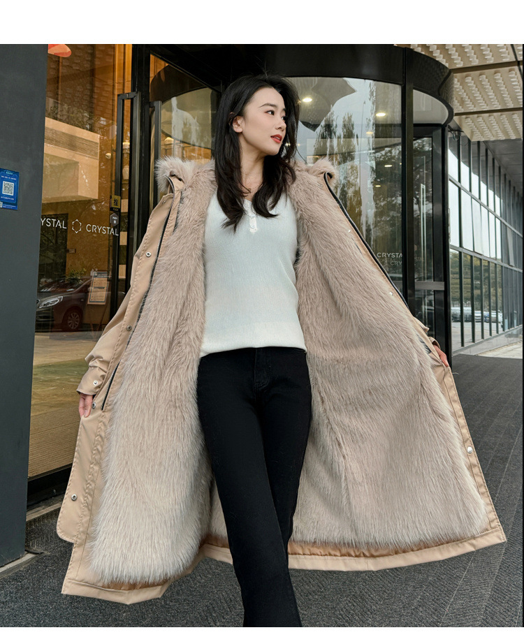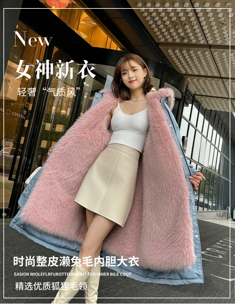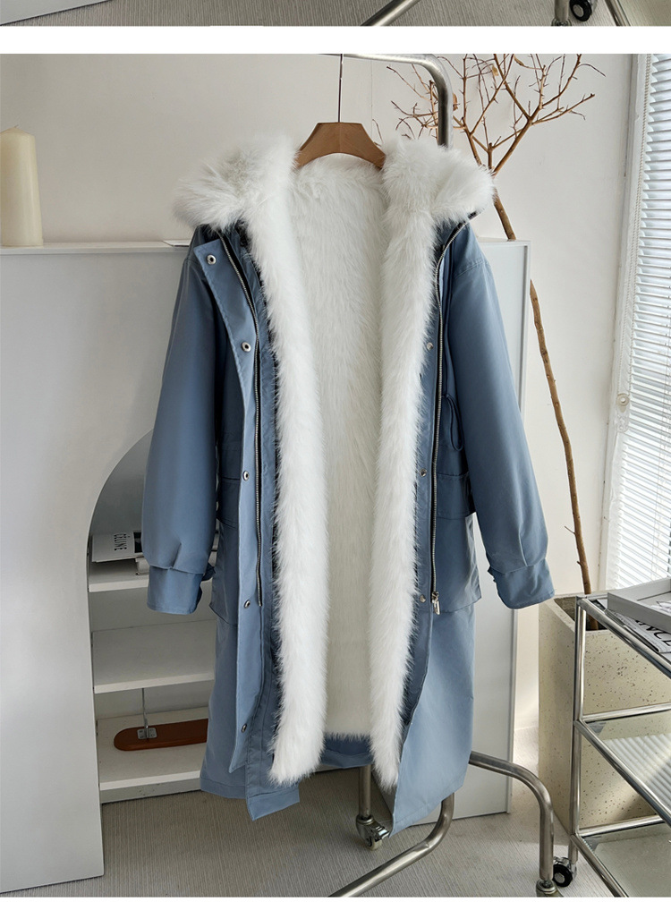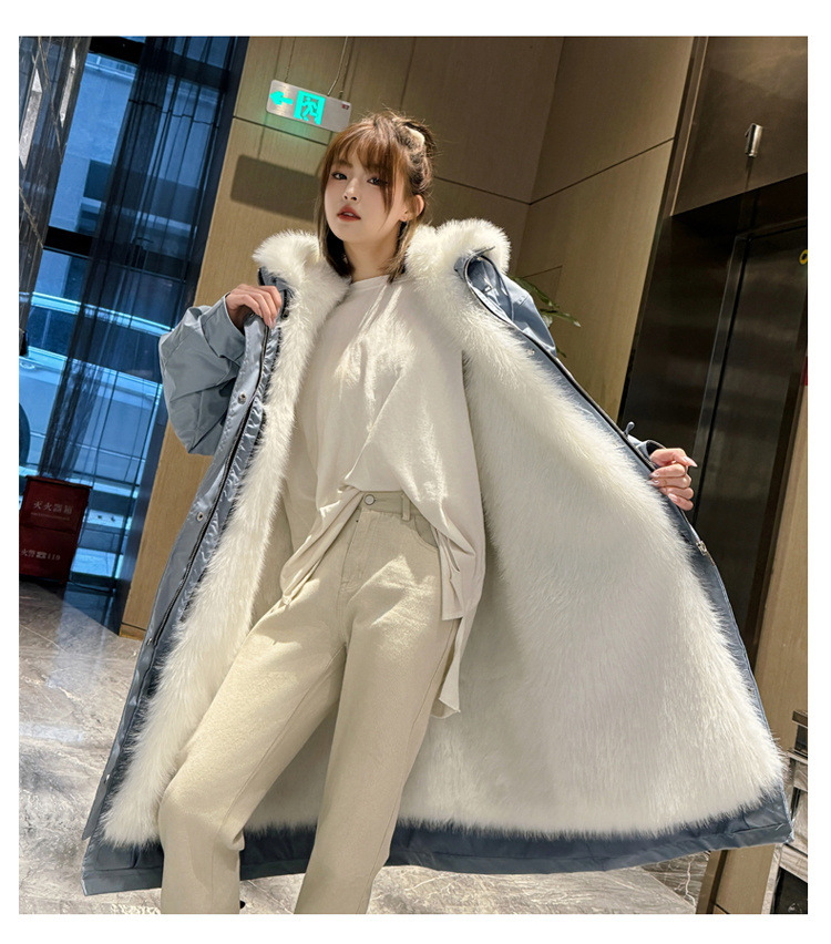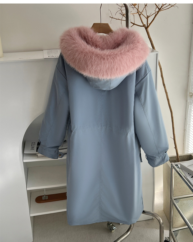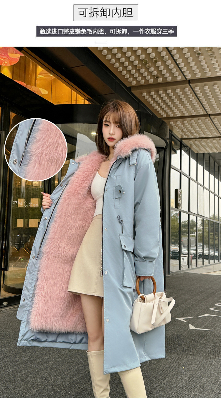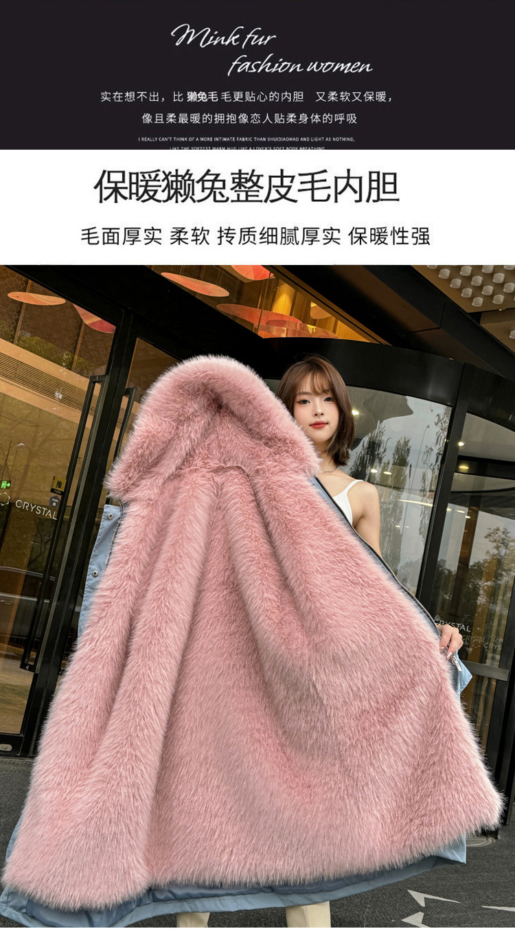 2023 зимний новый искусственной кожи для внутреннего вкладыша Съемная куртка свободная лиса утолщенный длинный пальто Parker костюм женский