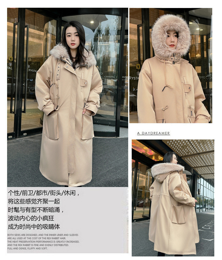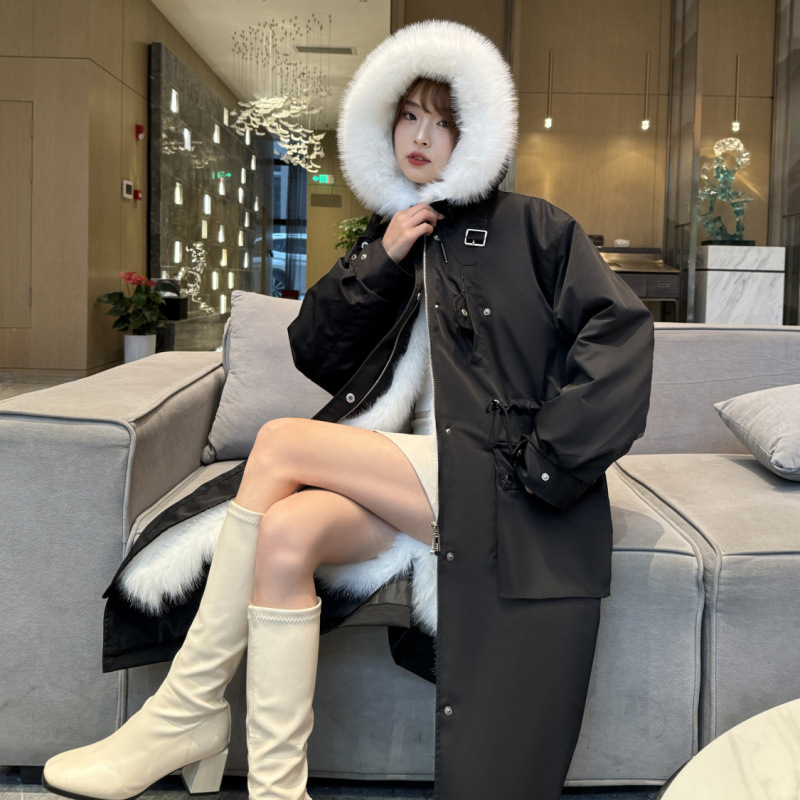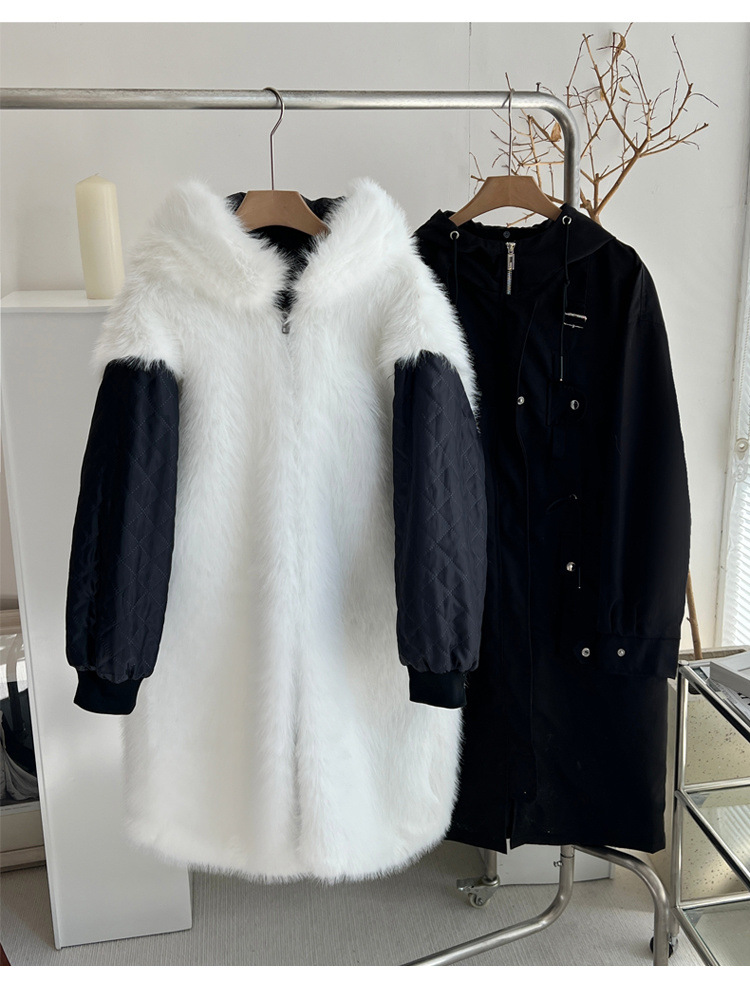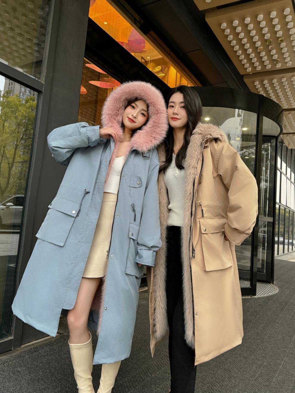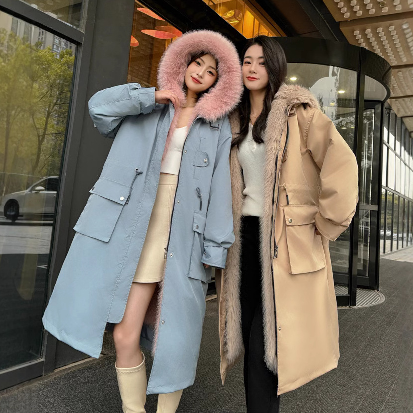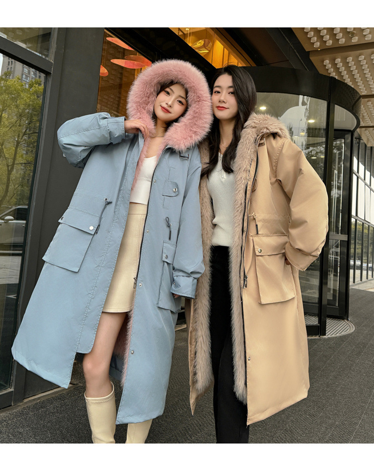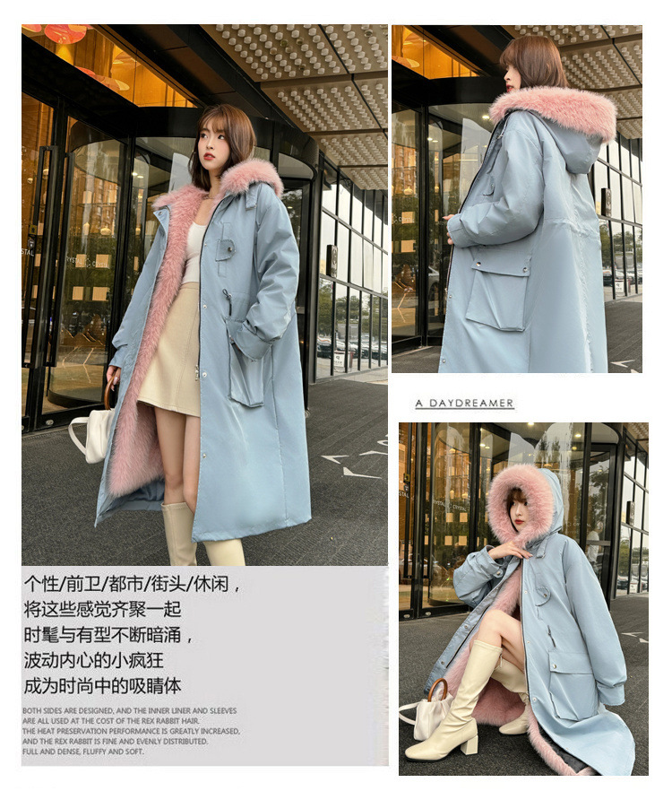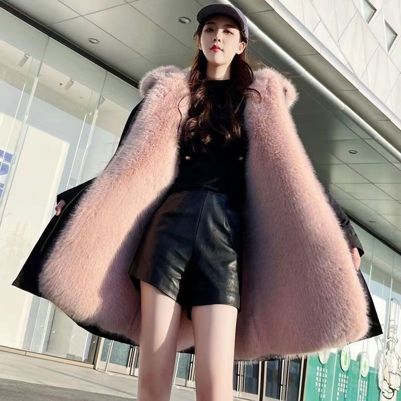 2023 зимний новый искусственной кожи для внутреннего вкладыша Съемная куртка свободная лиса утолщенный длинный пальто Parker костюм женский
