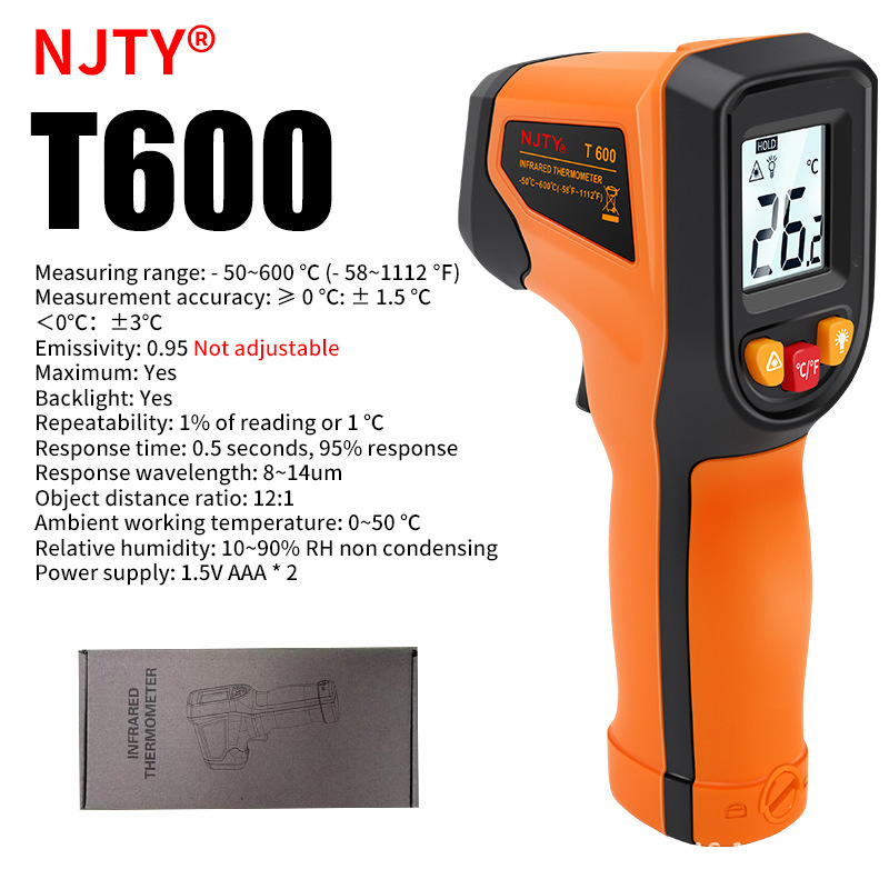 Инфракрасный термометр NJTY T600A высокоточный, для измерения температуры воды, для выпечки, кухни, промышленного применения, для измерения температуры масла