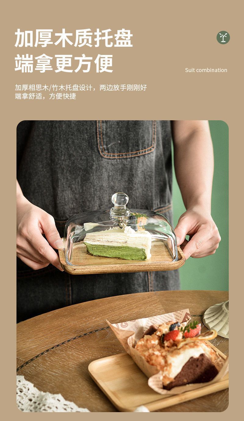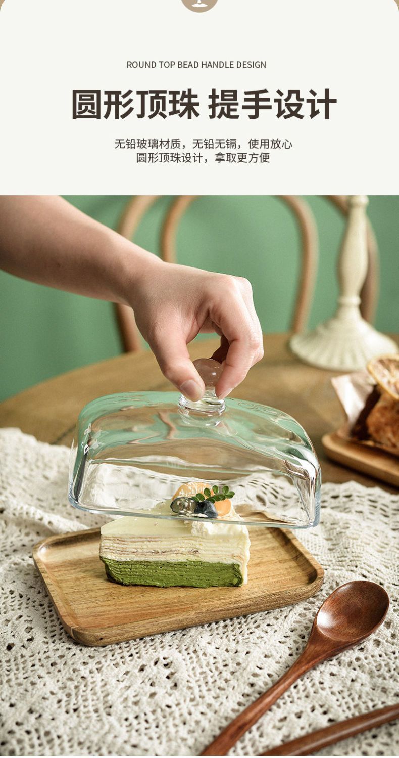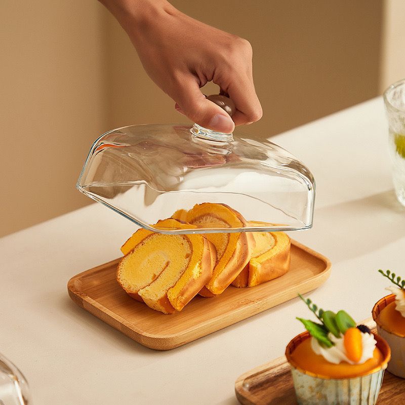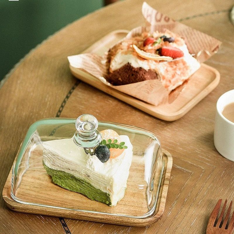 Деревянная квадратная тарелка для торта со стеклянной капюшной закуской