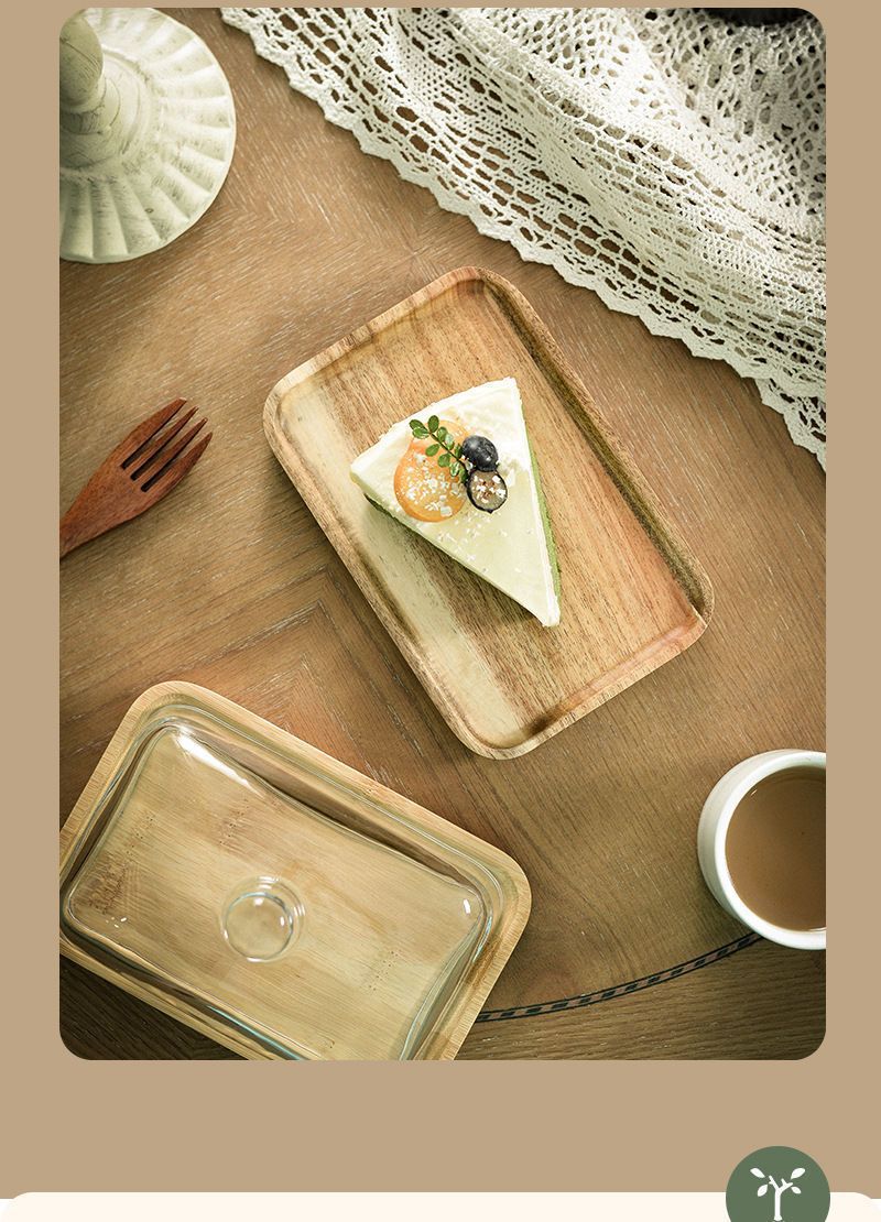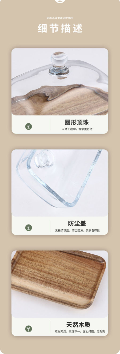 Бамбуковая и квадратная стеклянная десертная тарелка; Десертная тарелка из дерева акации и квадратного стекла; Шасси из дерева акации; Бамбуковое шасси; одинарная стеклянная крышка; Керамика плюс стеклянная крышка