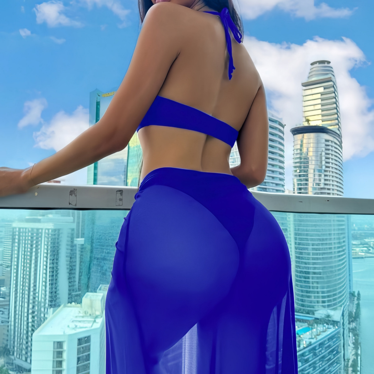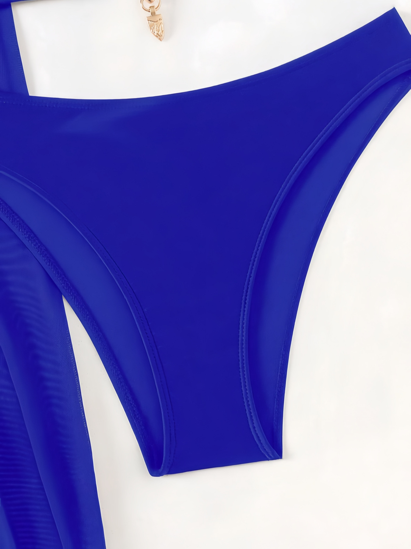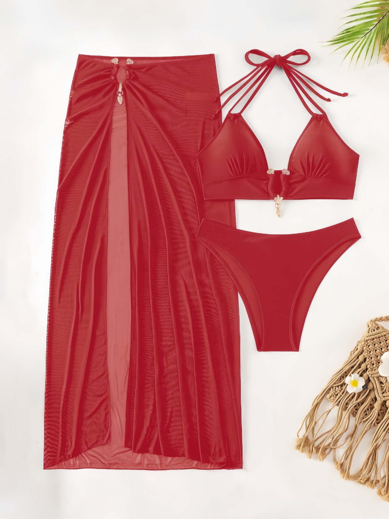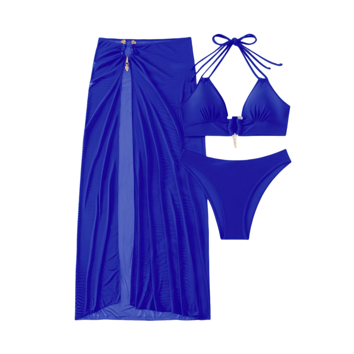 Трансграничный купальник Xingcheng завод новый европейский и американский женский набор из трех частей бикини длинное платье сплошной цвет сексуальный купальник