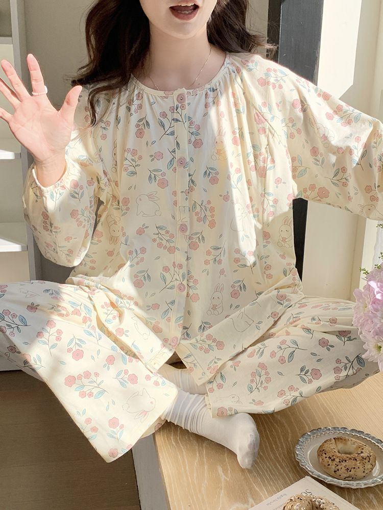 7A антибактериальные пижамы для беременных класса A из чистого хлопка, одежда для родов, весна и осень, послеродовая домашняя одежда для беременных и грудного вскармливания